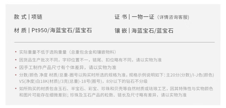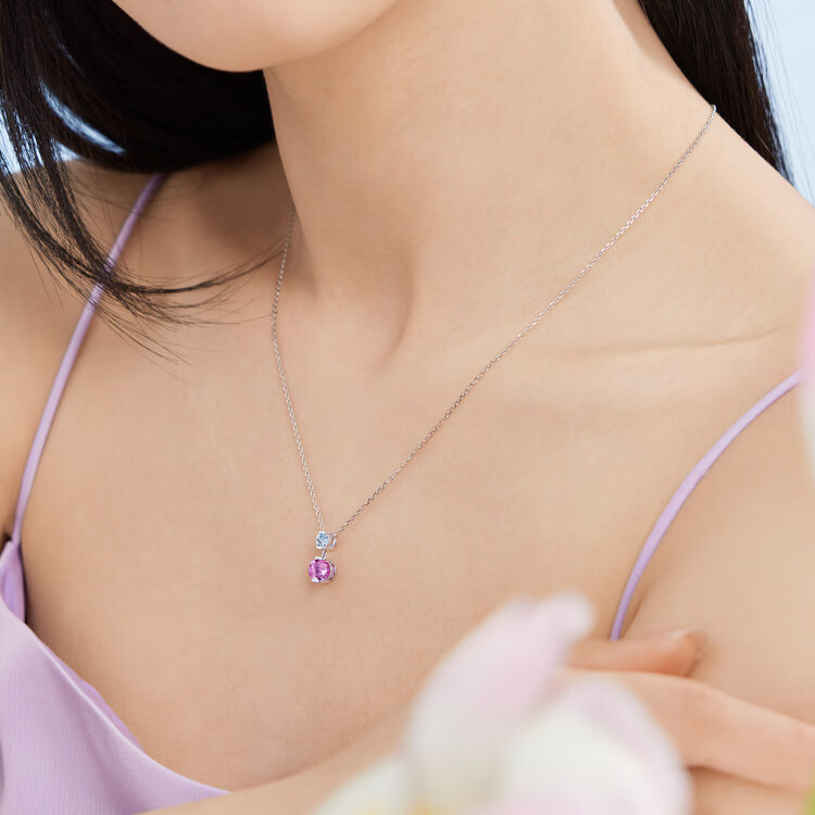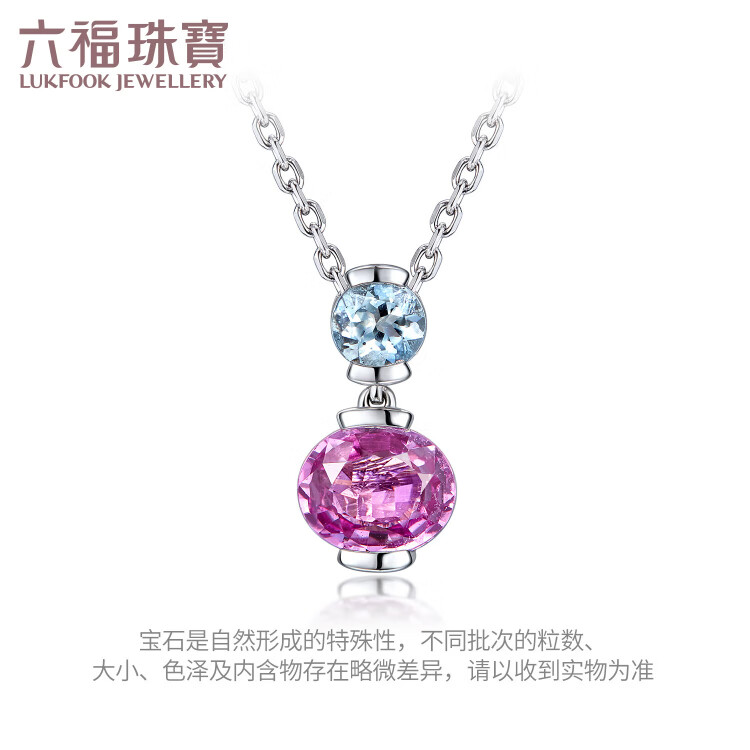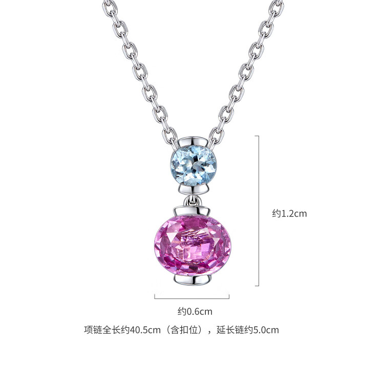 Lukfook Jewelry Platinum 950 Sapphire Aquamarine Small Cherry Platinum Necklace Total weight approximately 3.68 grams