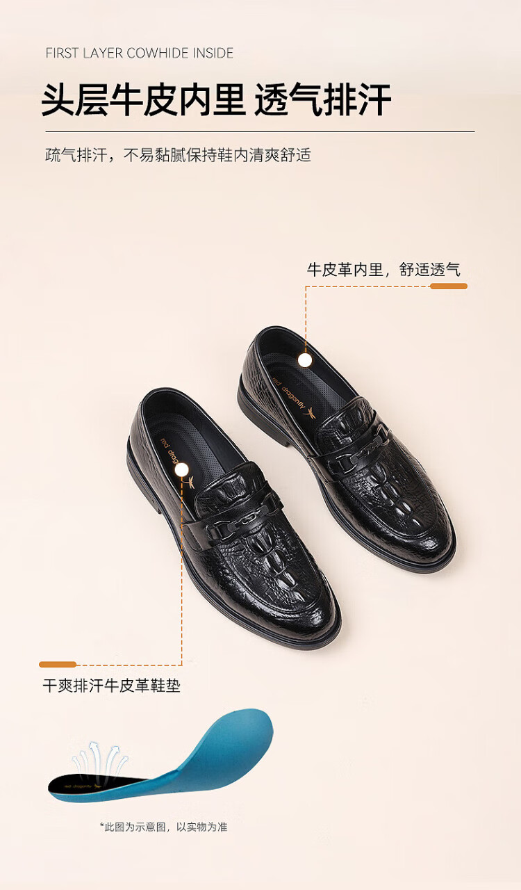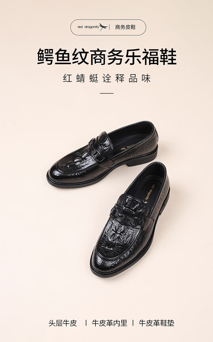 Red Dragonfly men's shoes business casual shoes men's high-end shoes crocodile pattern leather shoes men WLA150551 black 42