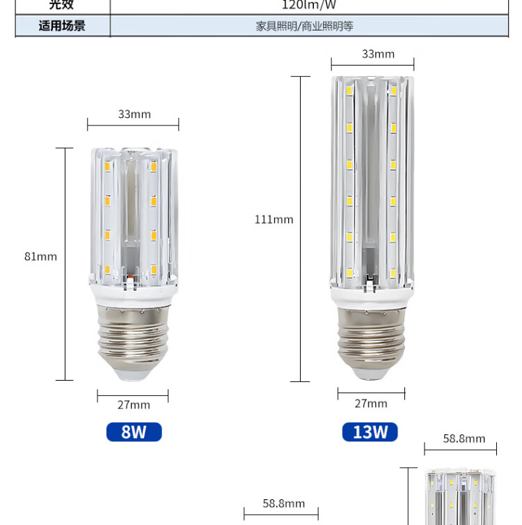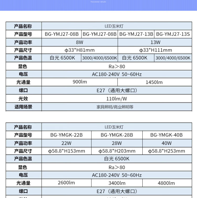 Beigong LED light bulb corn light bulb 28W white light E27 large screw chandelier property factory high-power light source high-brightness light bulb