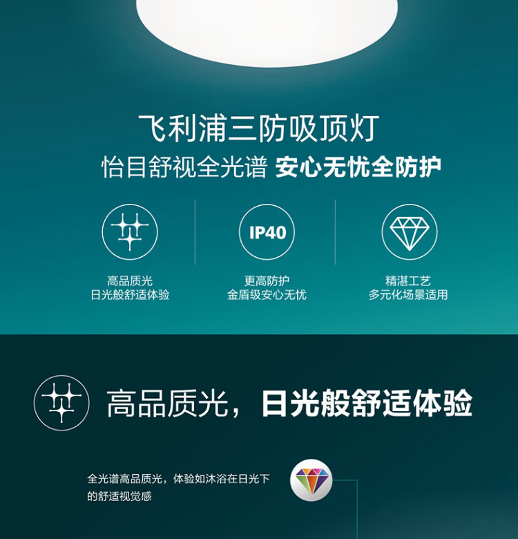 Philips (PHILIPS) full spectrum LED tri-proof ceiling lamp IP40 moisture-proof, dust-proof, mosquito-proof, insect-proof bedroom balcony light 18W warm white light 4000K size 260mm