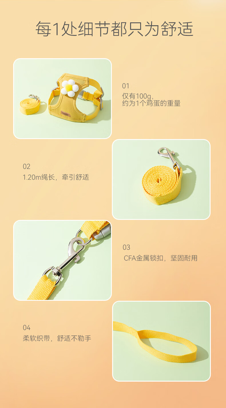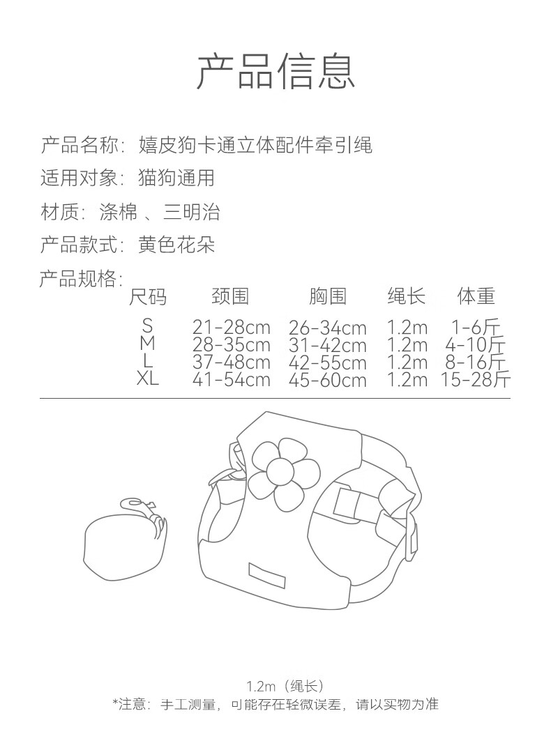 Hippie dog puppy leash vest type dog walking rope small dog harness dog chain S size recommended 1-6 Jin Jin equals 0.5 kg