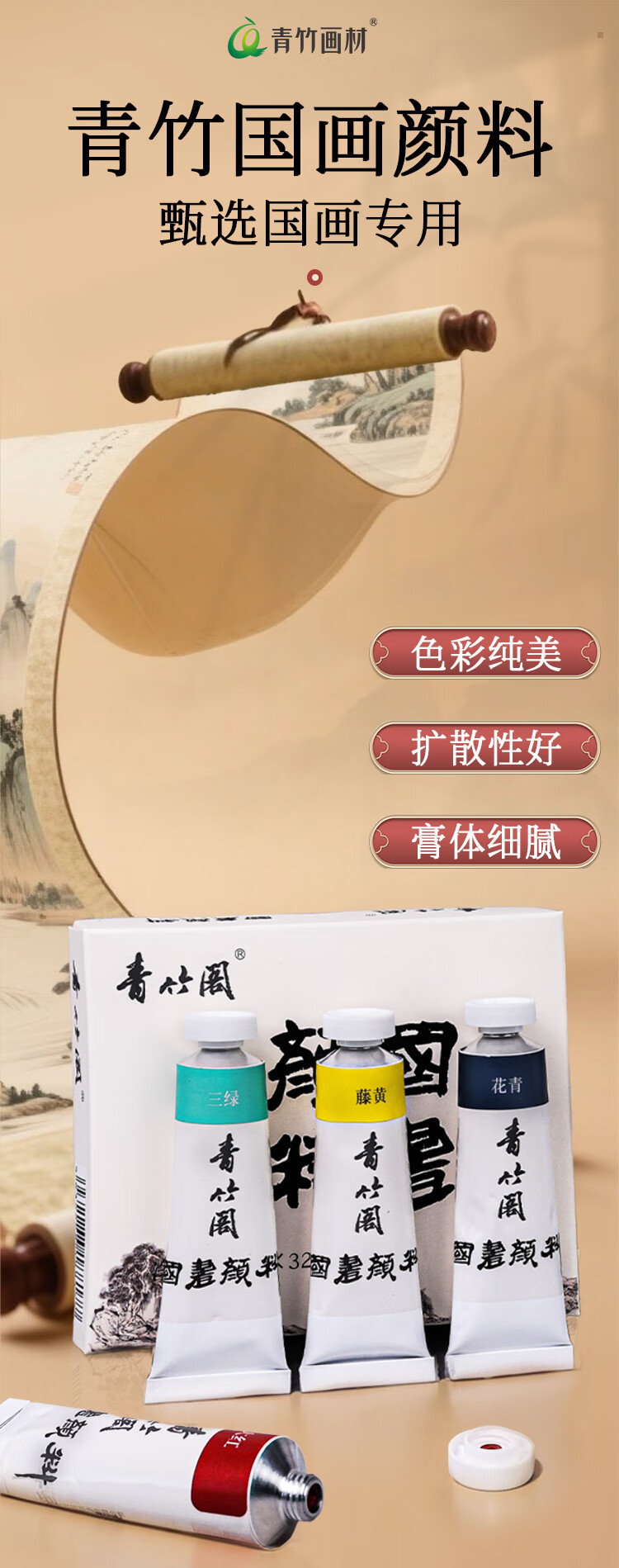 Green Bamboo Painting Material (CHINJOO) Chinese Painting Pigment Chinese Painting Special Color Single 32ml Large Capacity Ink Painting Garcinia Cyan Titanium White Ocher Monochrome Meticulous Painting Dye Eosin