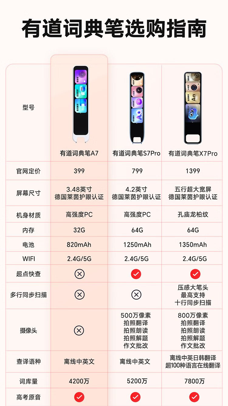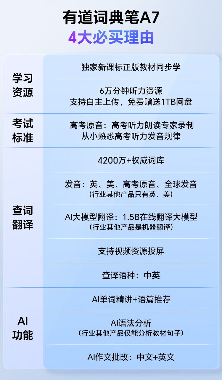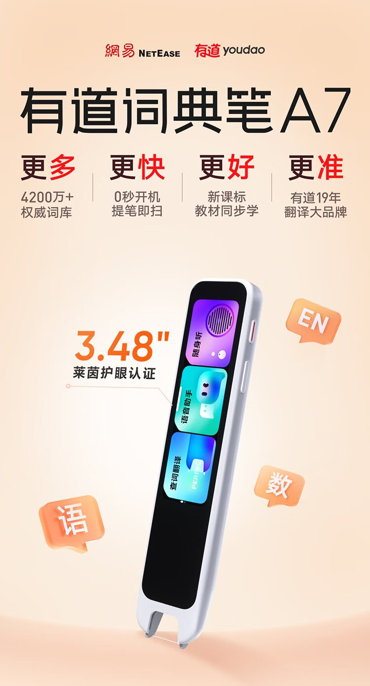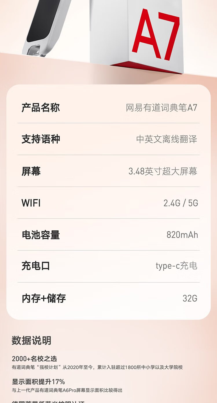 Youdao Dictionary Pen A7 English Reading Pen Primary School Junior High School New Curriculum Standard Textbook Synchronous Scanning Learning Pen Artifact Electronic Dictionary Translation Pen Word Pen Reading Machine Learning Machine
