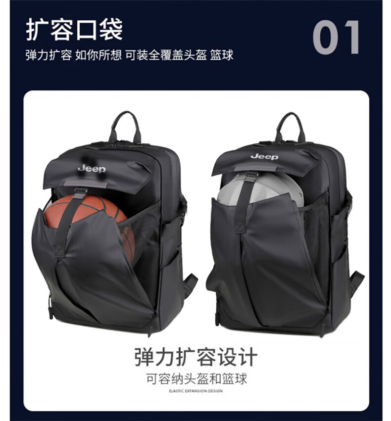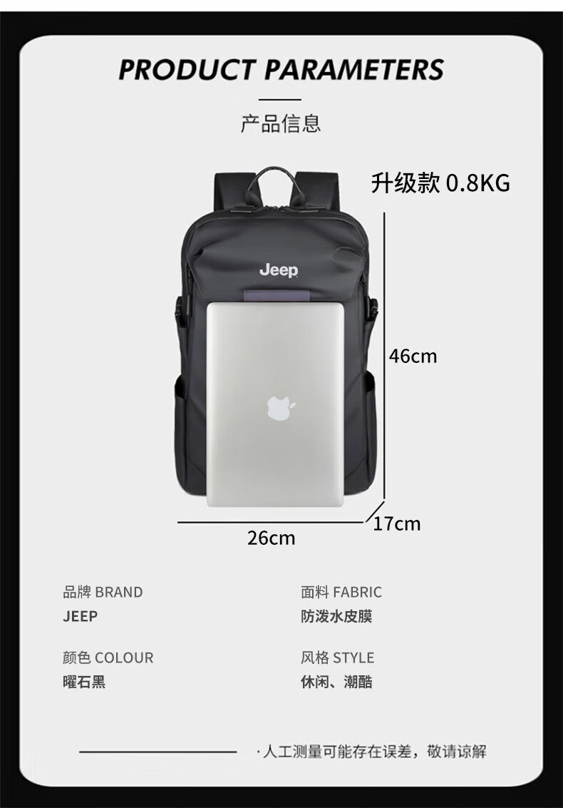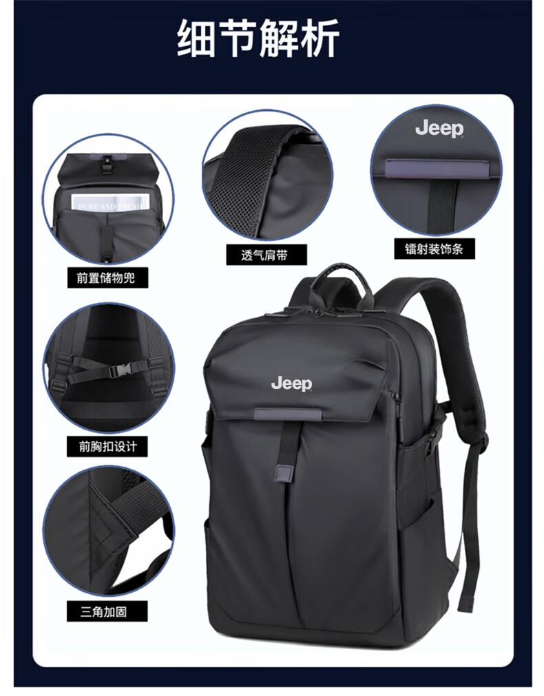 JEEP Backpack Backpack Men's Business Light Luxury Large Capacity Student School Bag Work Commuting Computer Bag Business Travel Bag