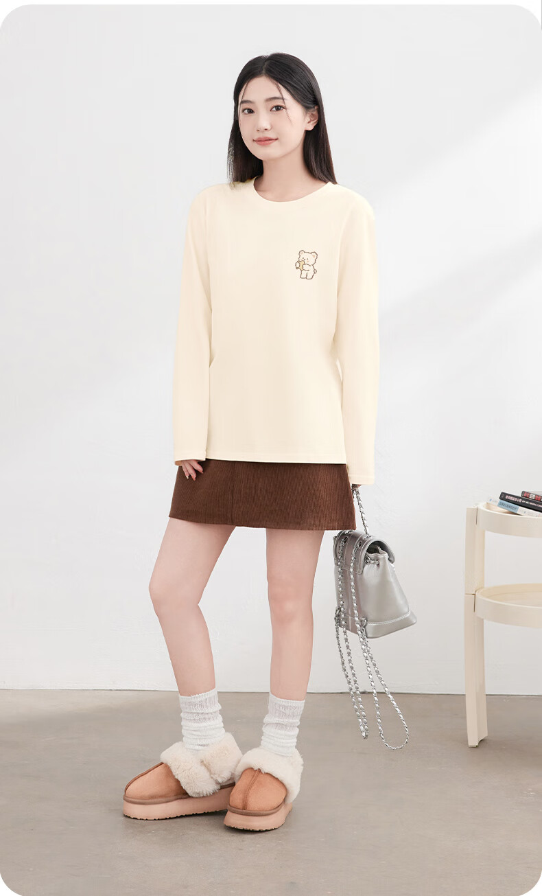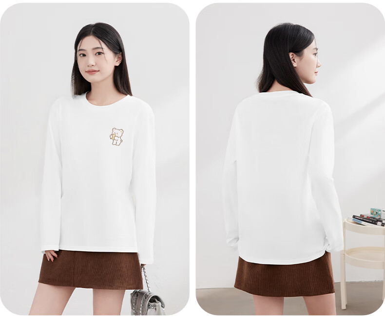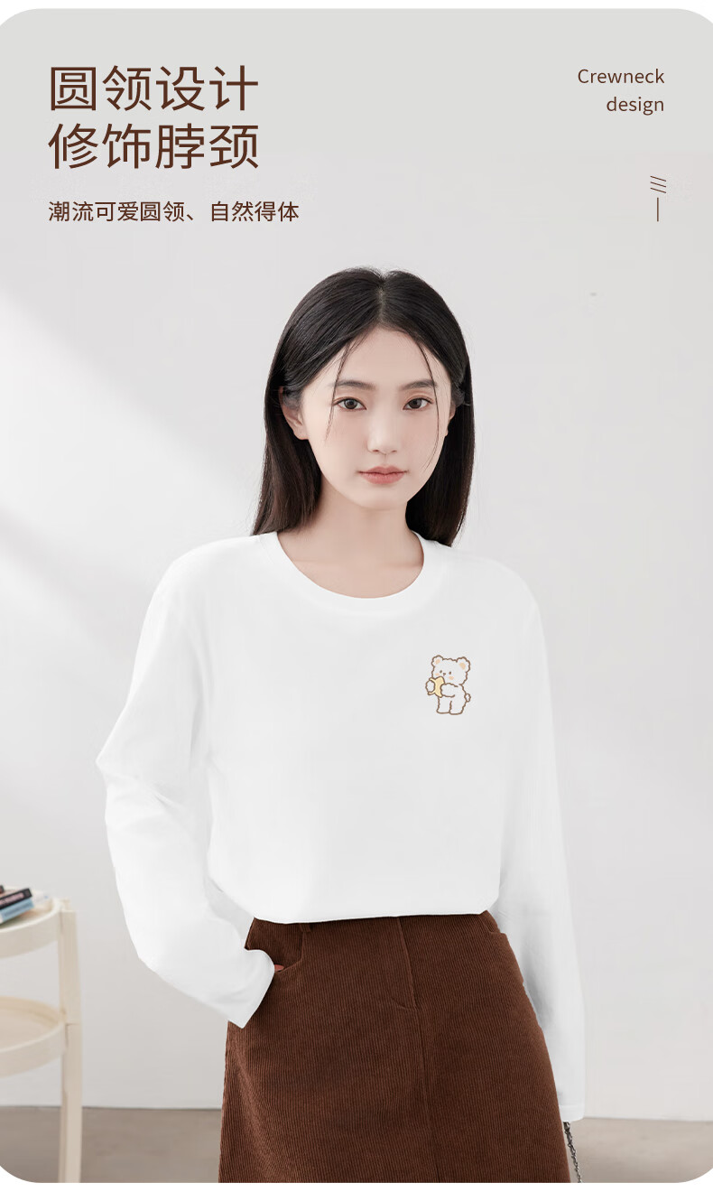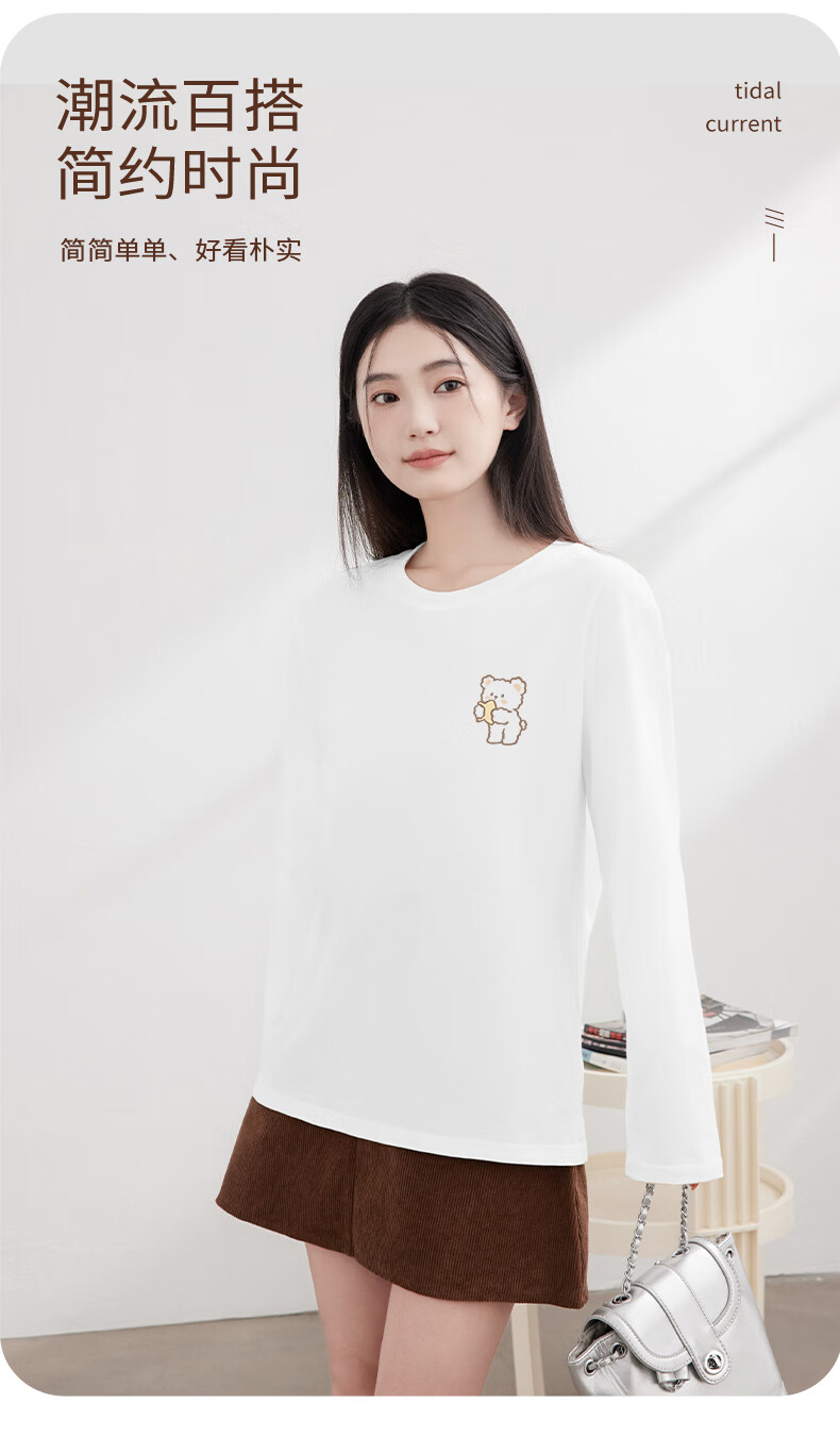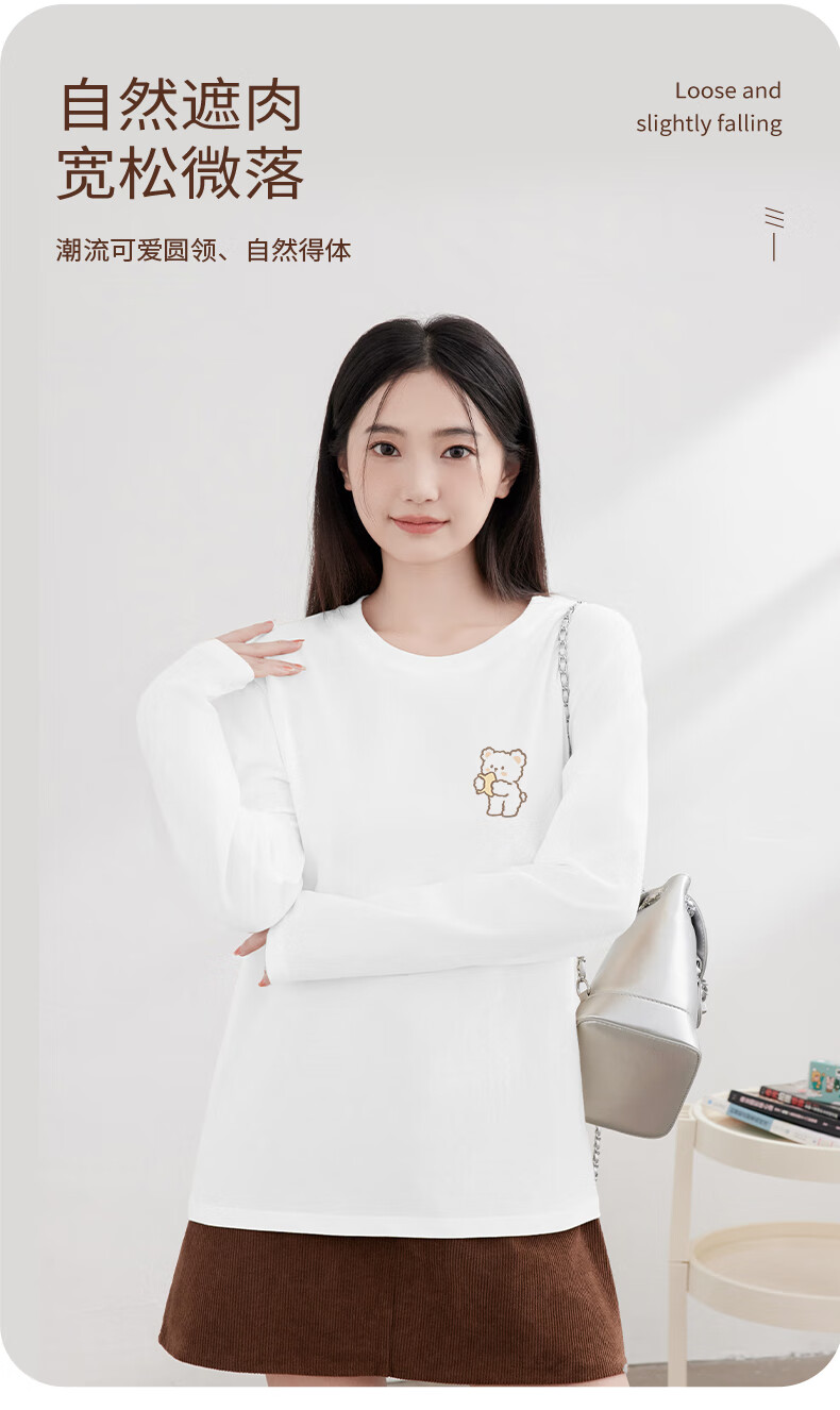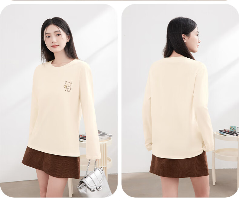Baleno S&K 100% cotton long-sleeved T-shirt for women 2026 spring and autumn new cute bear print outer wear inner base layer