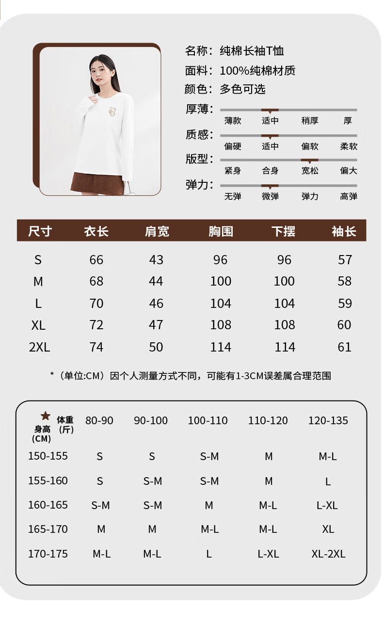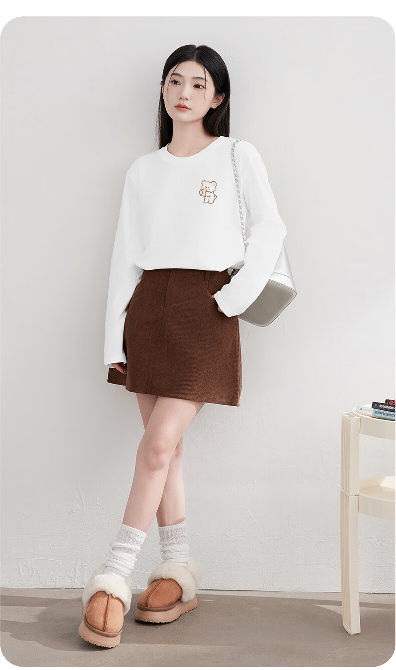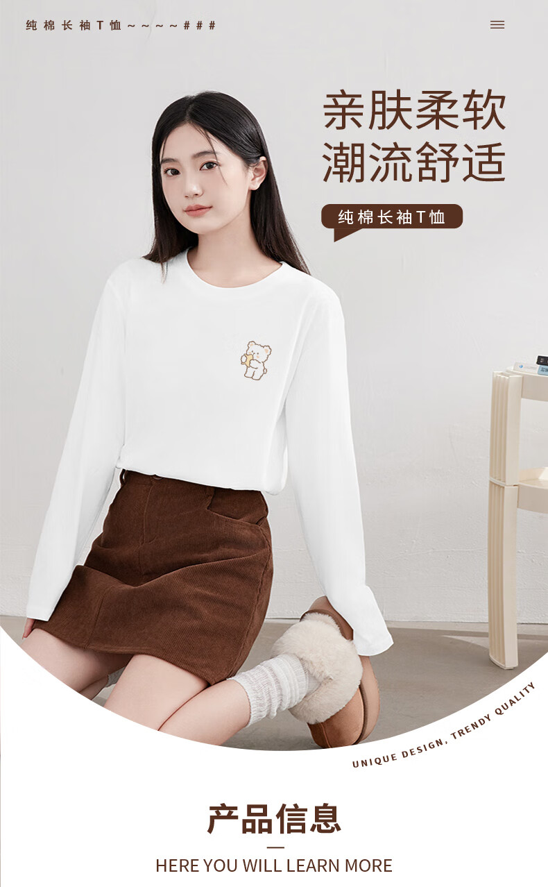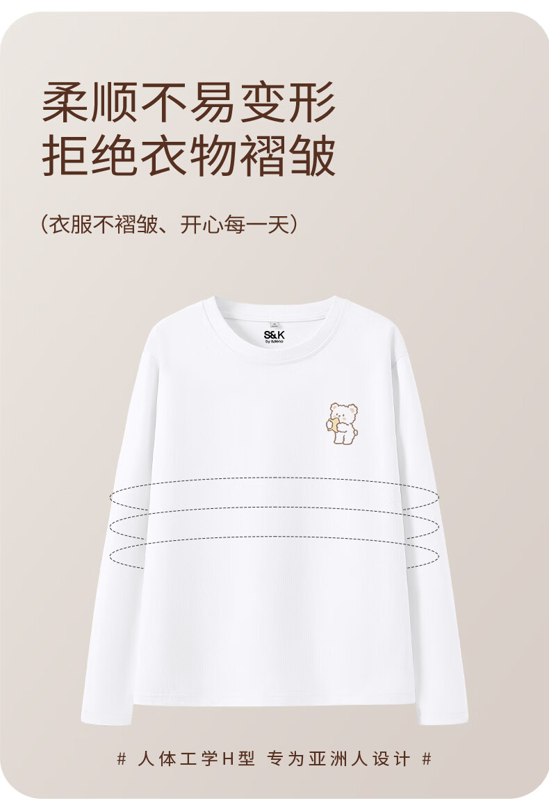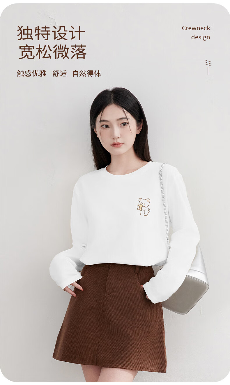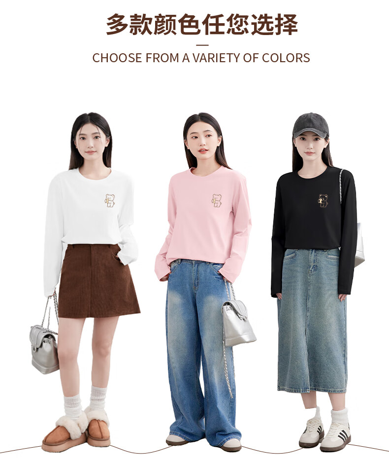 Baleno S&K 100% cotton long-sleeved T-shirt for women 2026 spring and autumn new cute bear print outer wear inner base layer