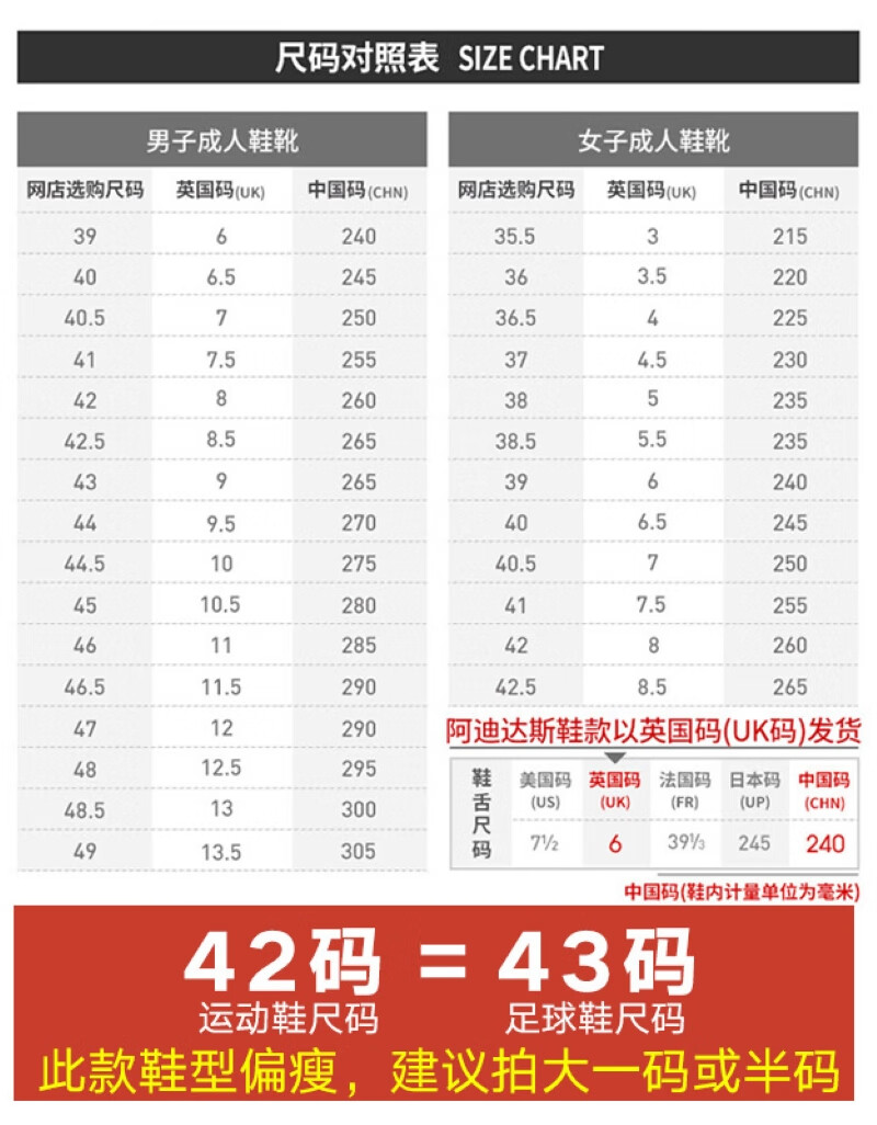 China (cm) 36 - 37 38 - 39 40 - 42 43 - 44 45 - 47