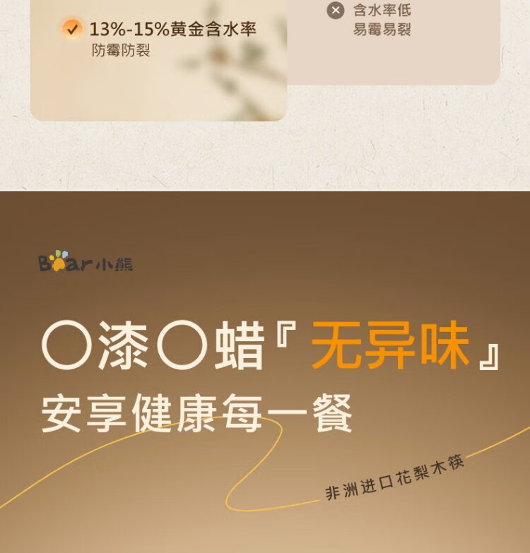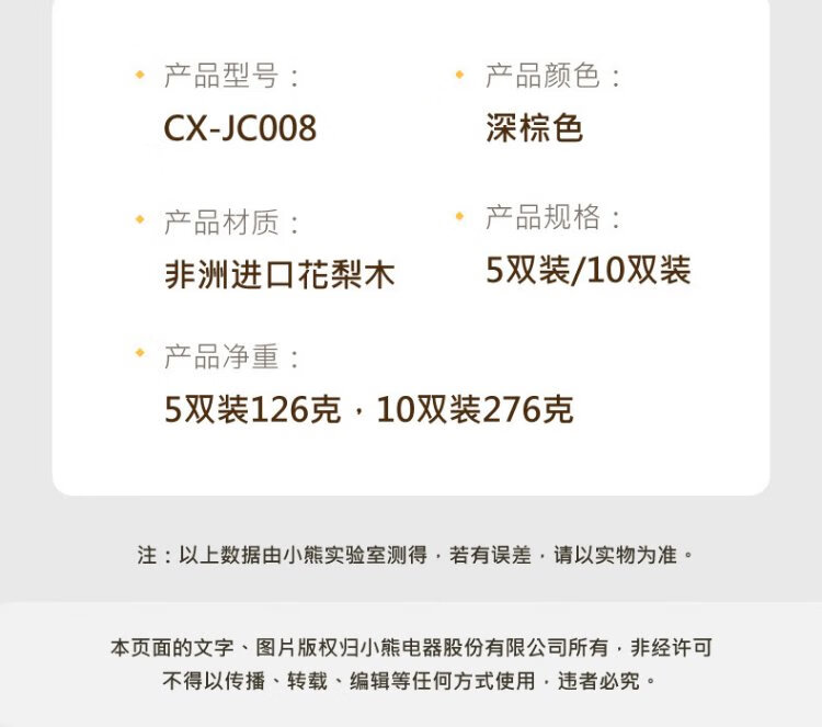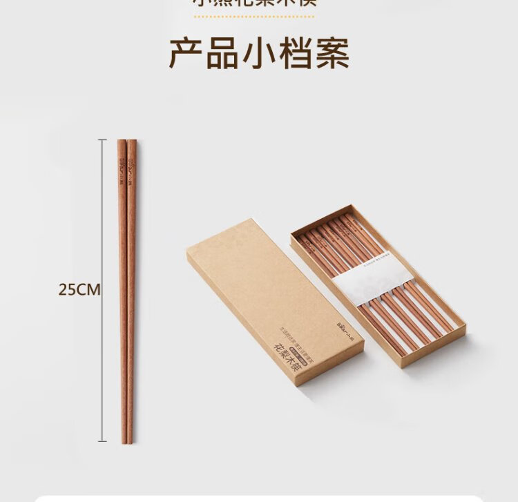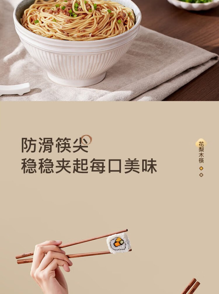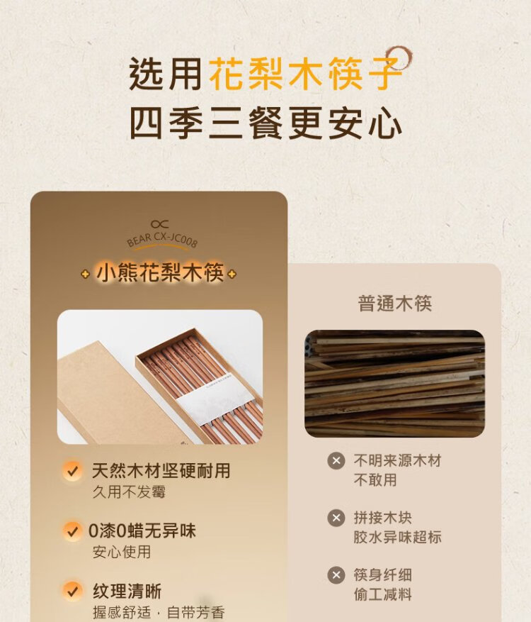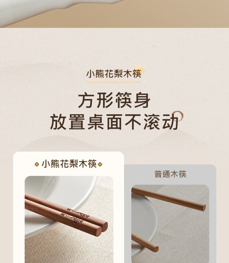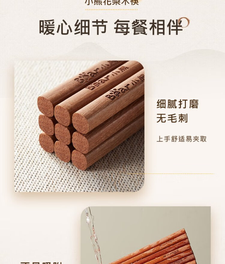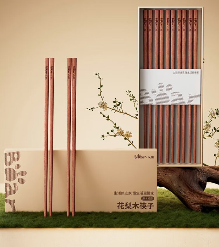 小熊(Bear)花梨木筷子 家用高档木筷花梨木 天然抗菌防霉木质餐具 10双装
