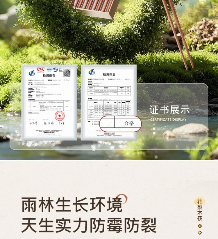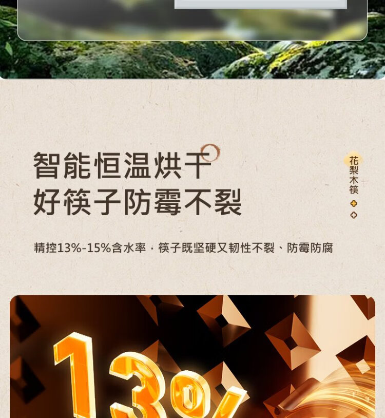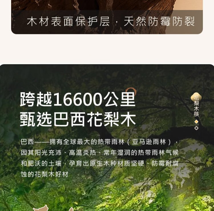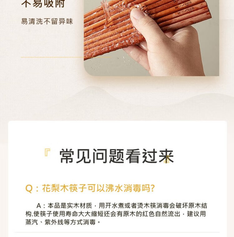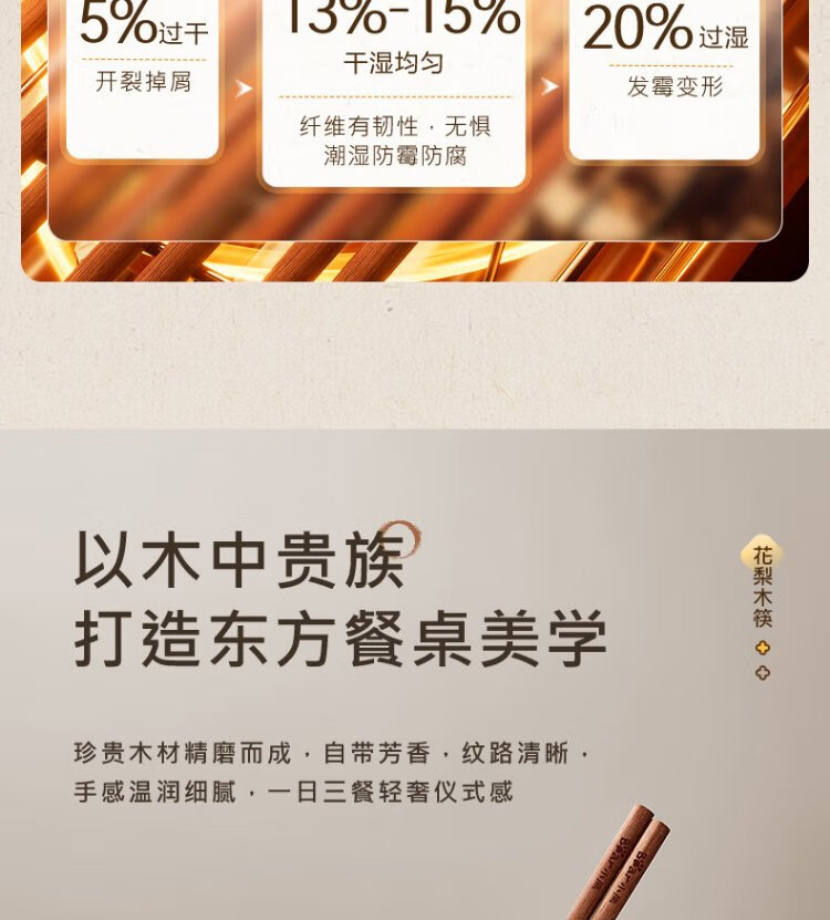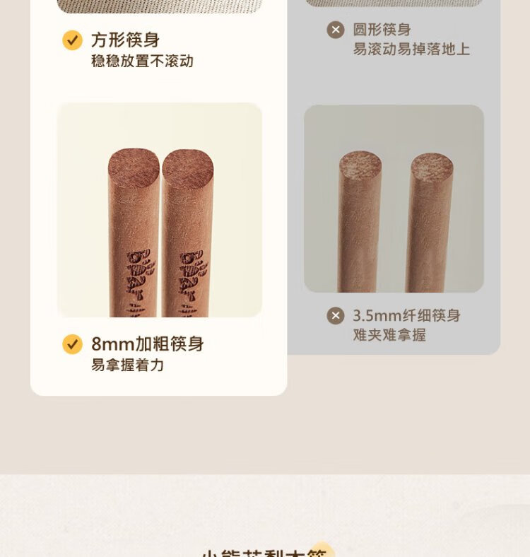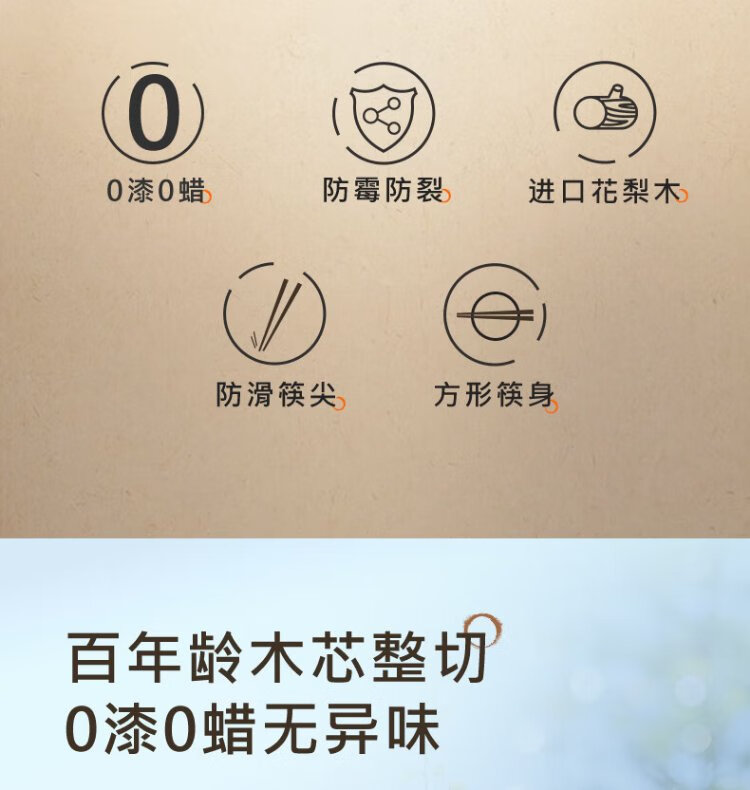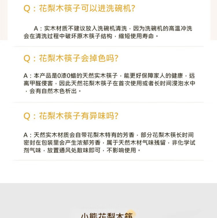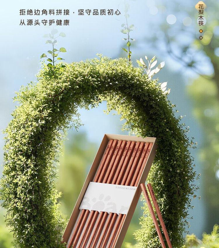 小熊(Bear)花梨木筷子 家用高档木筷花梨木 天然抗菌防霉木质餐具 10双装