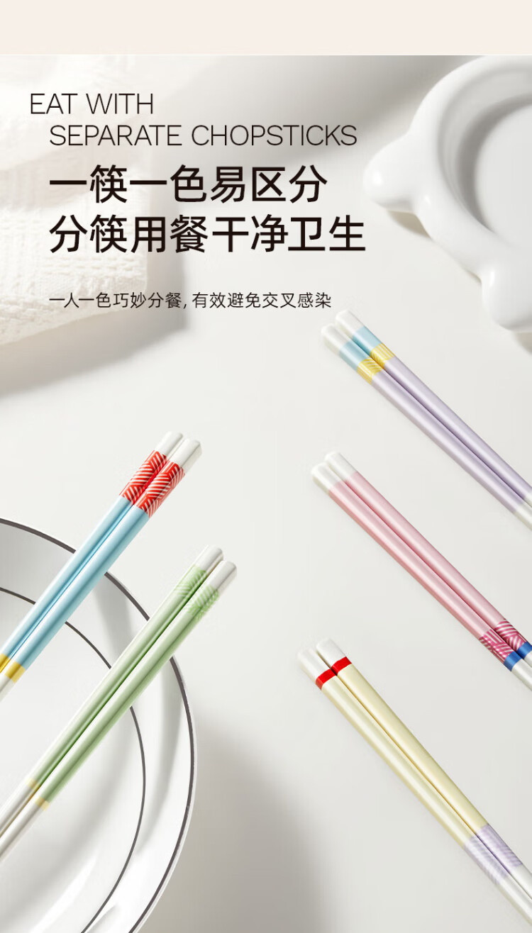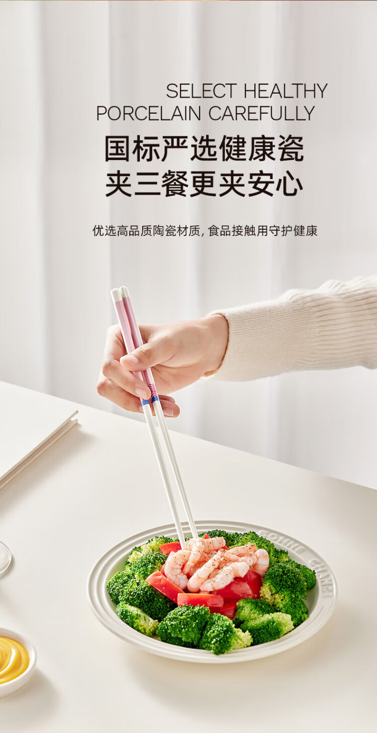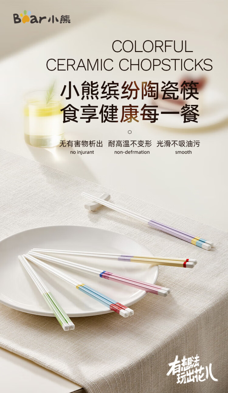 小熊(Bear)陶瓷筷子 陶瓷家用高级食品级抗菌防霉食品级家用 彩色五双装