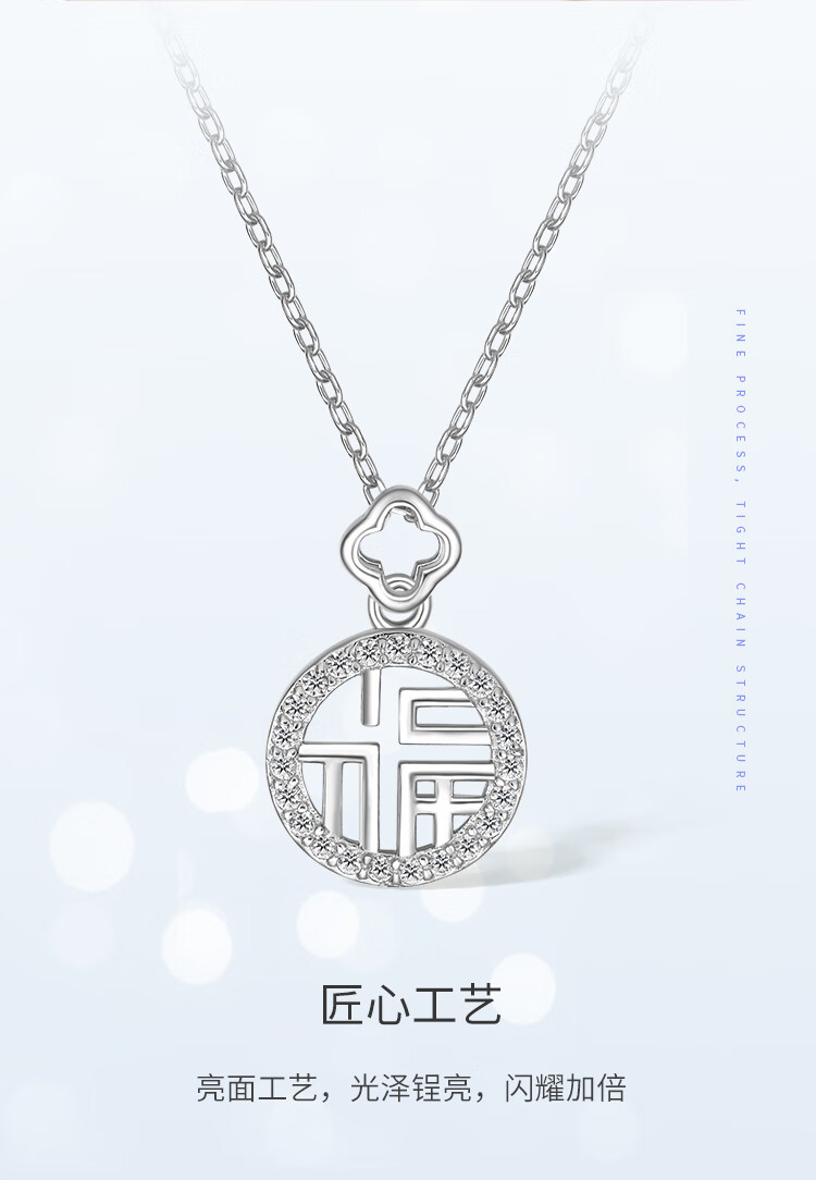 Saturday Fortune S925 Silver Fortune brand necklace pendant national trend clavicle chain birthday gift J0611149 40+5cm