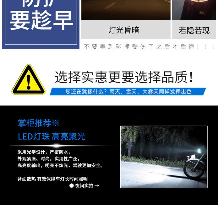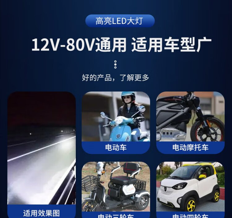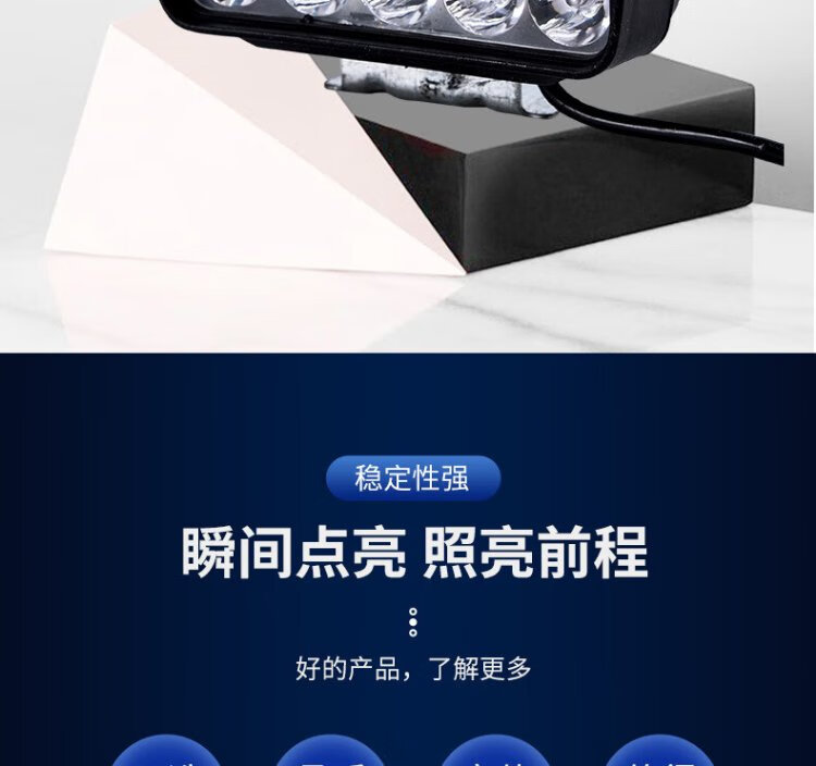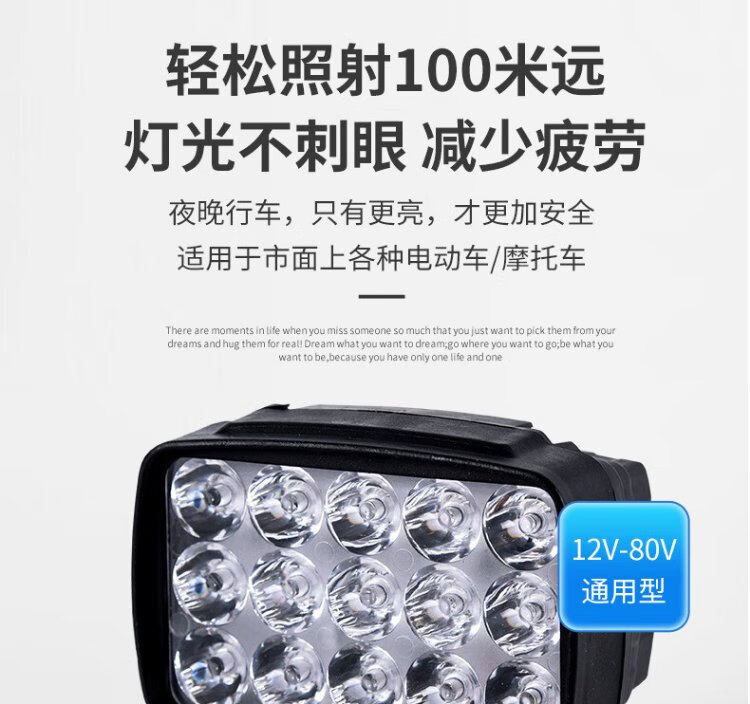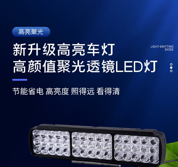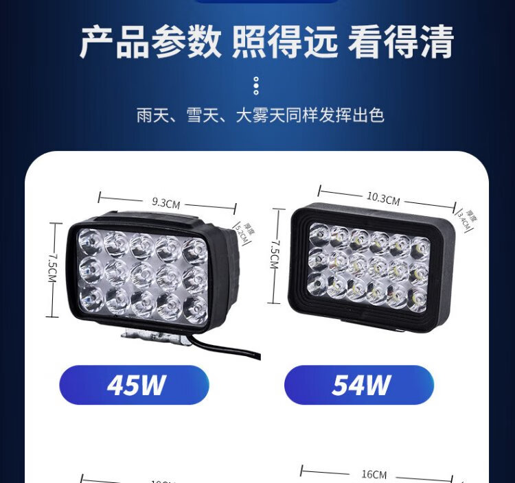 Yuanbo strong light LED headlight electric motorcycle light modified external super bright three-wheeled battery car rogue spotlight 15 beads 45W high-bright car light