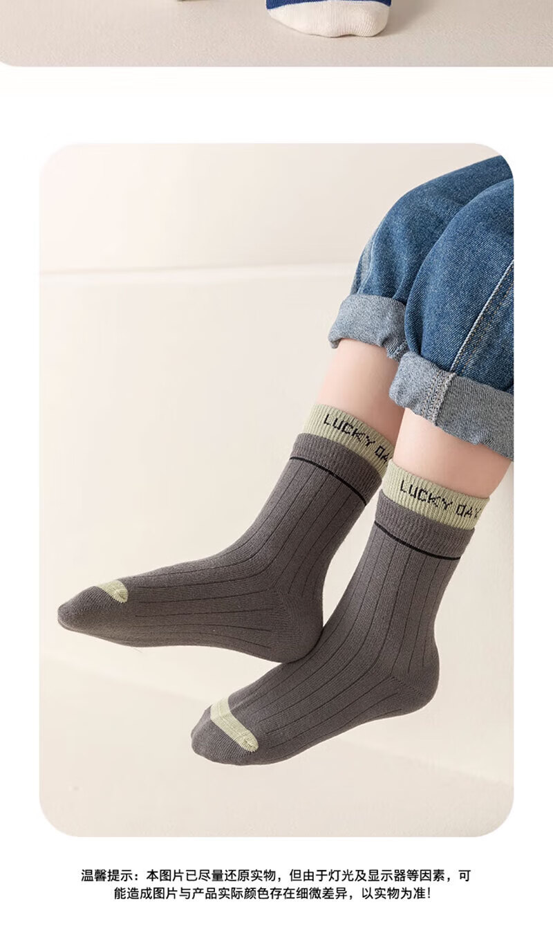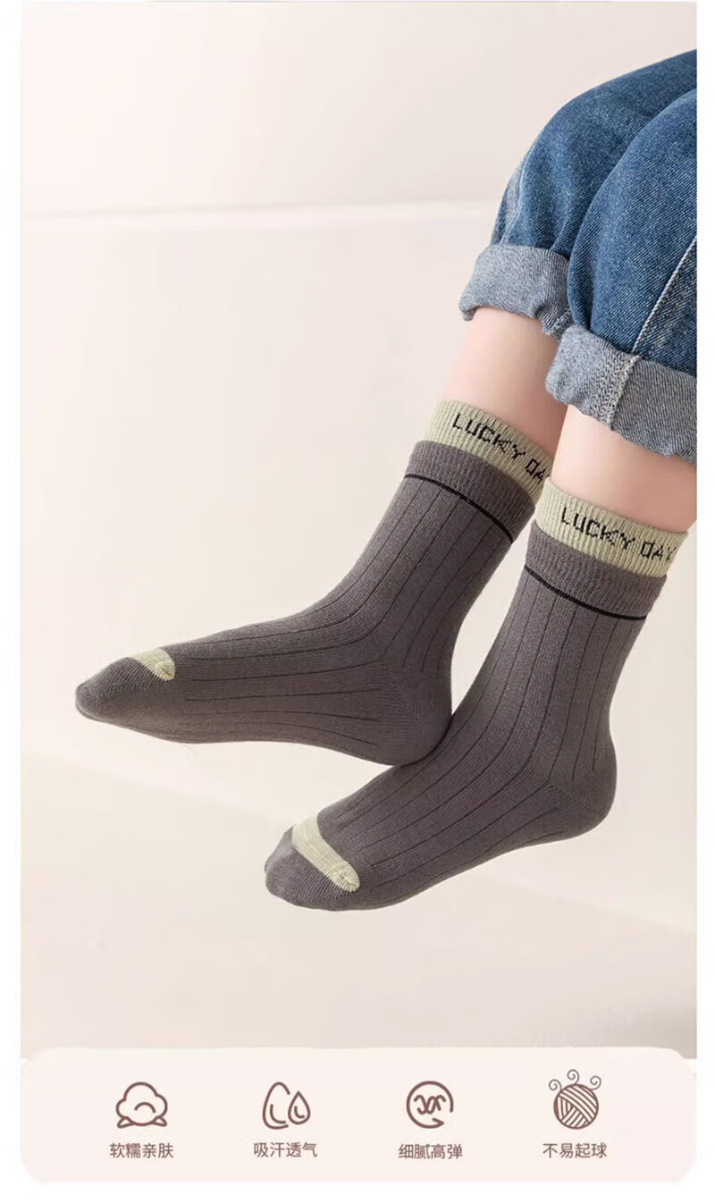Cotton-filled children's socks, Xinjiang cotton anti-bacterial and anti-mite socks for middle-aged and older students, boys and girls, 5 pairs of cotton socks for autumn and winter