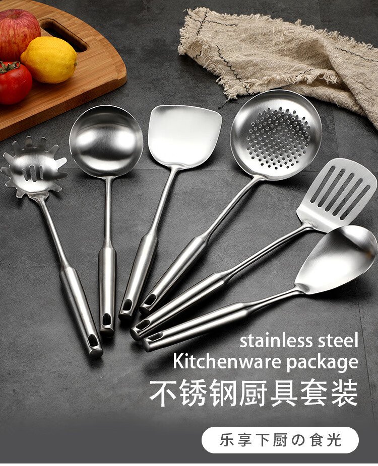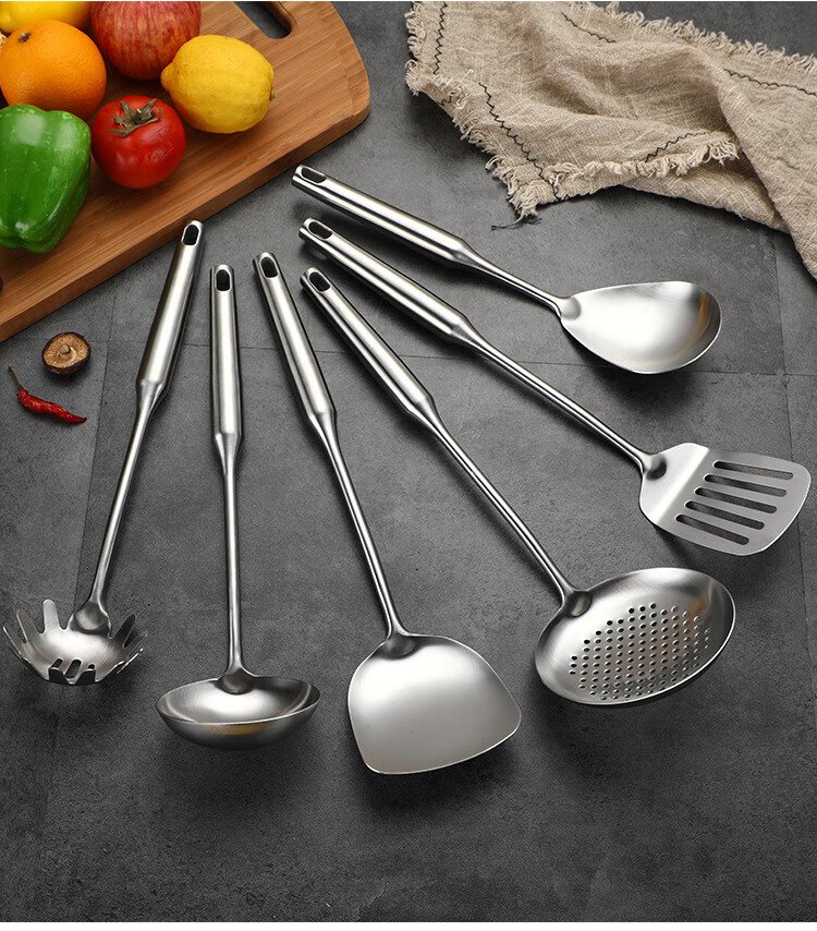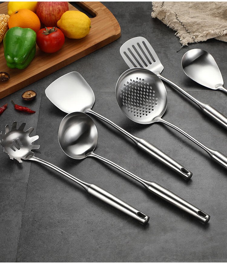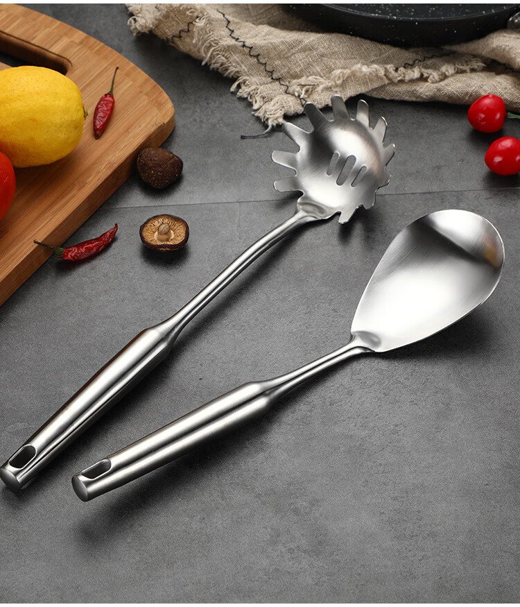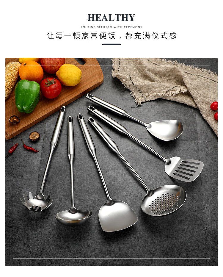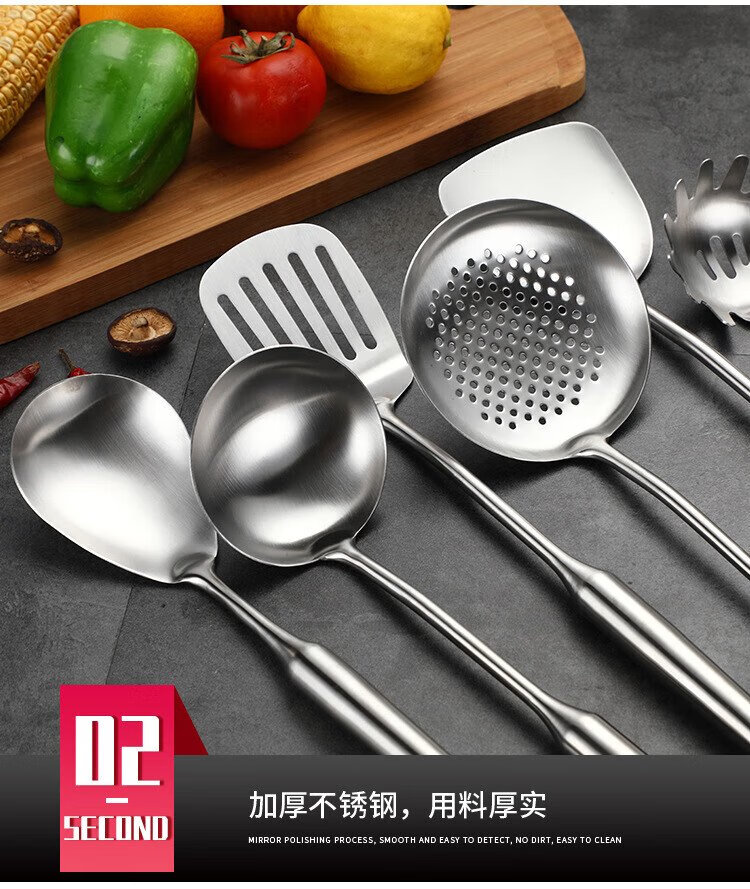 Jinwanfu 304 stainless steel soup spoon thickened spoon long handle cooking spoon porridge spoon integrated all-steel vacuum handle is not afraid of burning
