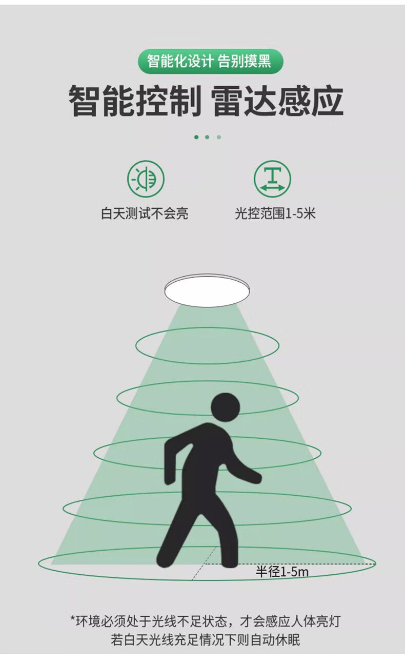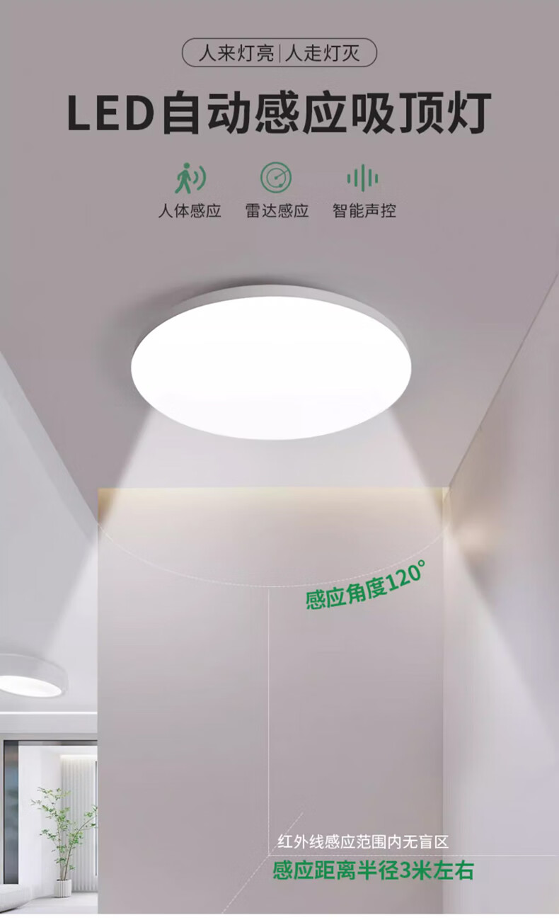 JINGGONG radar sensor LED three-proof ceiling light ultra-thin energy-saving high-bright stair aisle corridor corridor light smart light