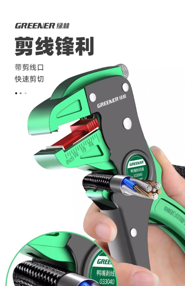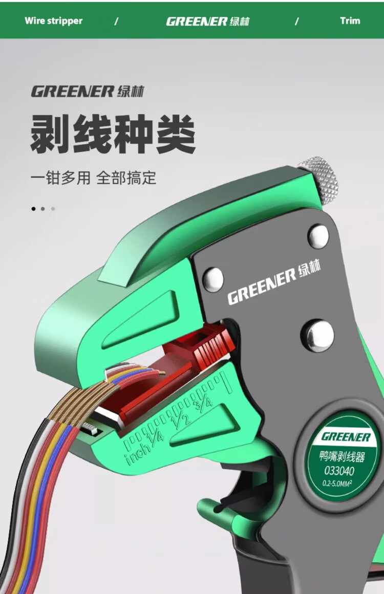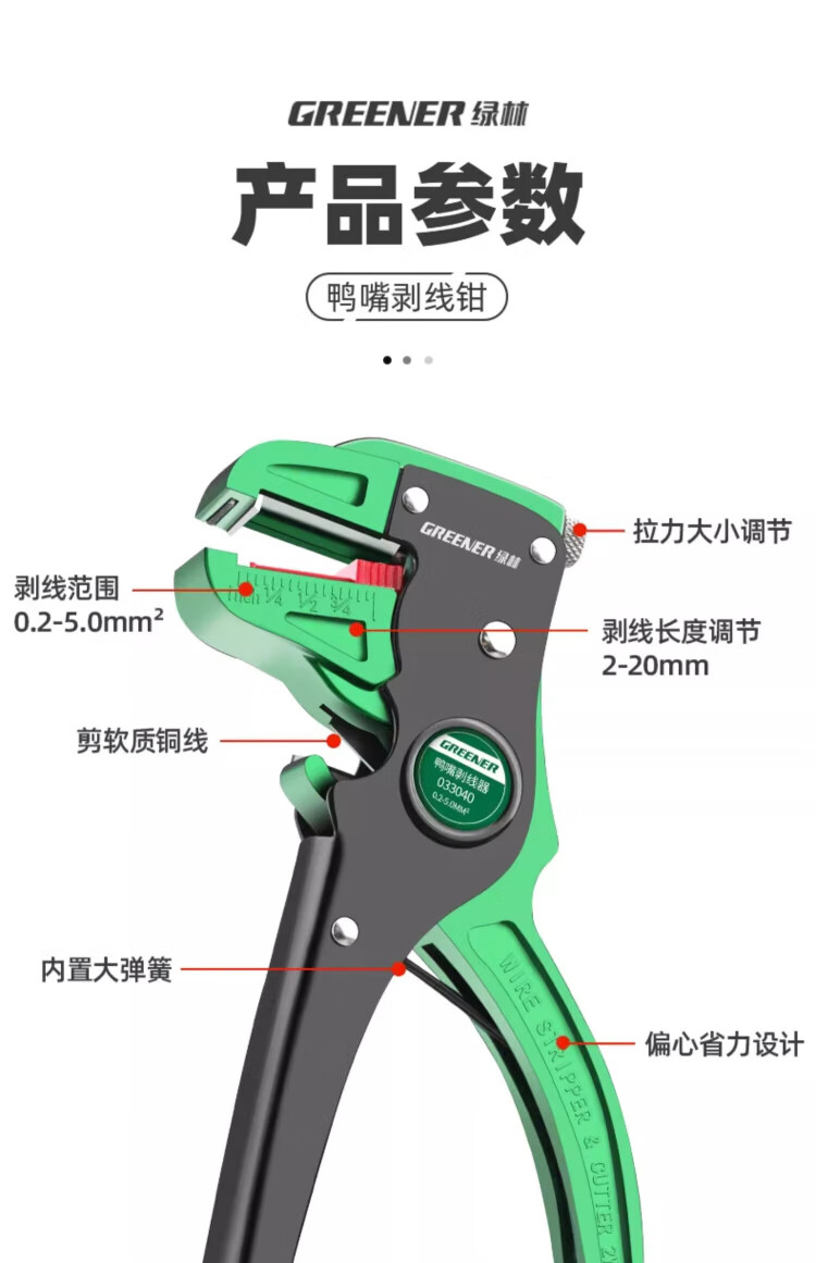 GREENER wire stripping pliers, special tools for electricians, household multi-functional duckbill type wire stripping pliers, hawkbill wire stripping pliers, electric pen