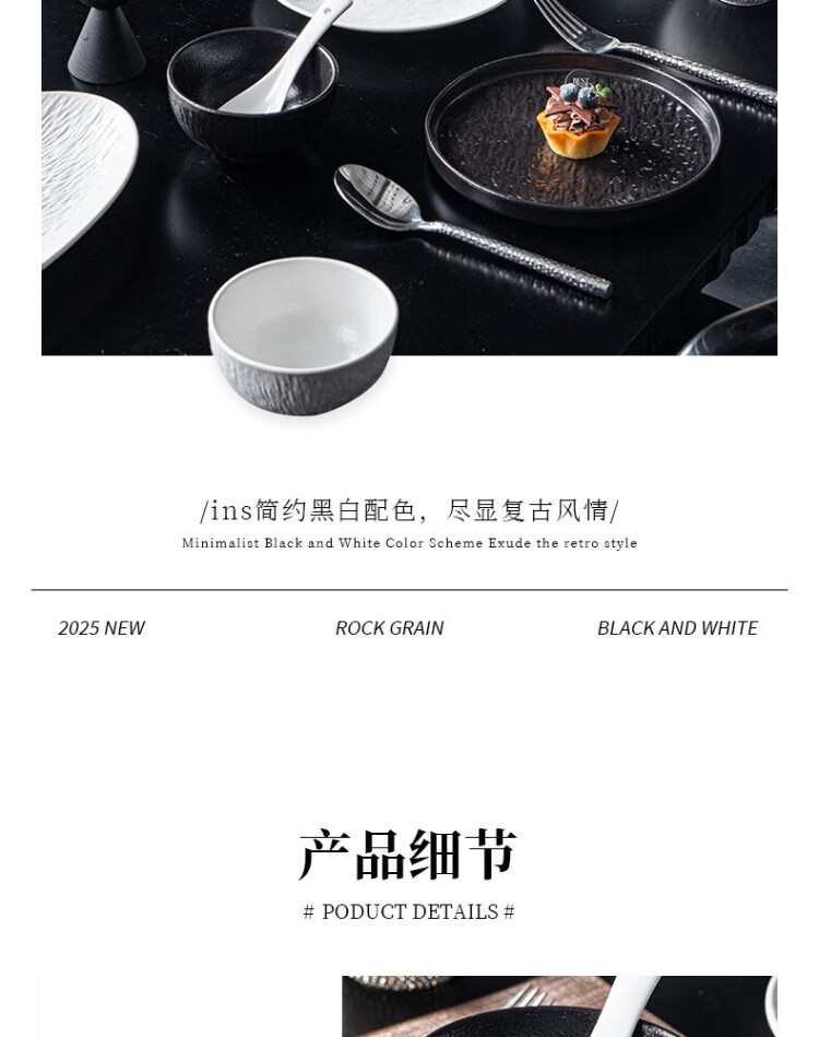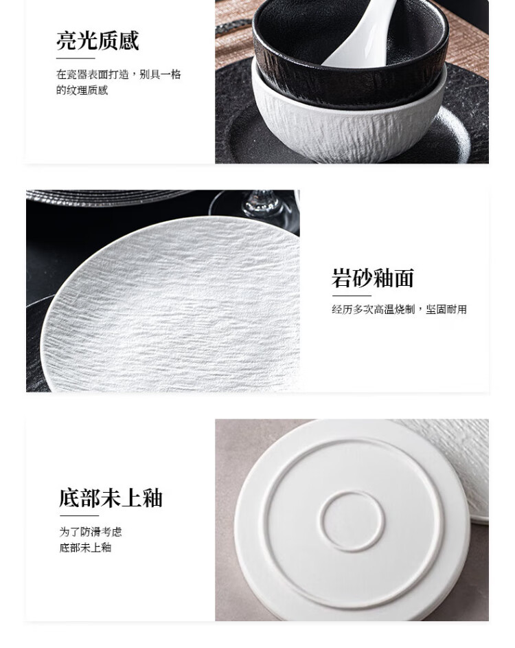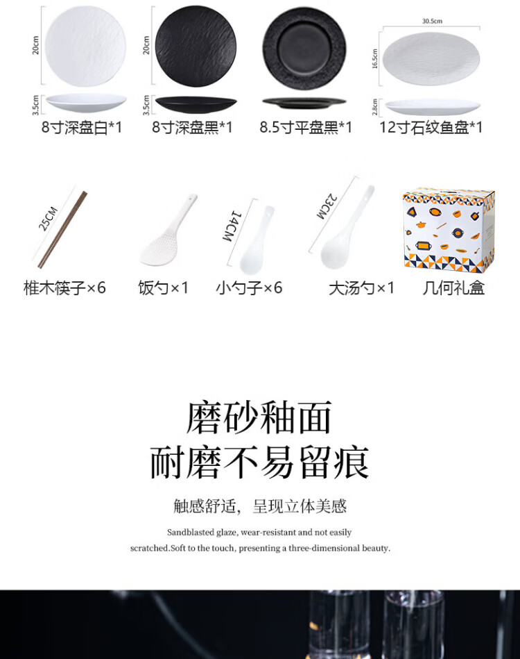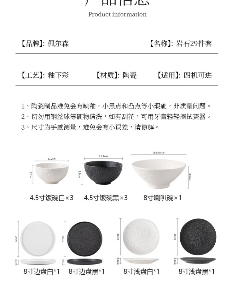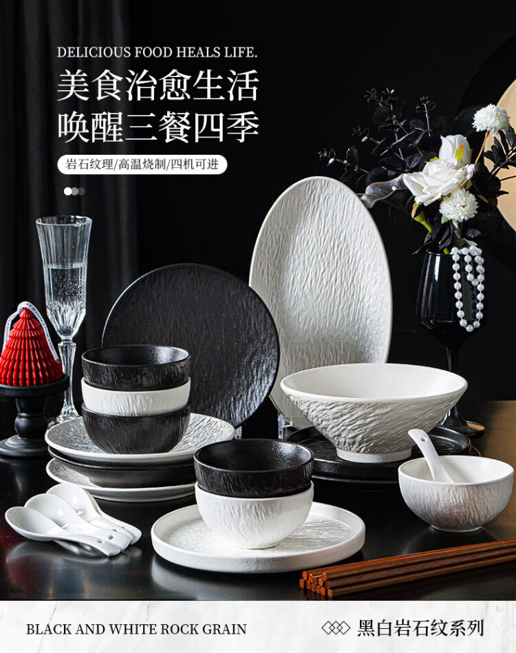 Persson Japanese-style underglaze ceramic dishes set household tableware set housewarming gift black and white rock pattern 29-piece gift box