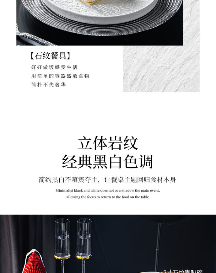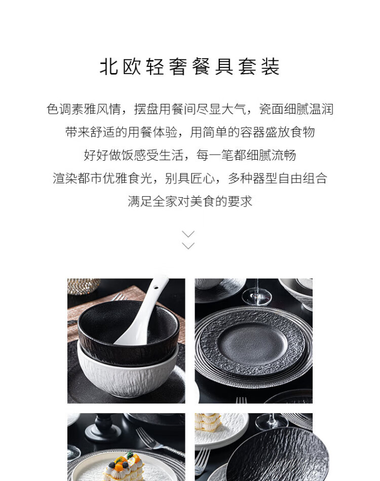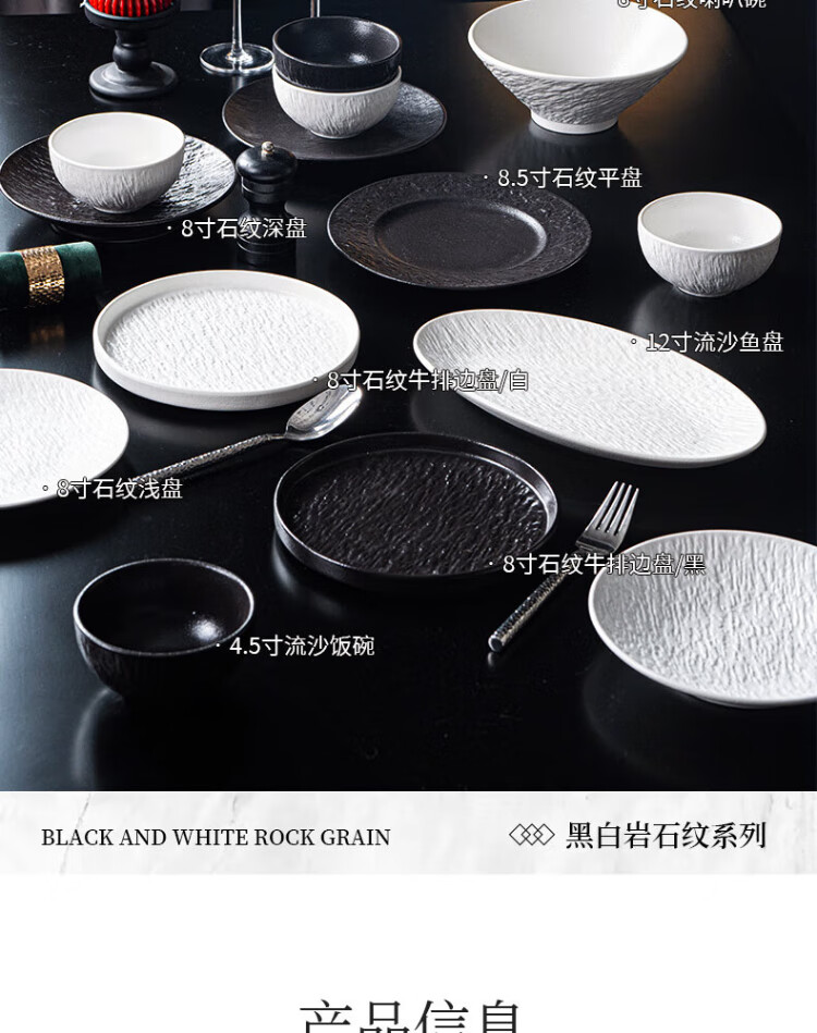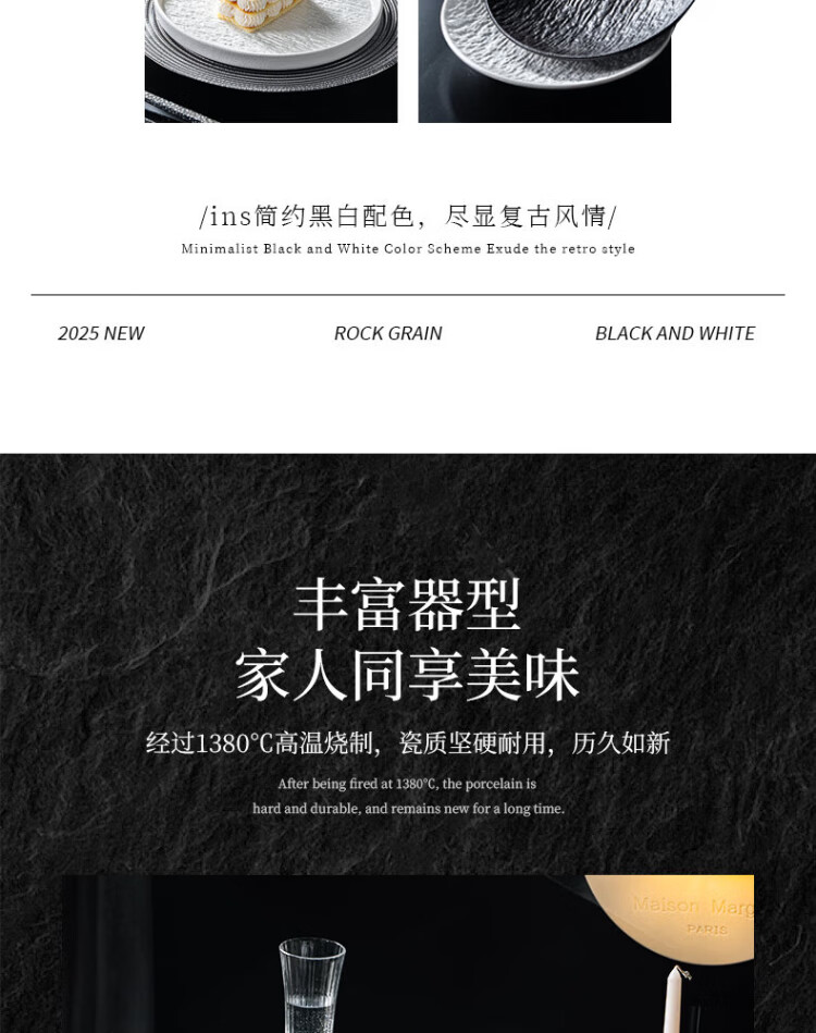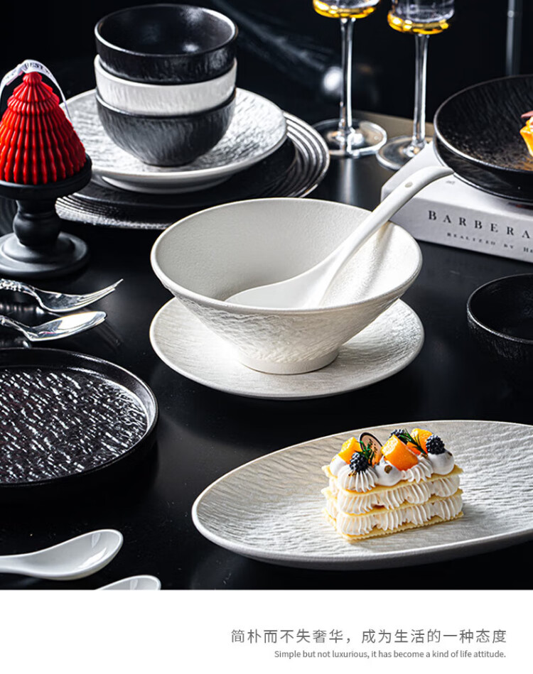 Persson Japanese-style underglaze ceramic dishes set household tableware set housewarming gift black and white rock pattern 29-piece gift box