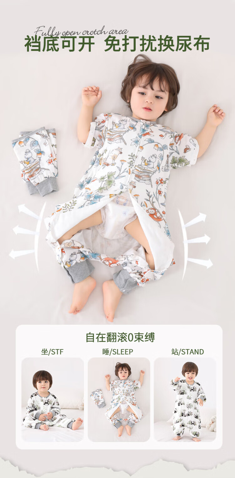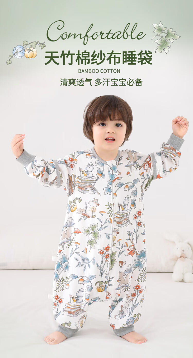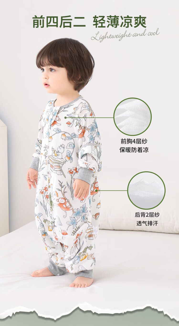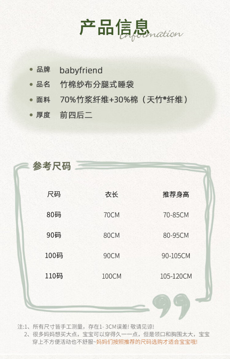 Baby friend infant sleeping bag baby pajamas spring and autumn thin children's front 4 back 2 gauze sleeping bag air-conditioned room anti-kicking quilt 80 yards