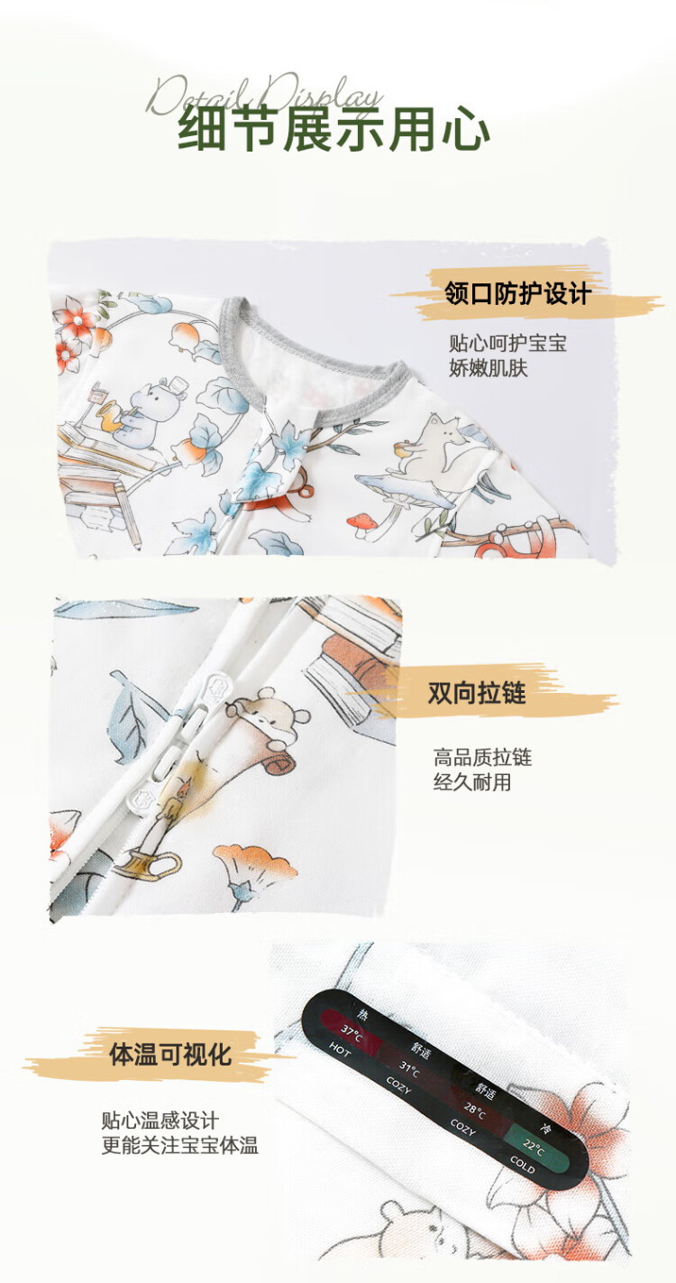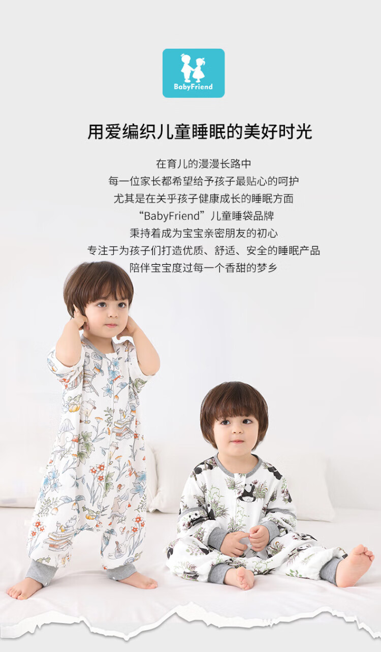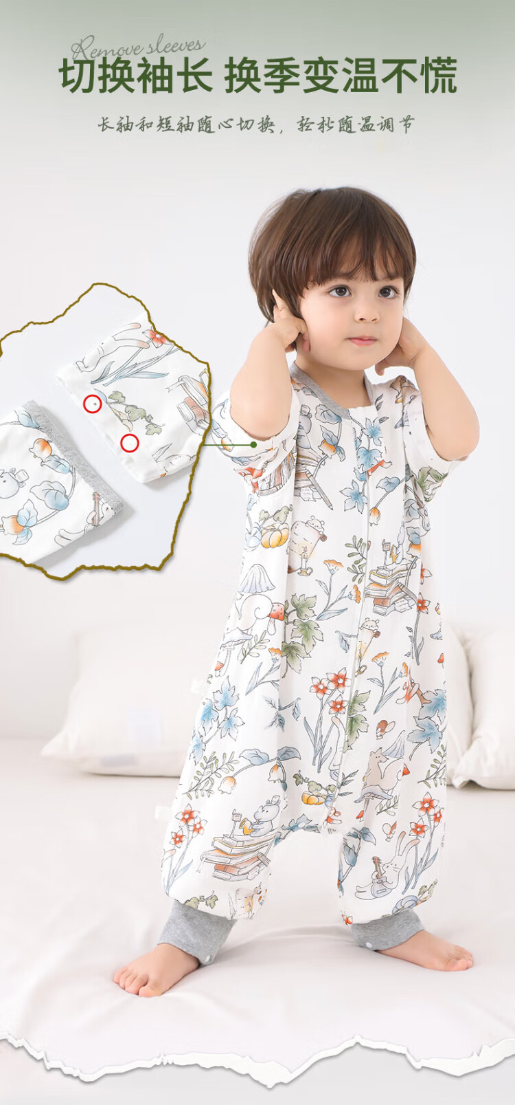Baby friend infant sleeping bag baby pajamas spring and autumn thin children's front 4 back 2 gauze sleeping bag air-conditioned room anti-kicking quilt 80 yards