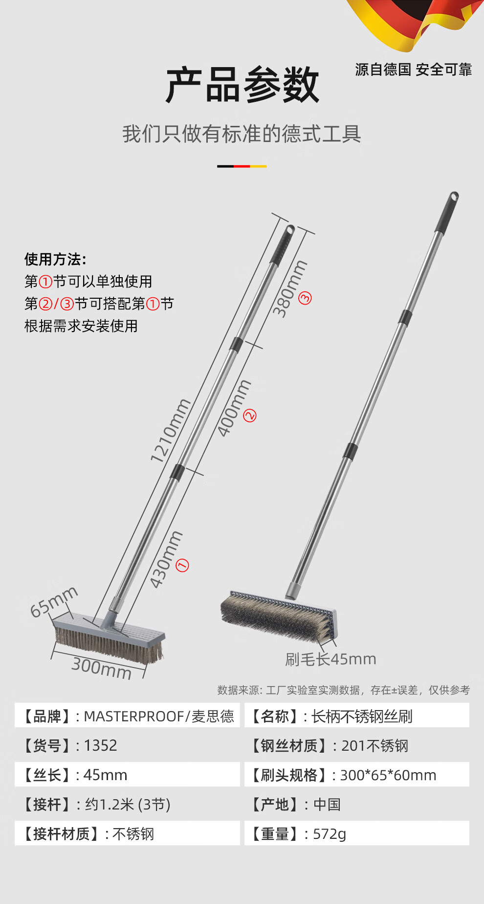 MASTERPROOF wire brush long handle floor garden cleaning tool moss brush stainless steel wire iron brush hard bristled dirt and rust removal