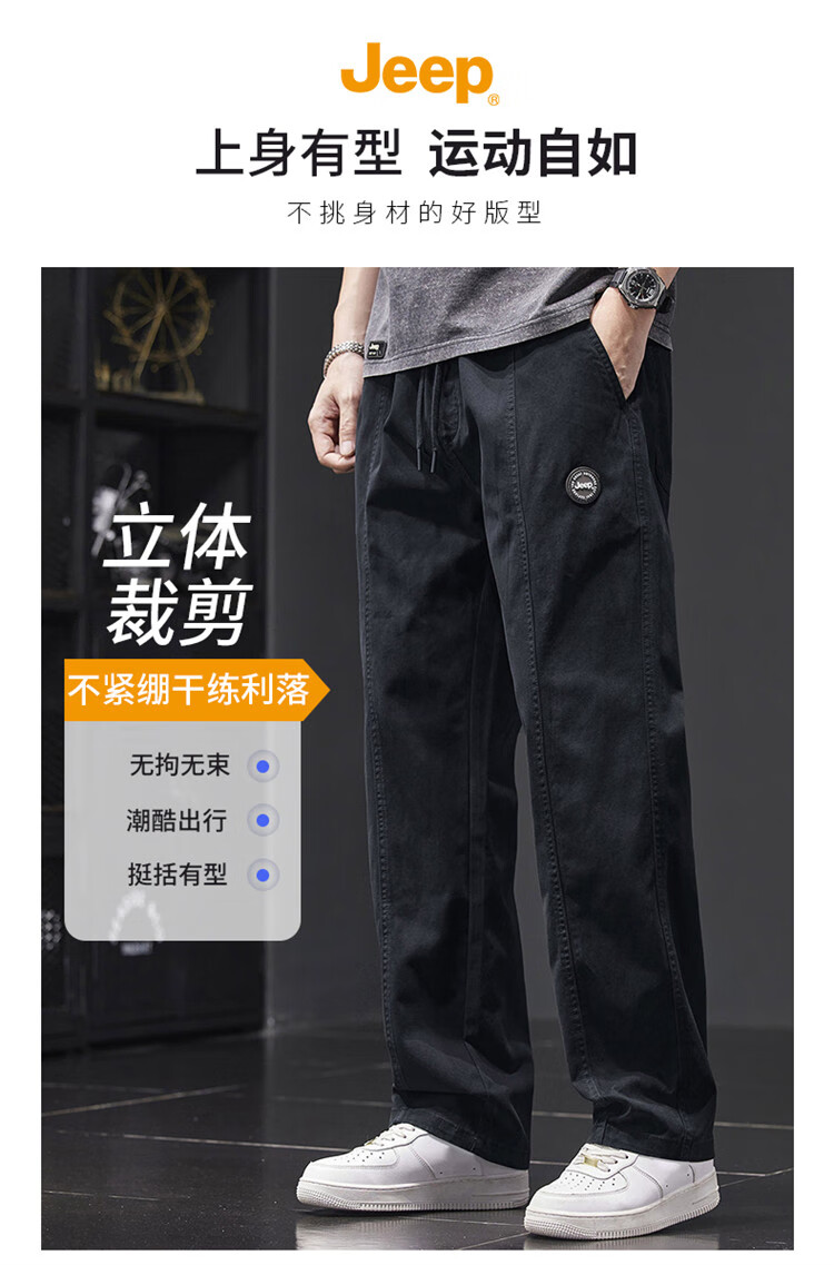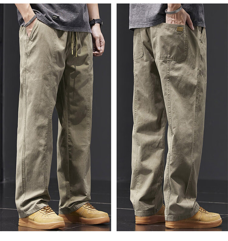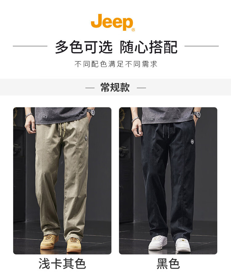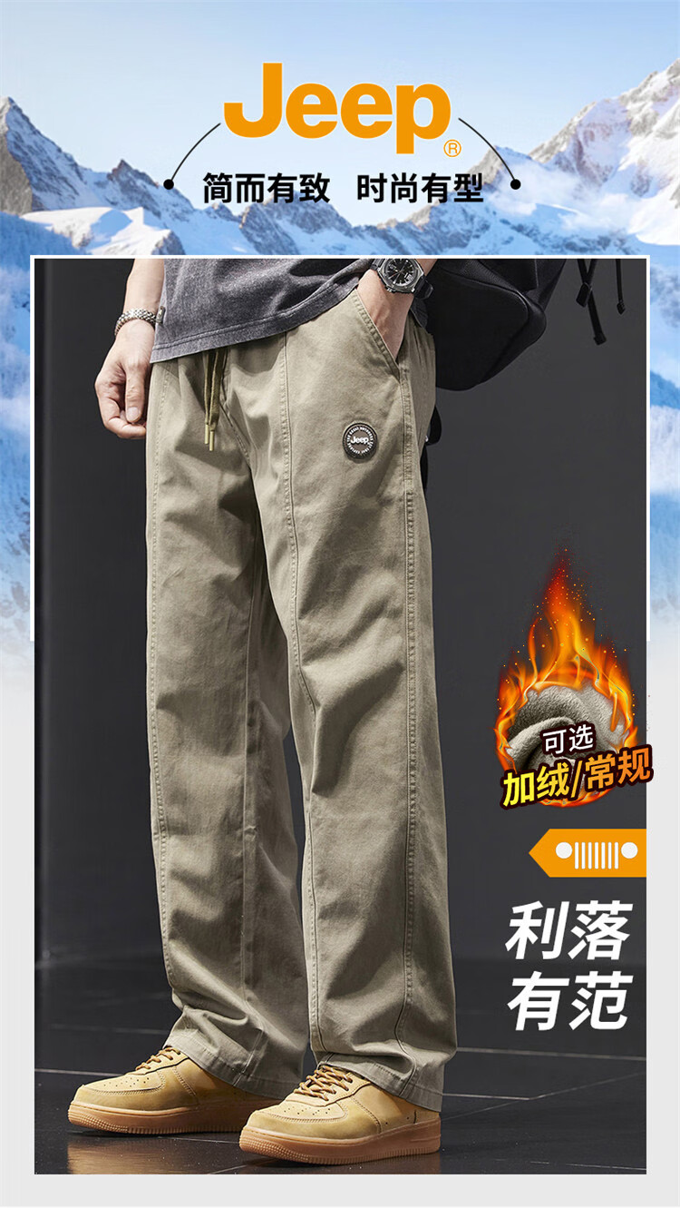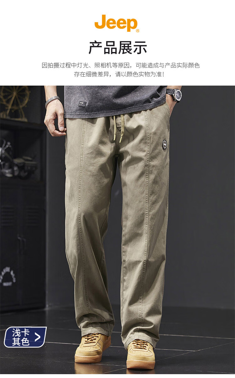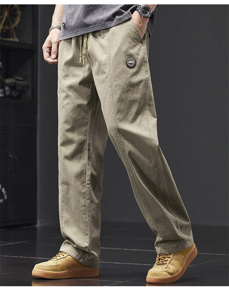 Jeep (JEEP) casual pants men's autumn and winter pure cotton loose straight pants men's overalls men's pants light khaki XL