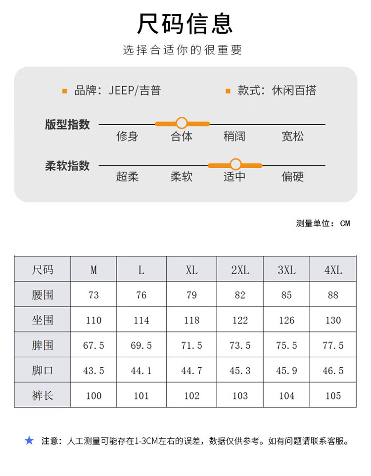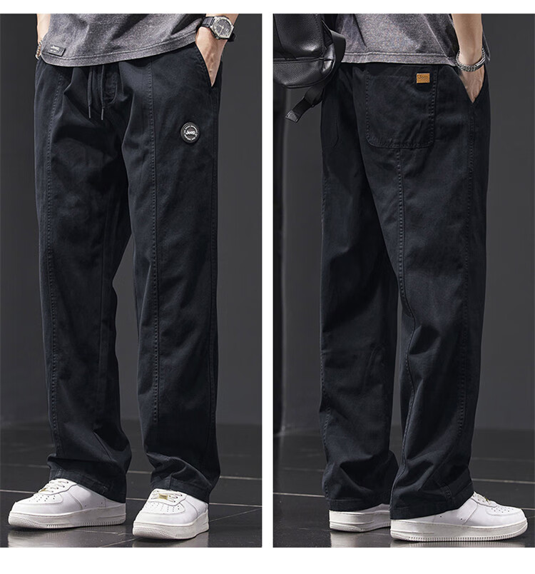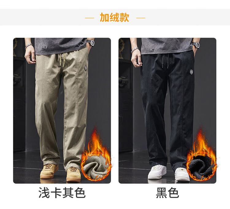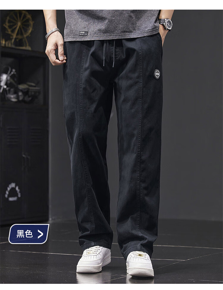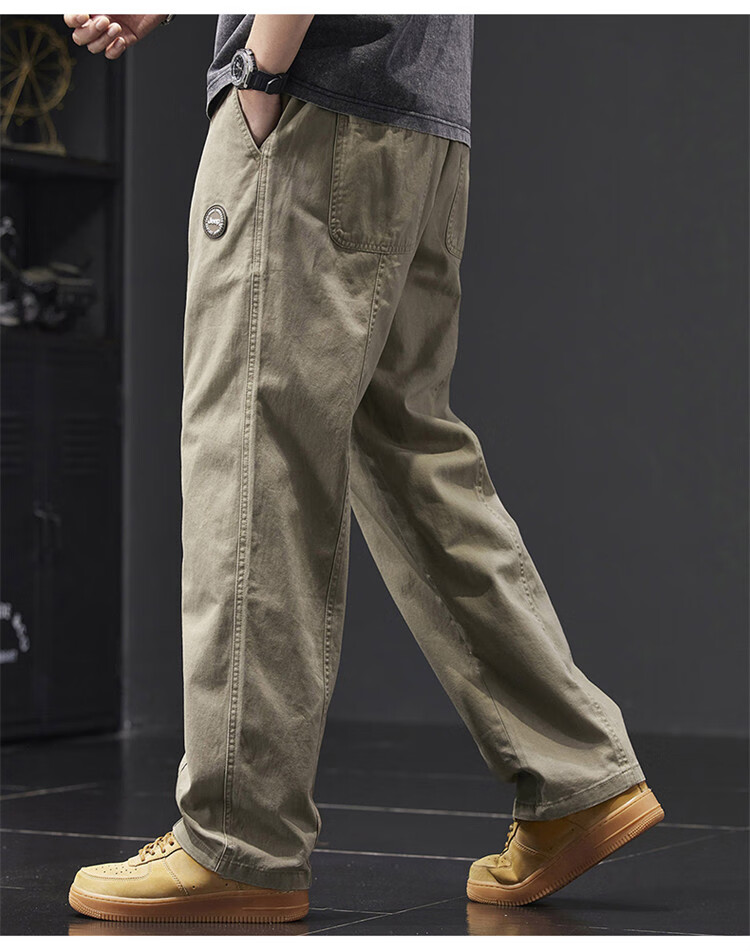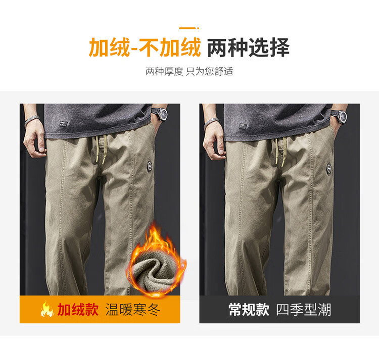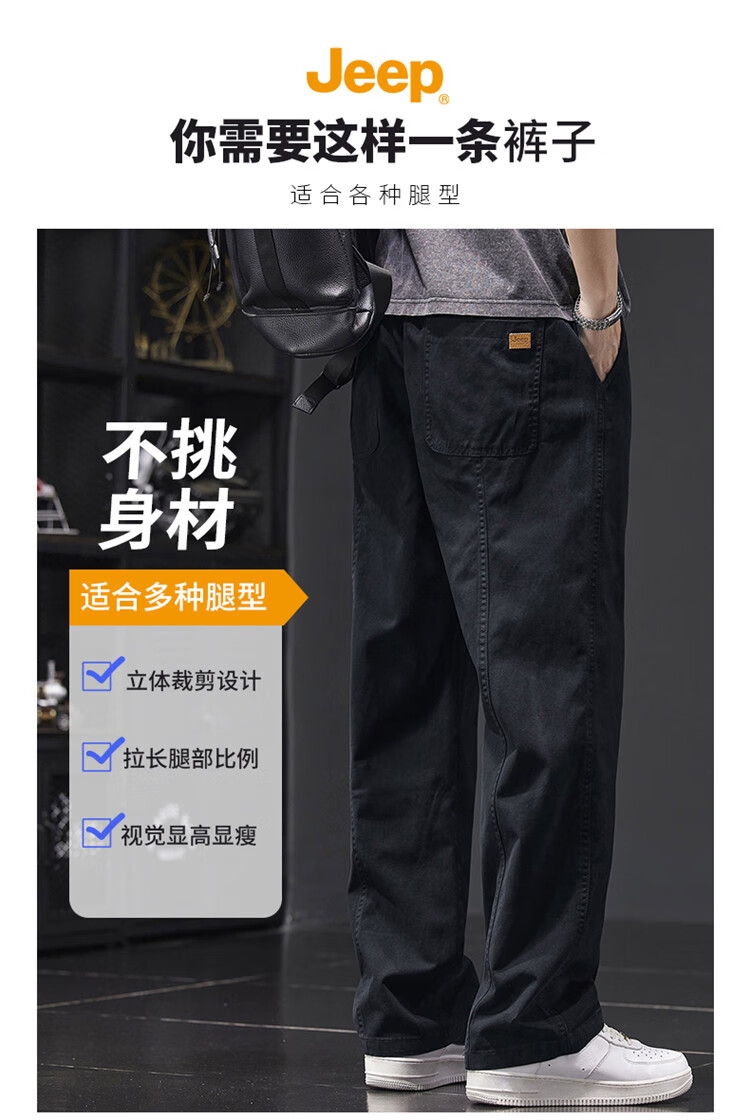 Jeep (JEEP) casual pants men's autumn and winter pure cotton loose straight pants men's overalls men's pants light khaki XL