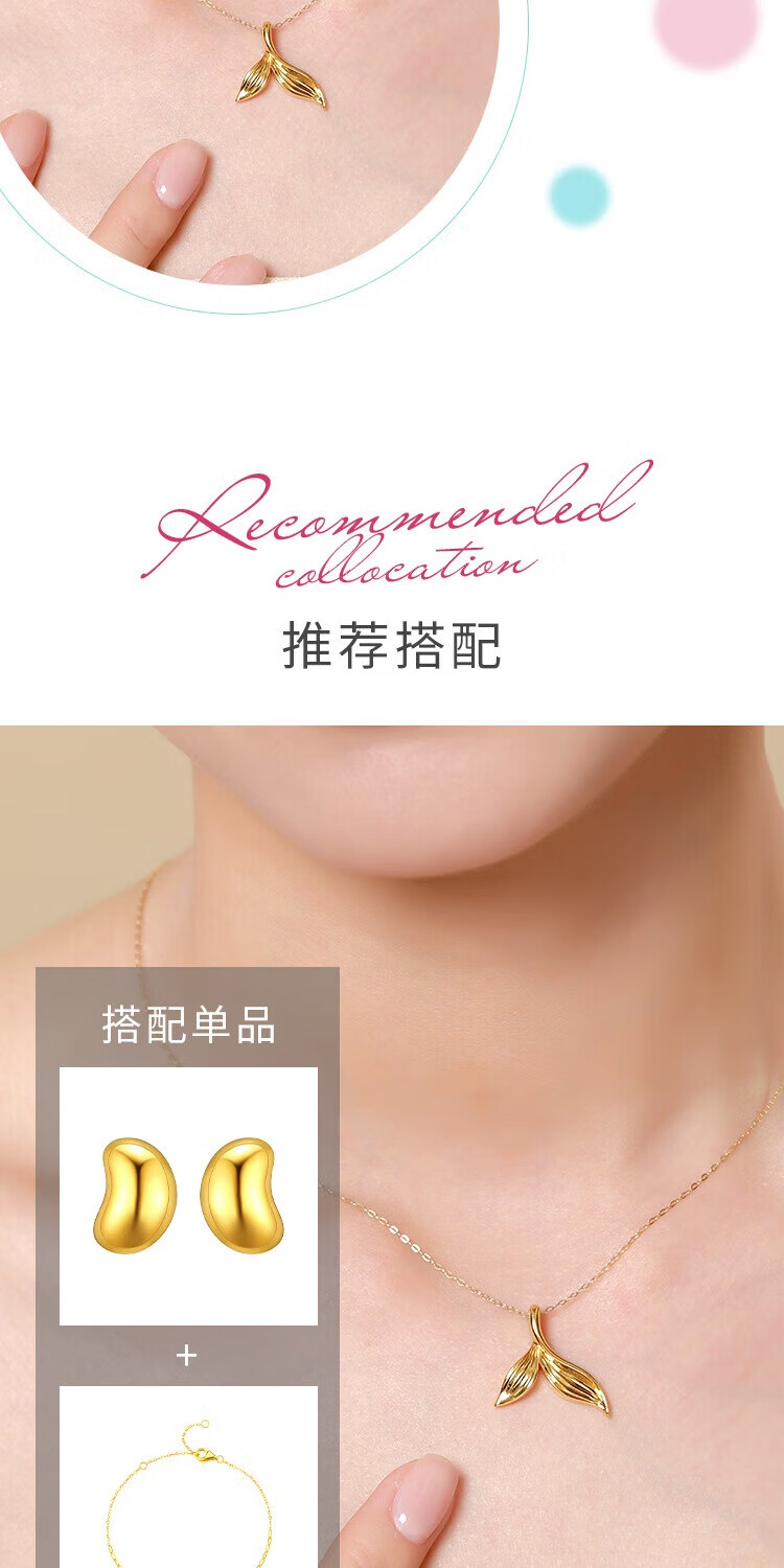 Chiba Jewelry 18k gold pendant, smart and romantic fishtail small fresh neck ornament, 3D craft holiday birthday gift for women