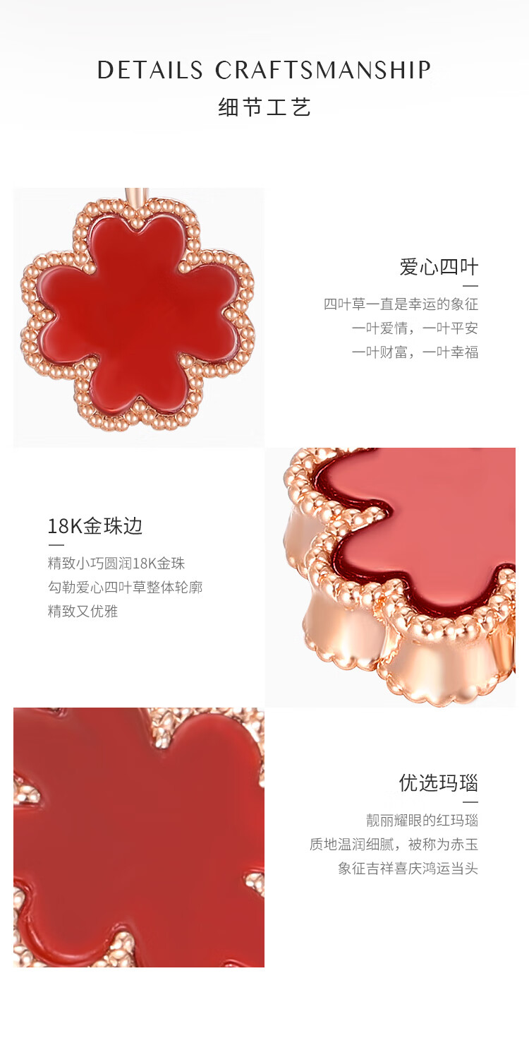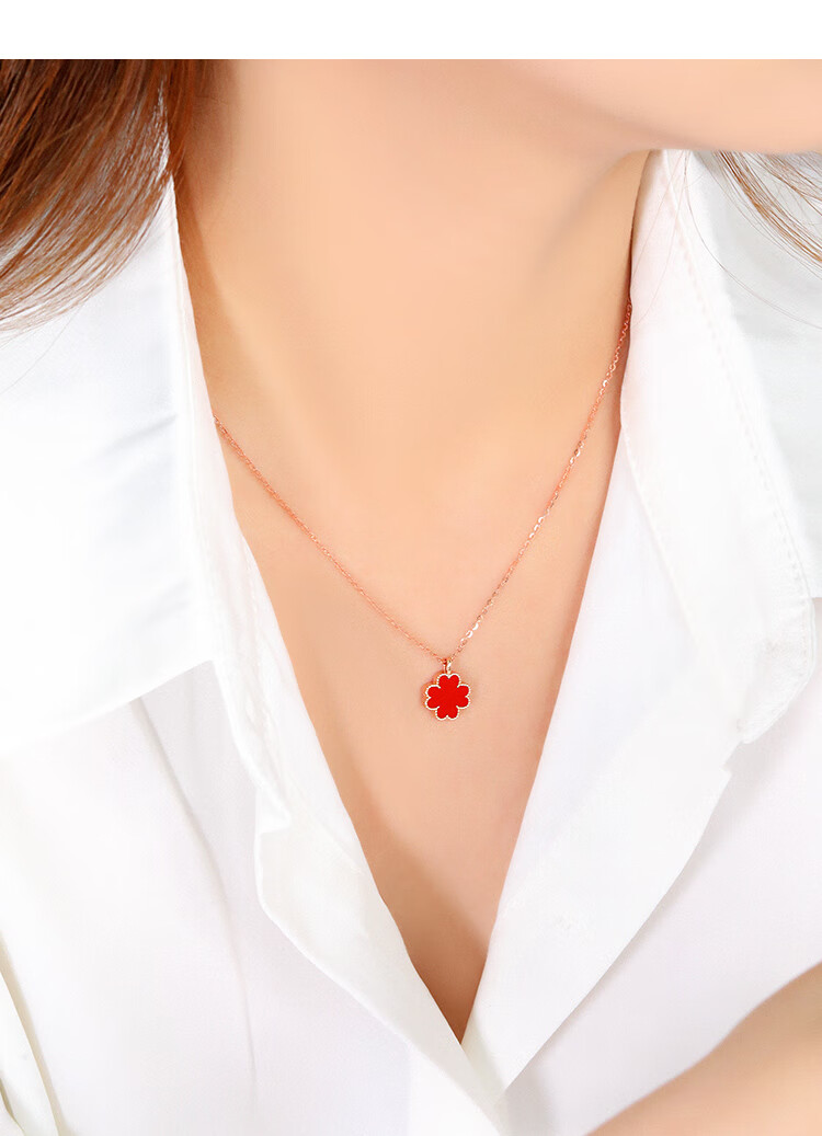 Chiba Jewelry 18k Gold Agate Pendant Love Words Lucky Love 3D Hard Gold Four-leaf Clover Neck Ornament for Girlfriend’s Birthday Gift