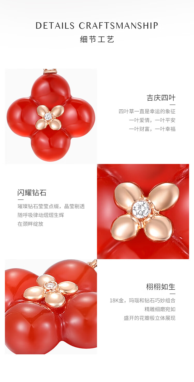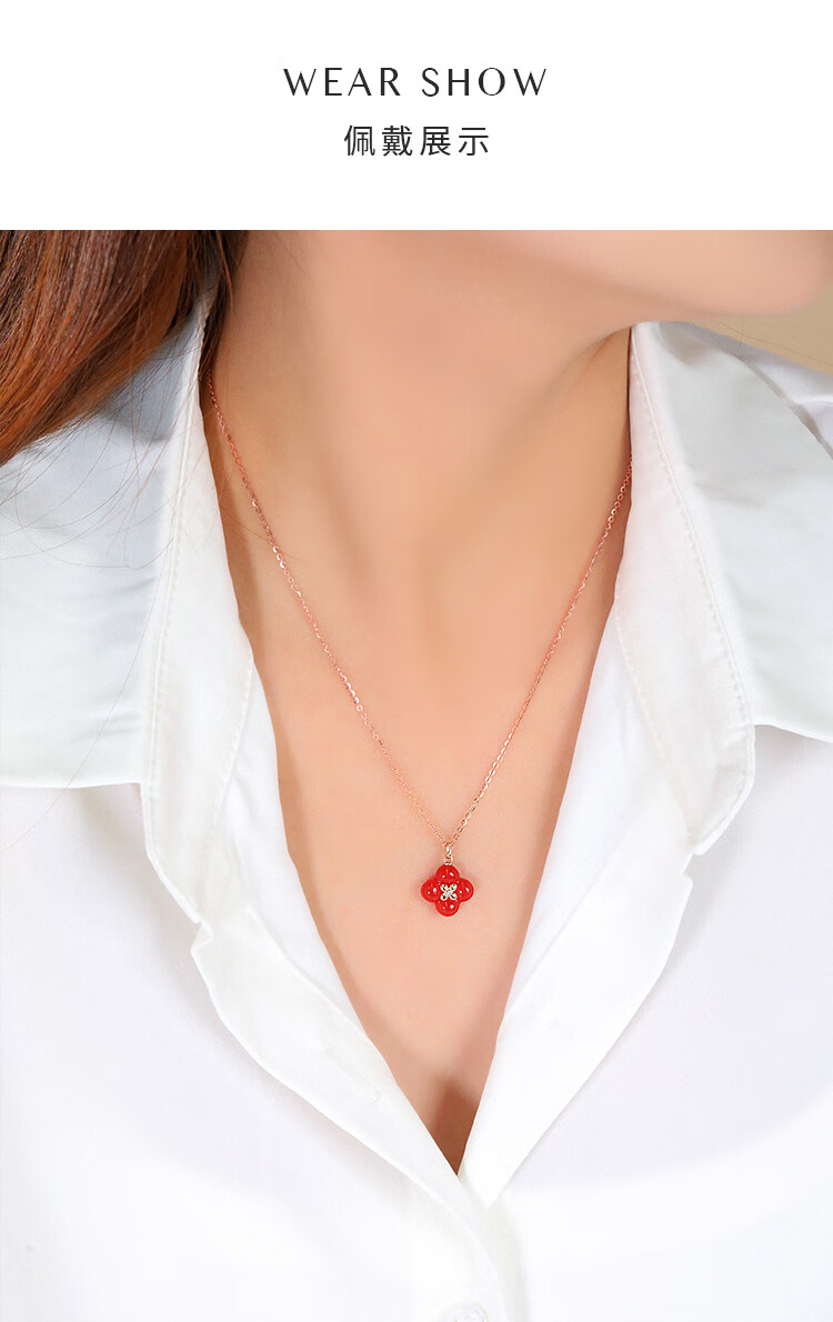 Chiba Jewelry 18k gold diamond agate pendant 3D hard gold four-leaf clover necklace birthday gift