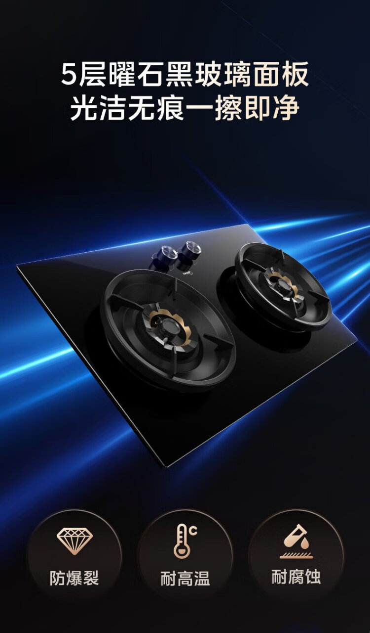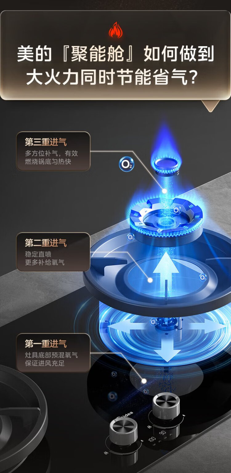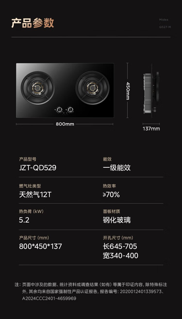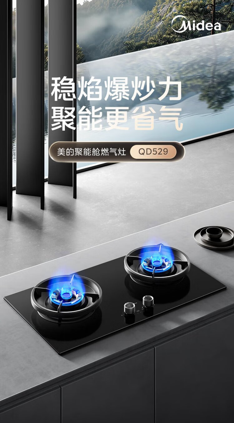 Midea combines the steam washing series with the industry's hottest household 5.2KW high-power gas stove, double-sided timed stove with built-in double-burner natural gas stove JZT-QD529