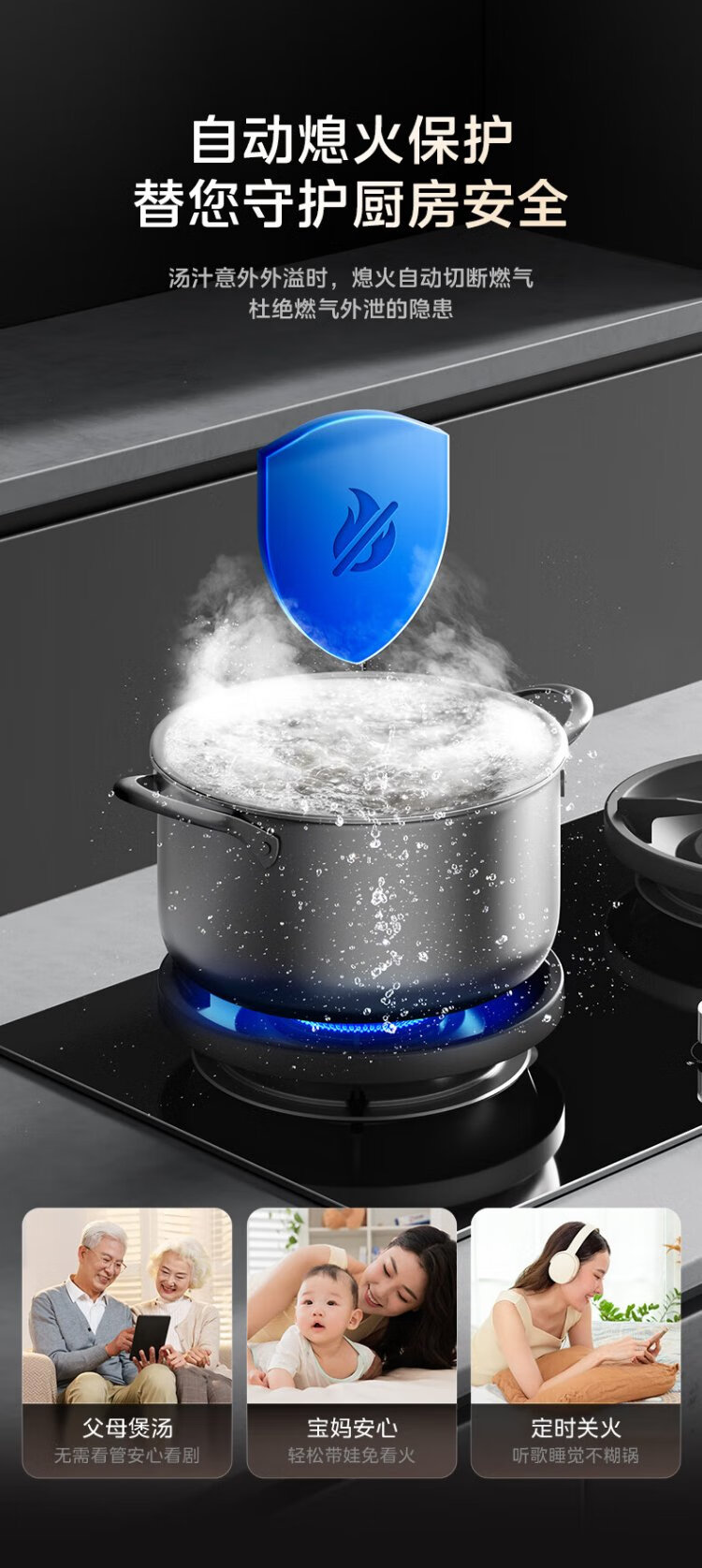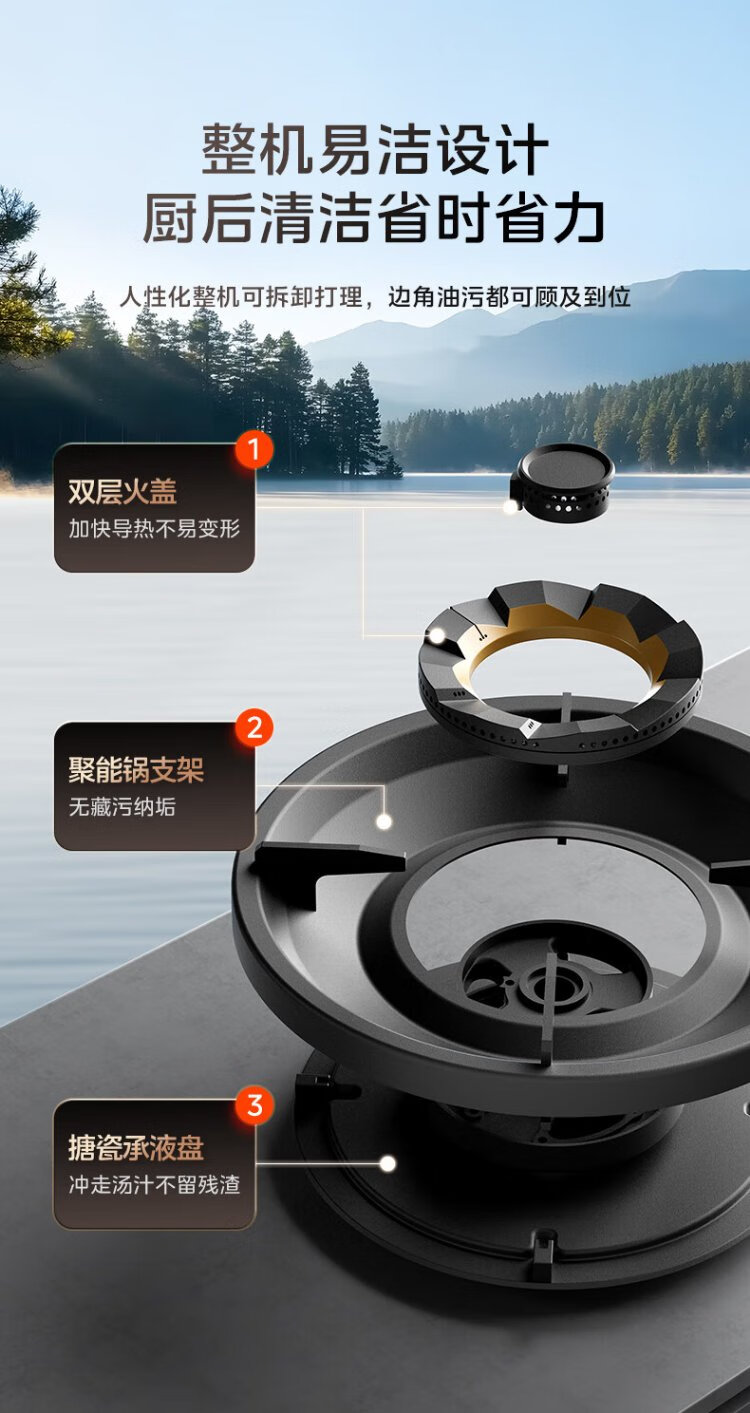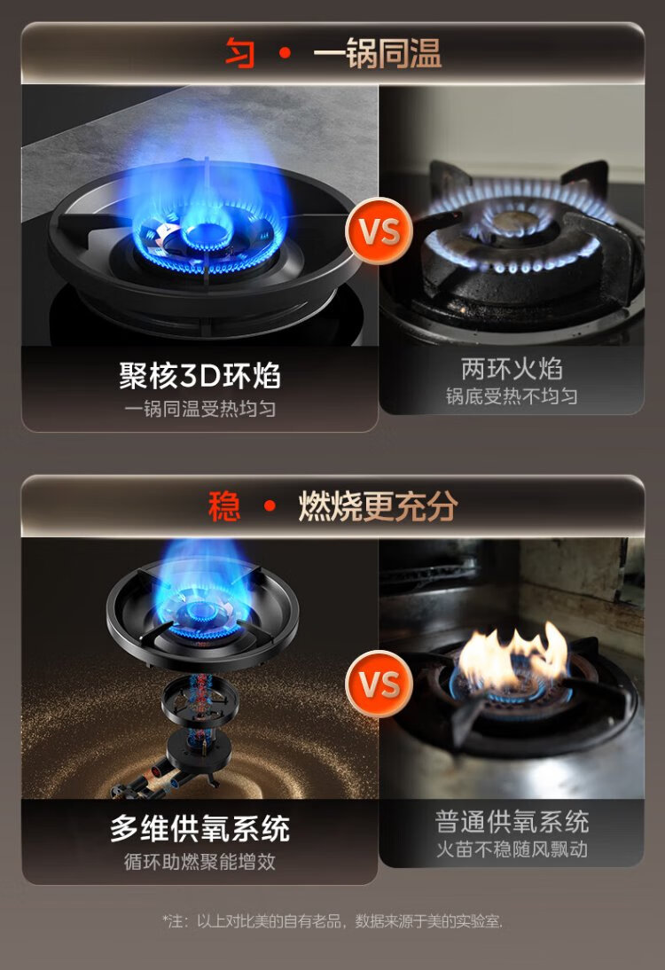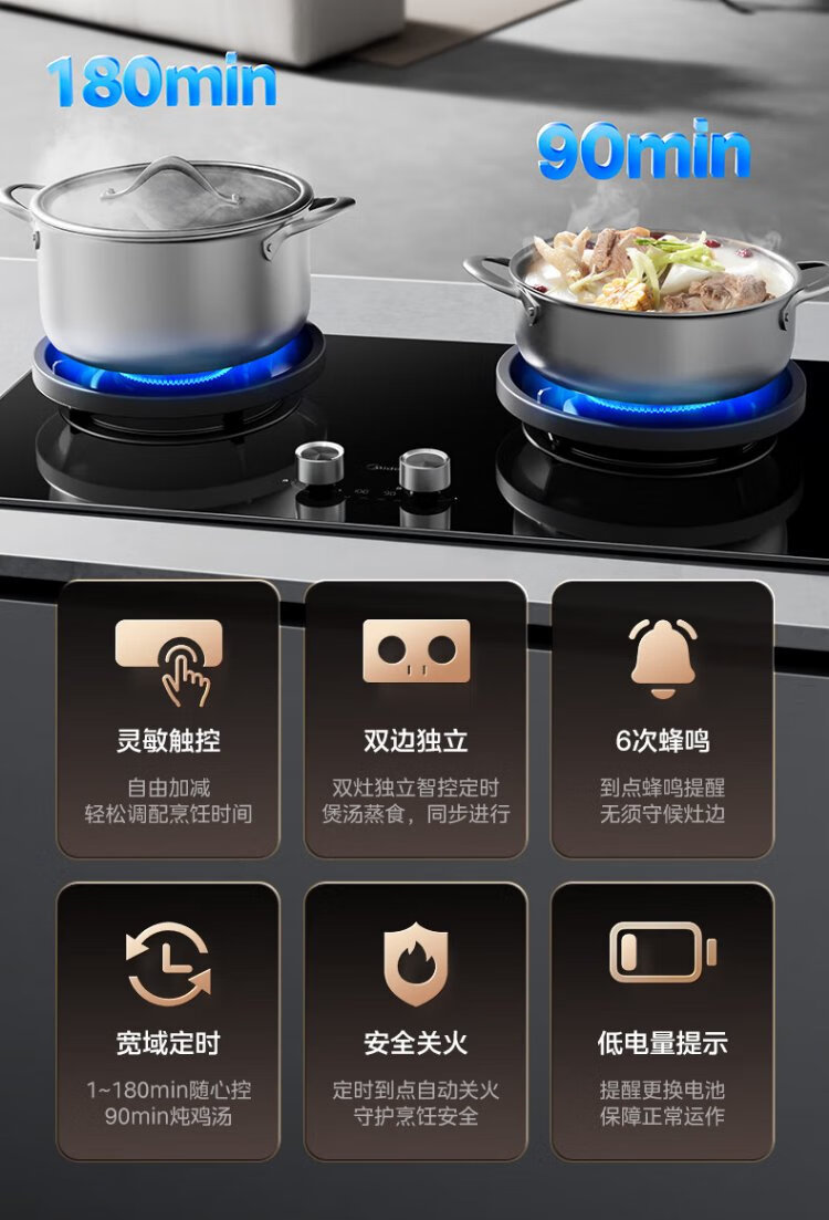 Midea combines the steam washing series with the industry's hottest household 5.2KW high-power gas stove, double-sided timed stove with built-in double-burner natural gas stove JZT-QD529