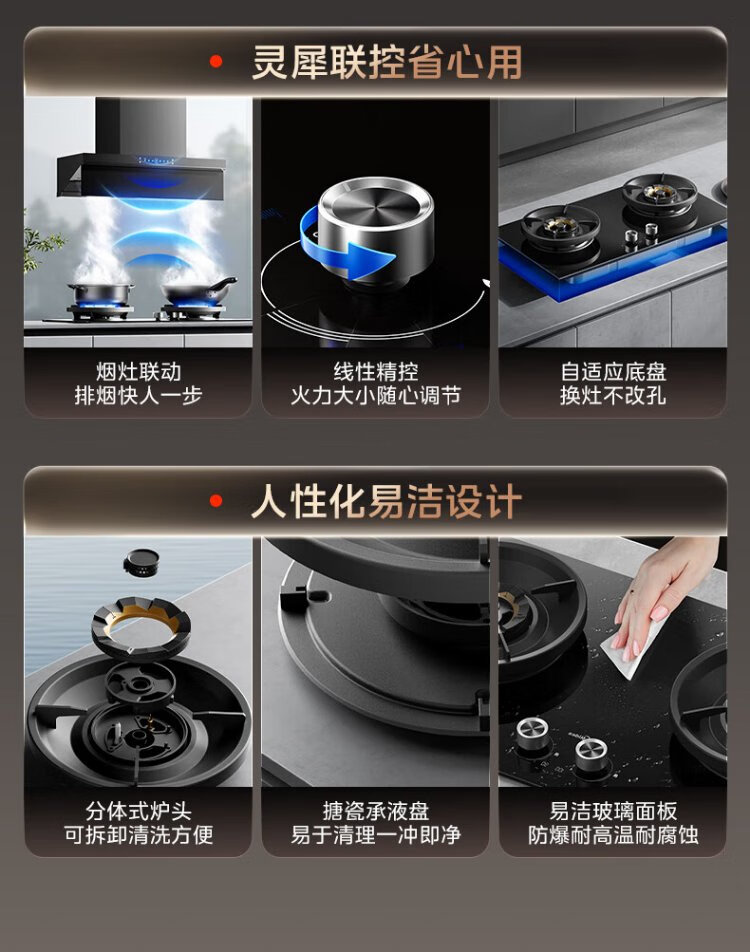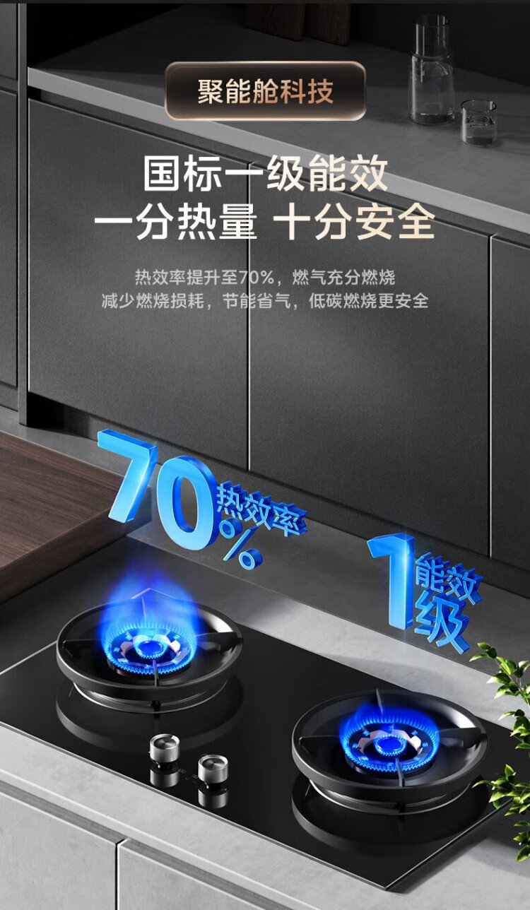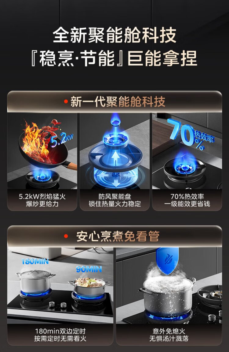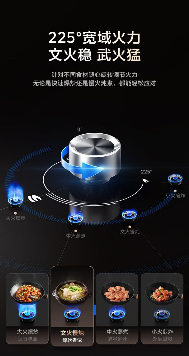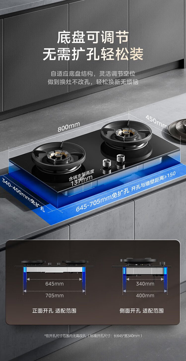 Midea combines the steam washing series with the industry's hottest household 5.2KW high-power gas stove, double-sided timed stove with built-in double-burner natural gas stove JZT-QD529