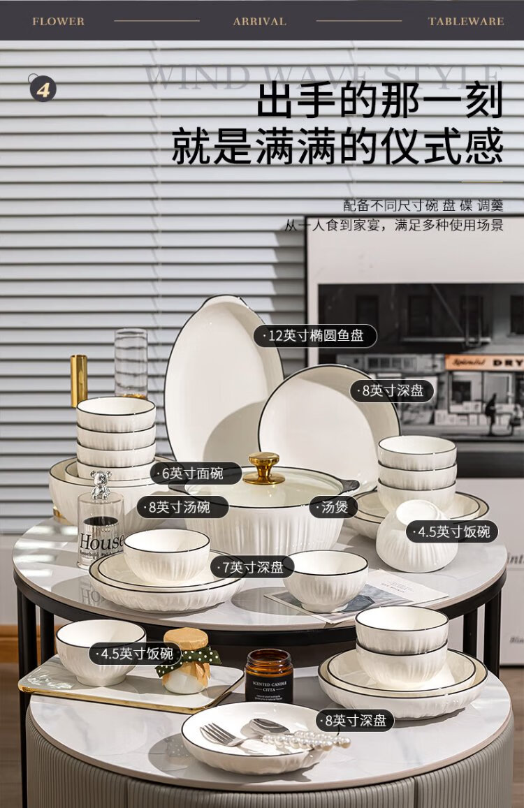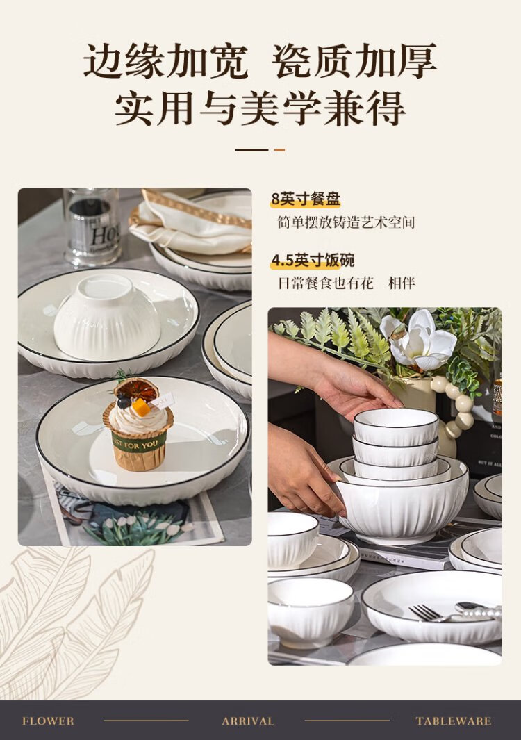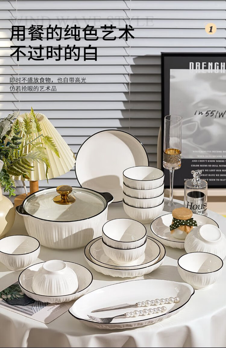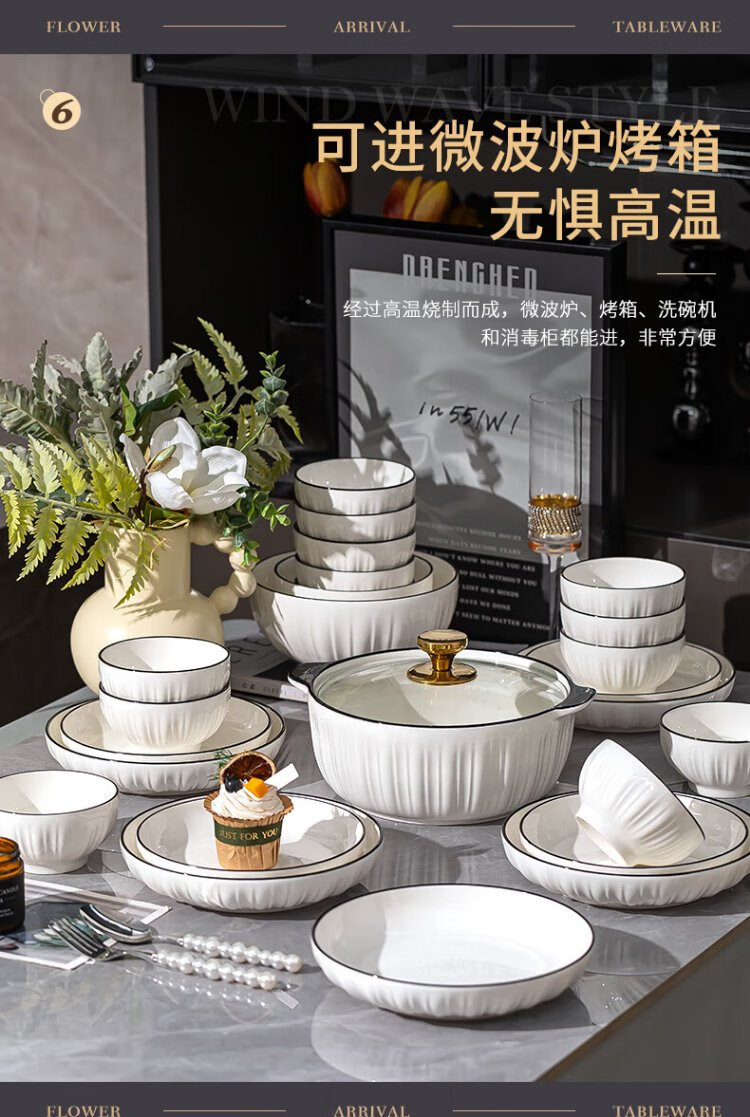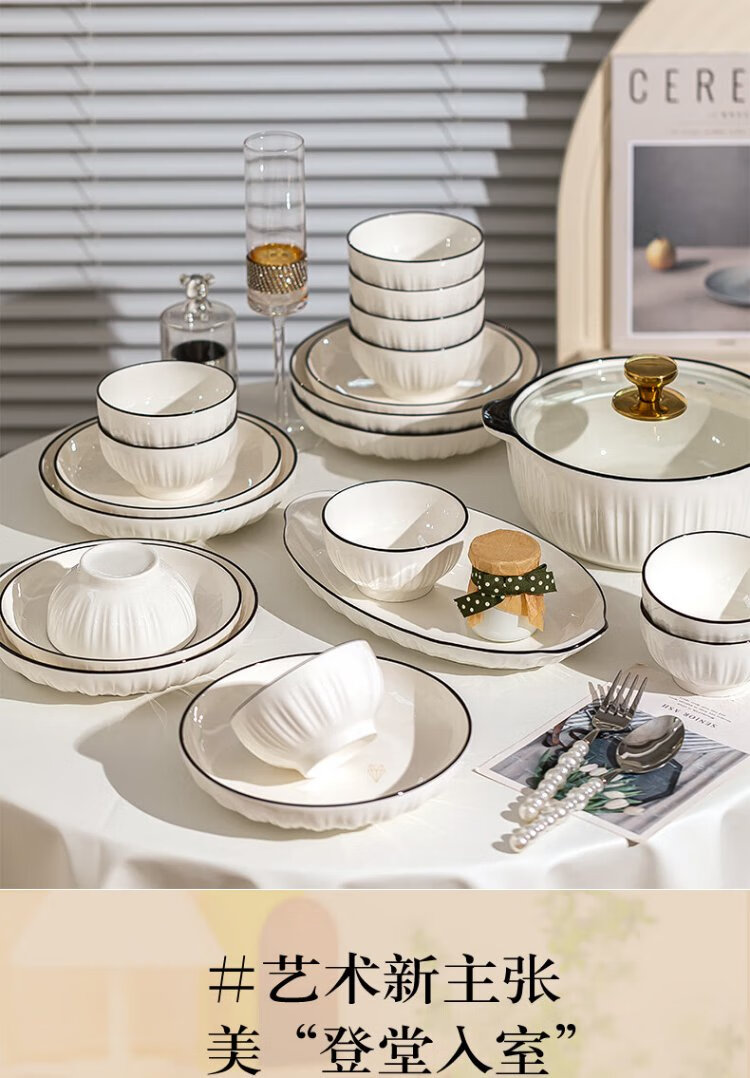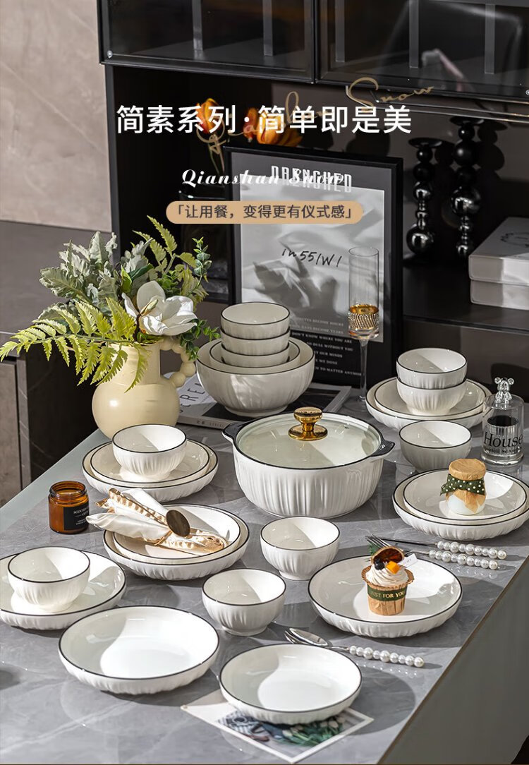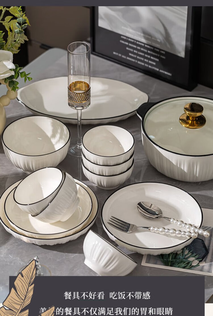 Complete set of kitchen tableware for home use Nordic style simple bowls and plates cutlery bowls and chopsticks as gifts, simple 20 pieces with soup bowl
