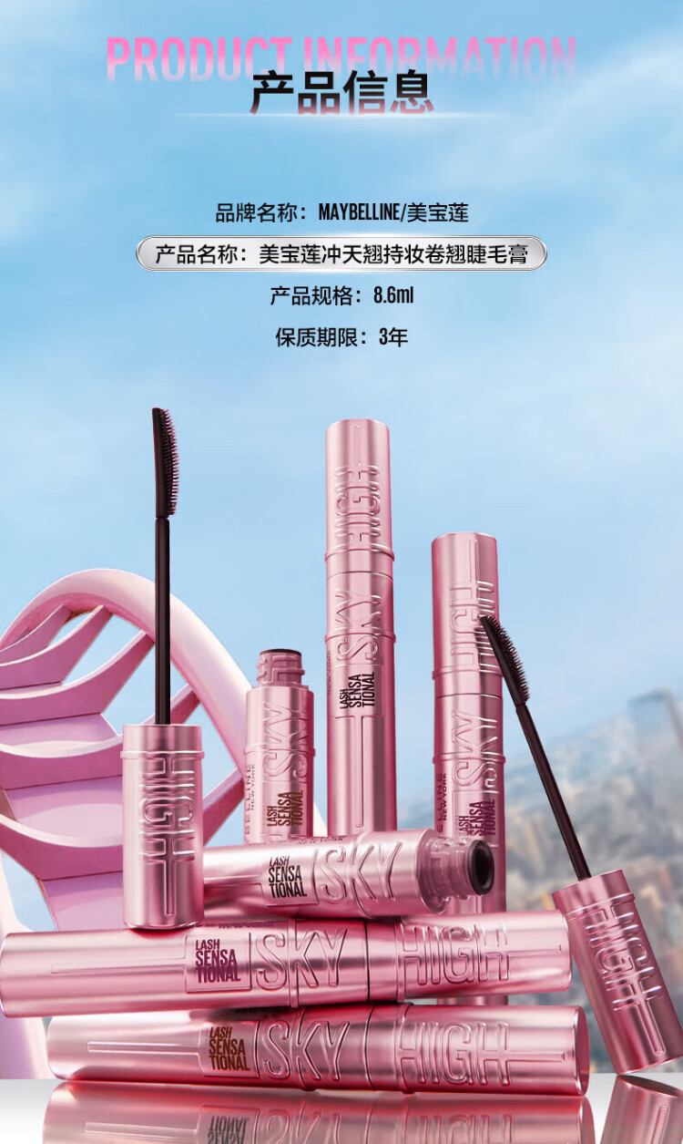 Maybelline Soaring Long-Lasting Curling Mascara Classic Black 8.6ml Long-lasting Natural Birthday Gift for Girlfriend