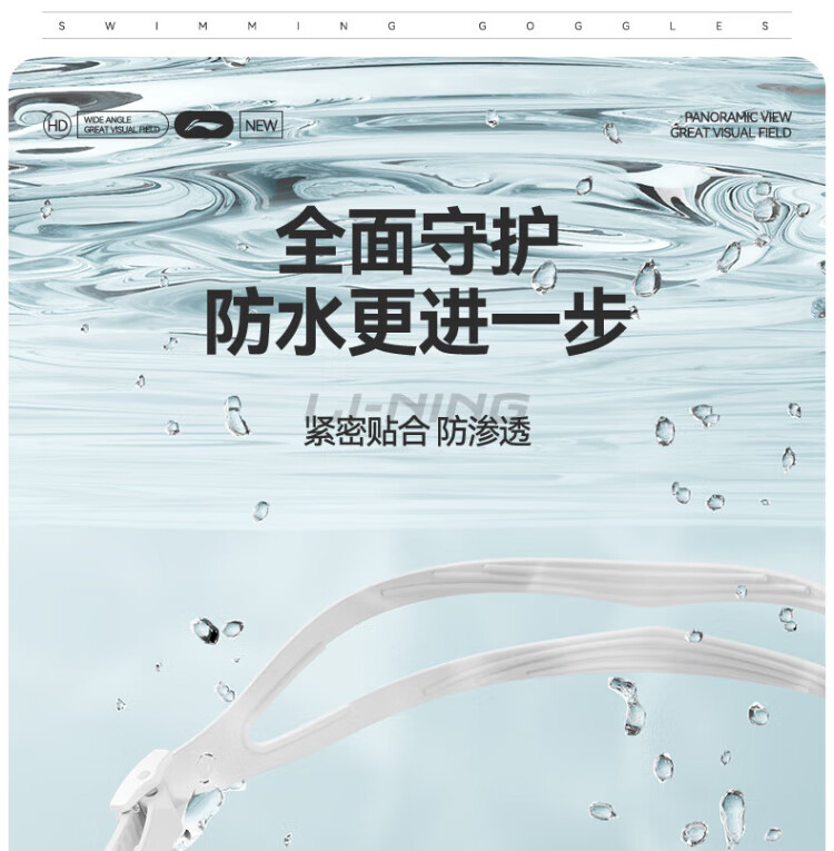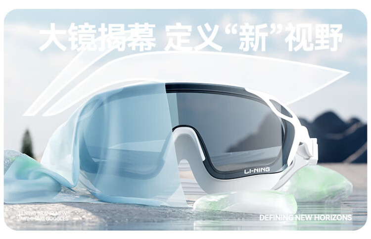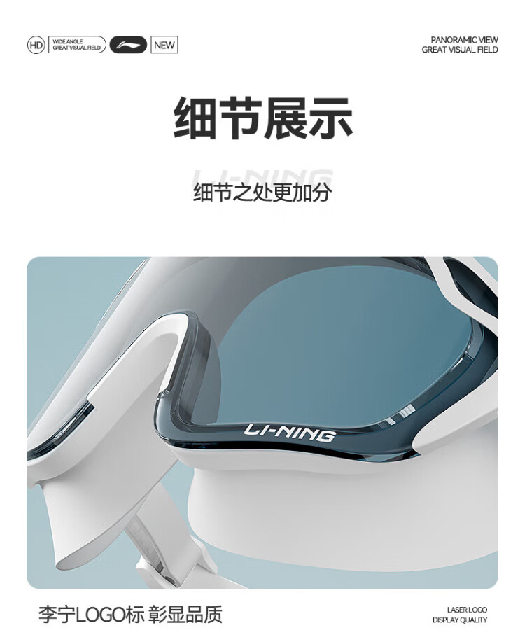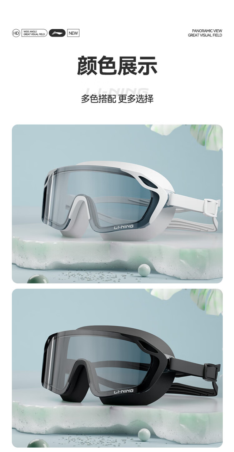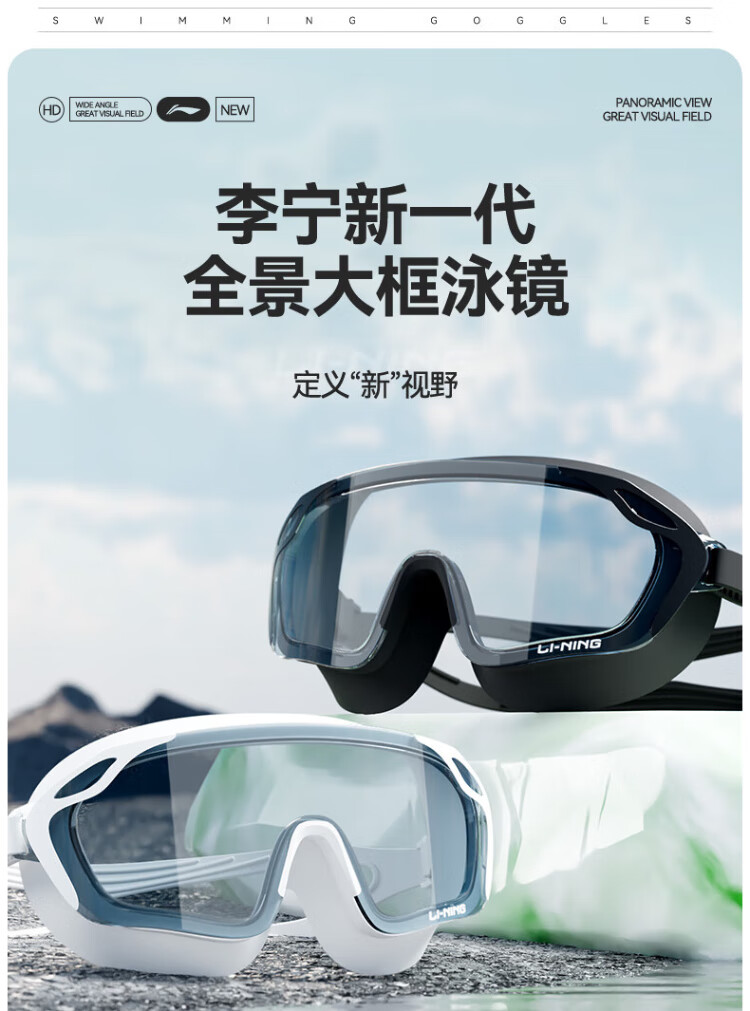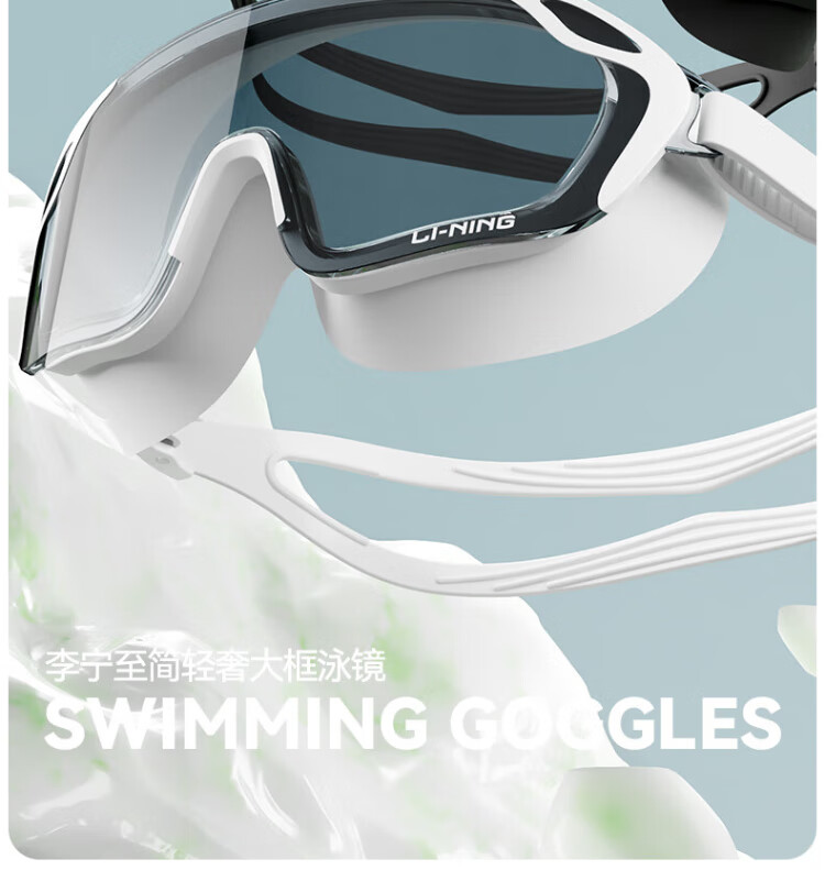 Li Ning (LI-NING) swimming goggles HD waterproof anti-fog large frame swimming goggles adult unisex fashionable diving goggles 2062 white