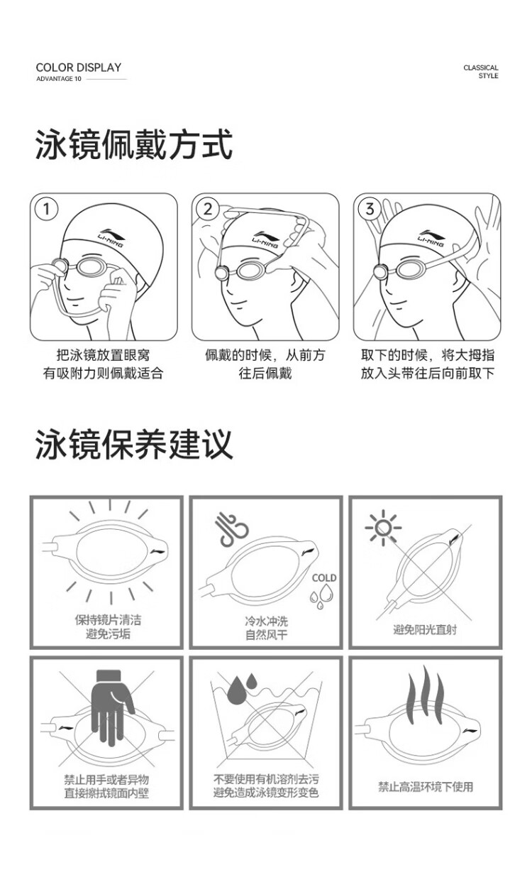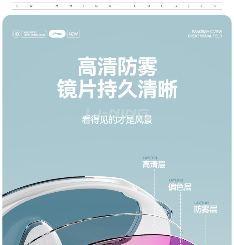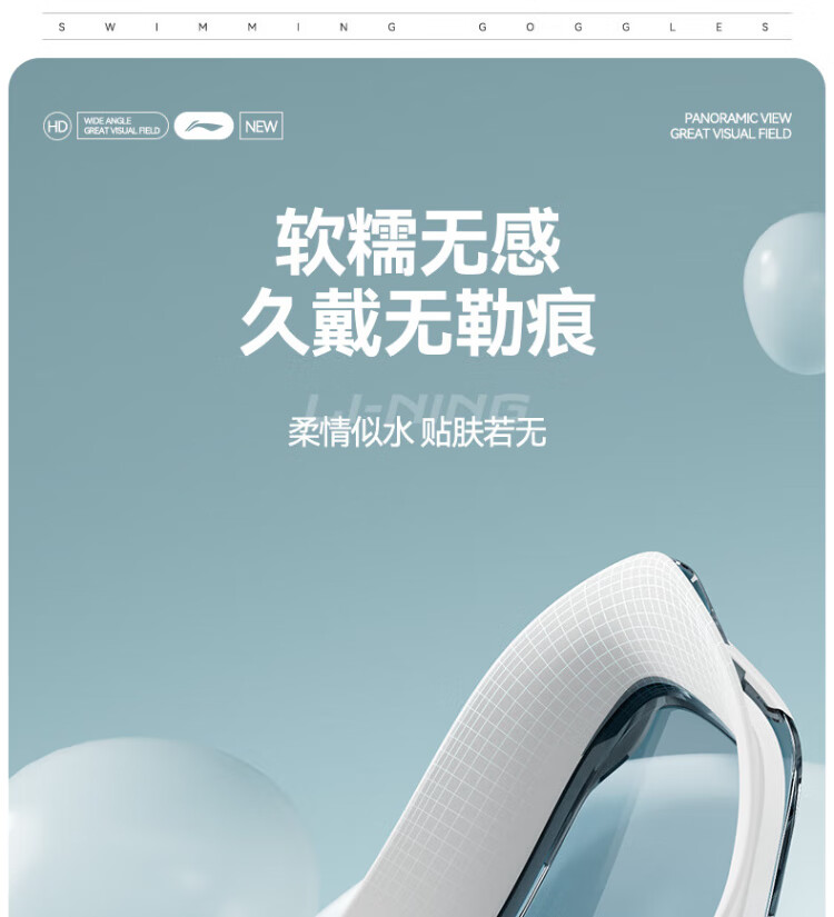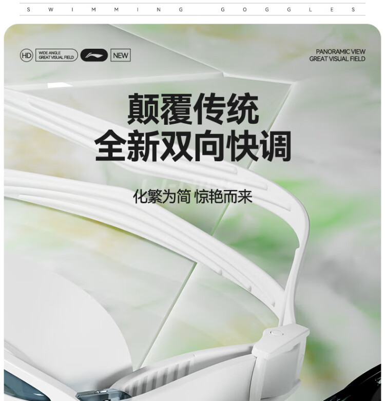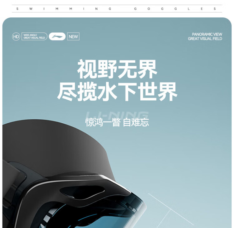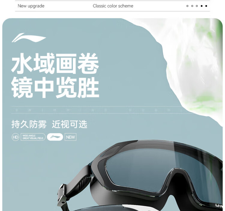 Li Ning (LI-NING) swimming goggles HD waterproof anti-fog large frame swimming goggles adult unisex fashionable diving goggles 2062 white