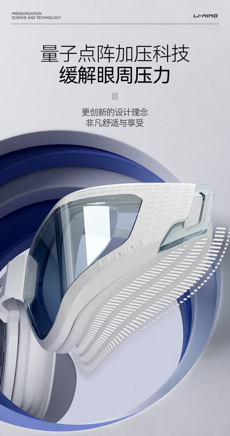 Li Ning (LI-NING) waterproof and anti-fog swimming goggles for men, high-definition swimming goggles, professional training women's swimming goggles 2074 gray blue