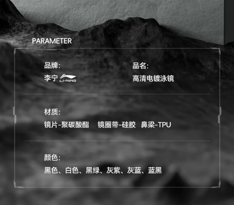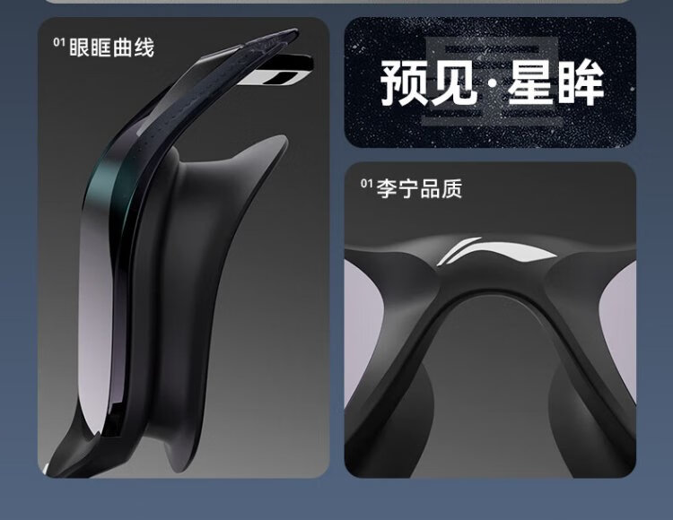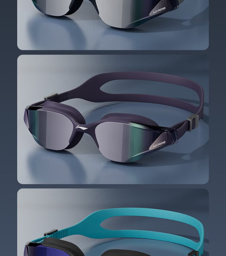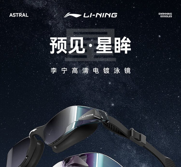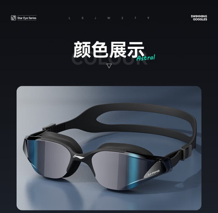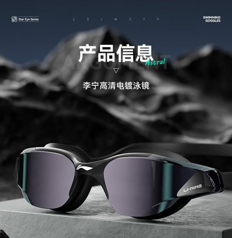 李宁(LI-NING)泳镜男女士时尚舒适镀膜游泳镜高清防水防雾游泳眼镜2795黑