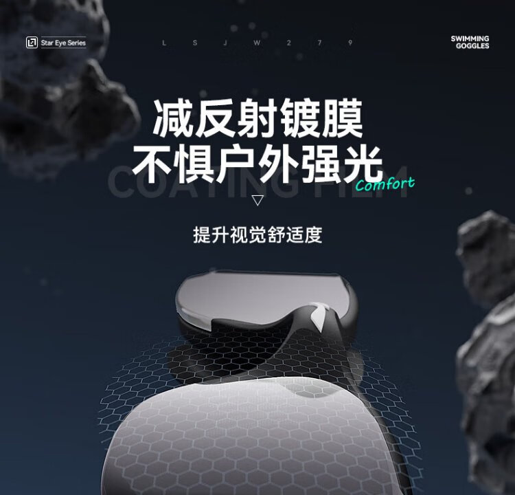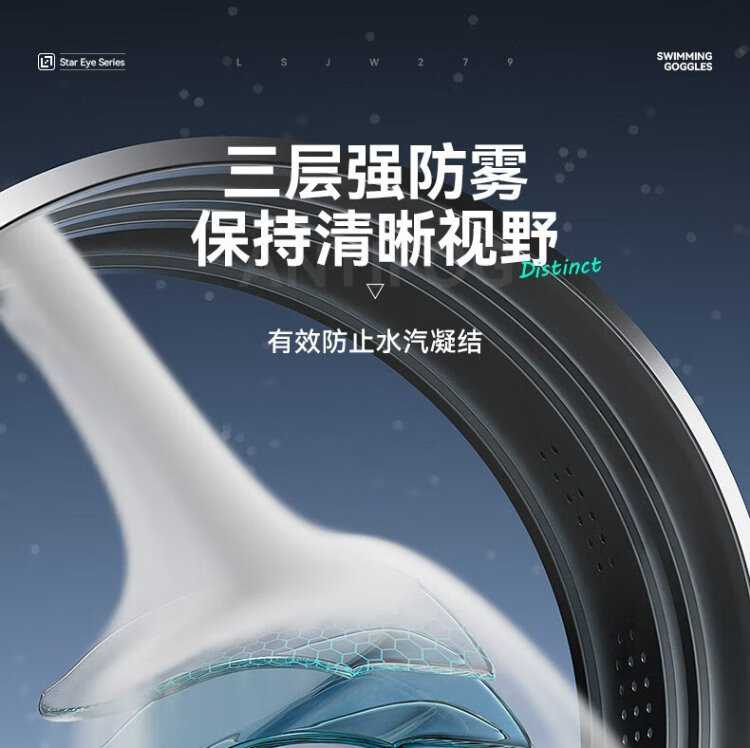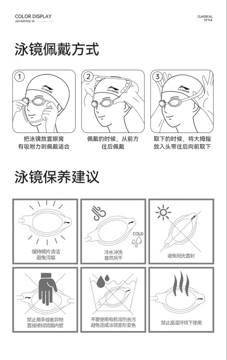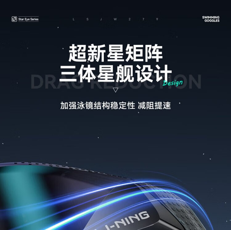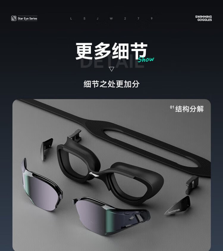 李宁(LI-NING)泳镜男女士时尚舒适镀膜游泳镜高清防水防雾游泳眼镜2795黑