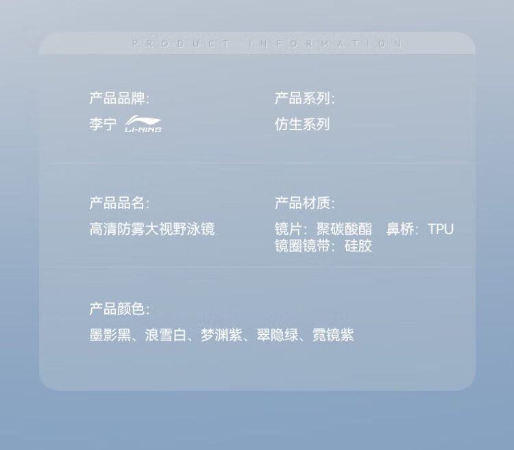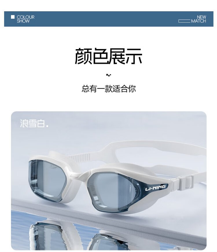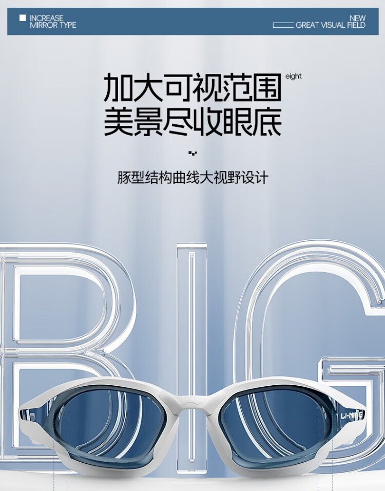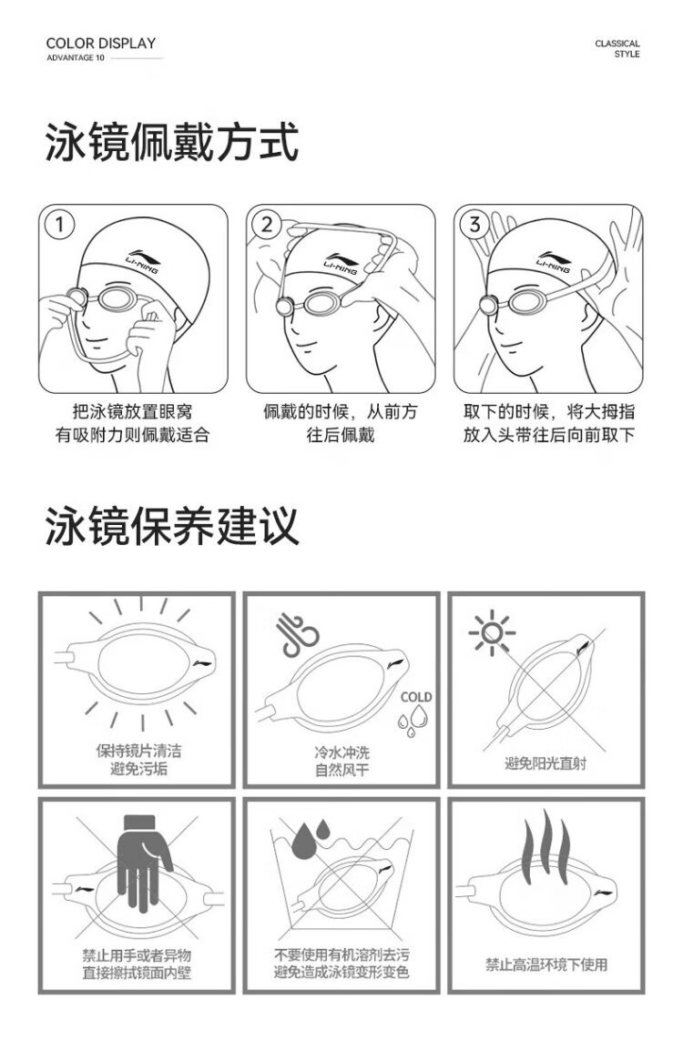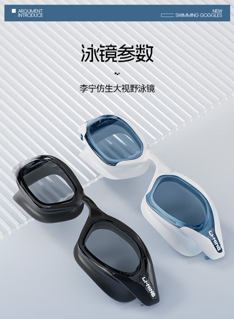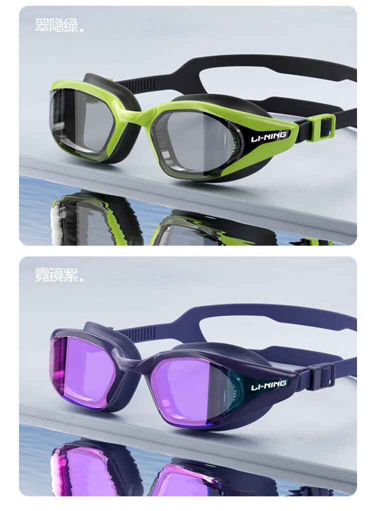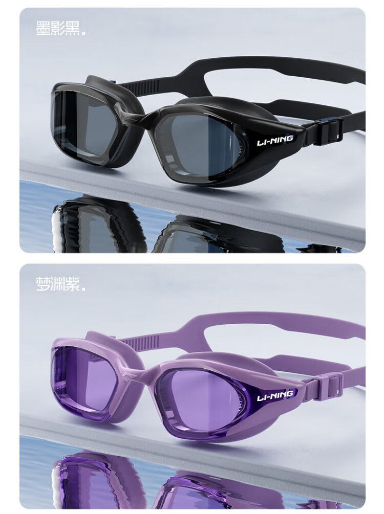 Li Ning (LI-NING) waterproof and anti-fog swimming goggles for men and women, high-definition swimming goggles, professional training flat swimming goggles 2802 black