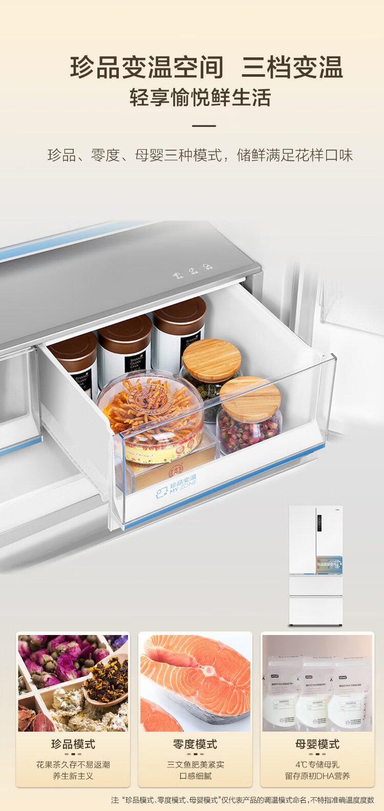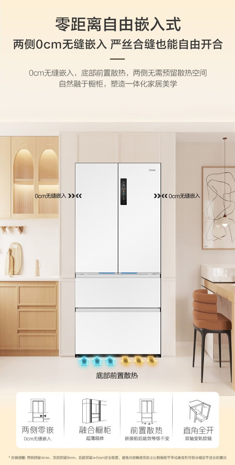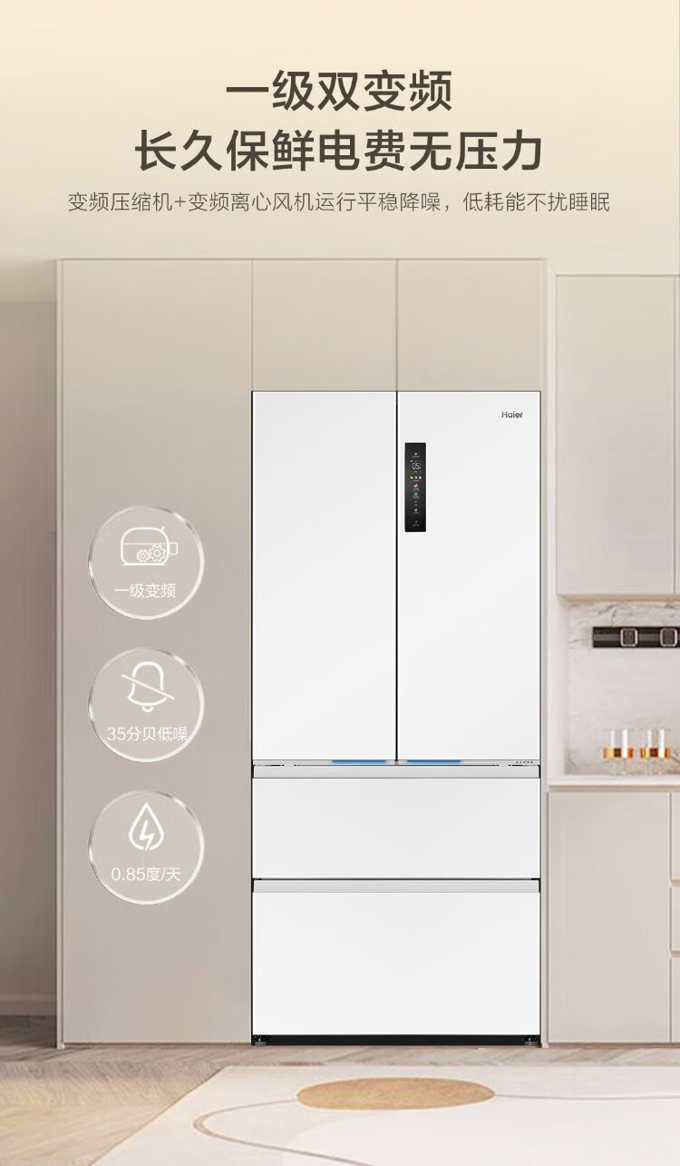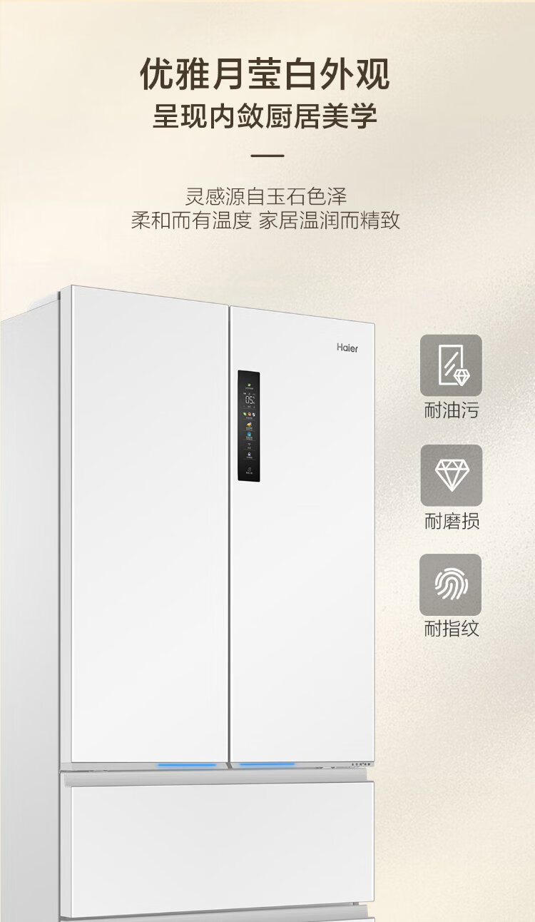 Haier Xiaohonghua series 503L French-style multi-door refrigerator full-space fresh-keeping zero-embedded first-level energy efficiency air-cooled BCD-503WGHFD14GYU1 (white) national subsidy