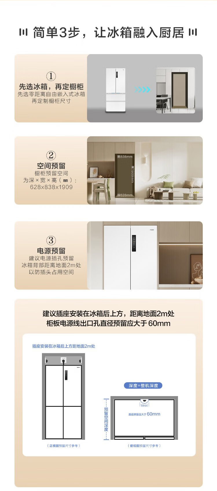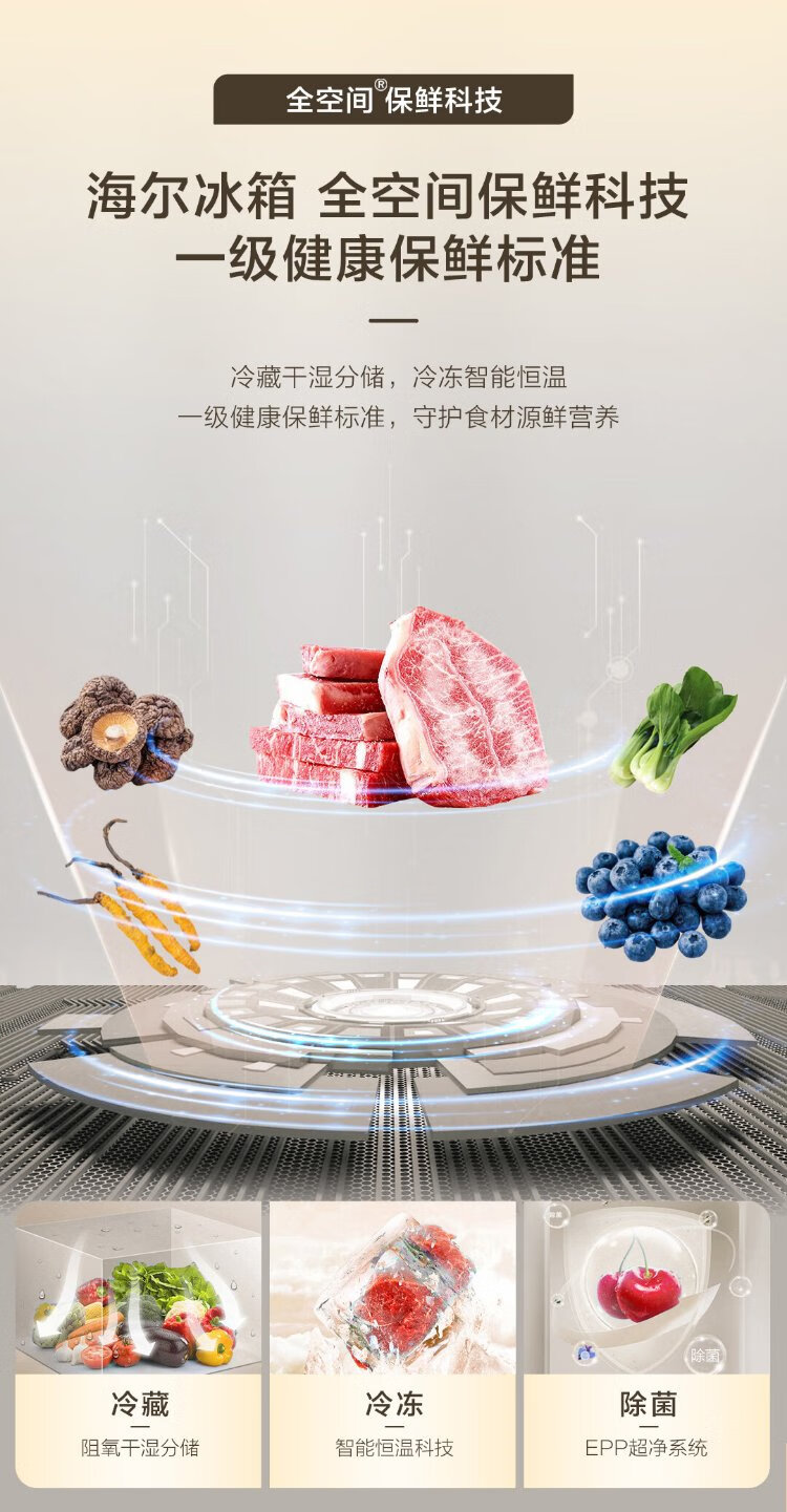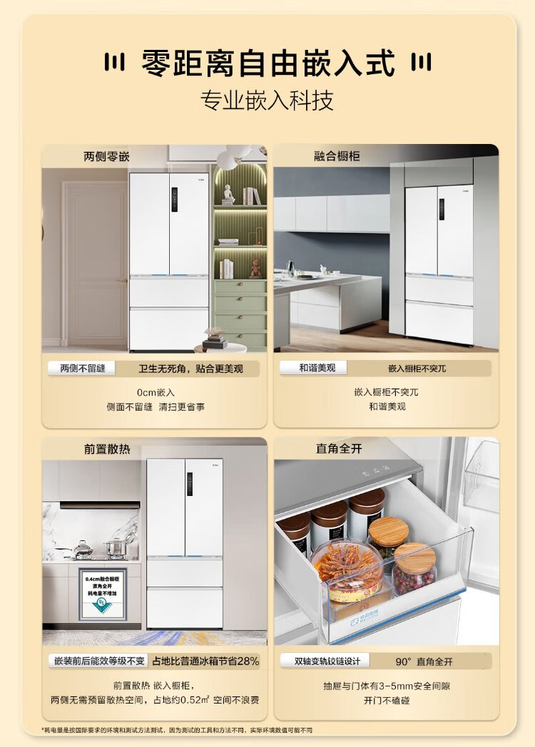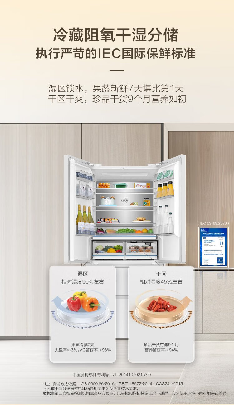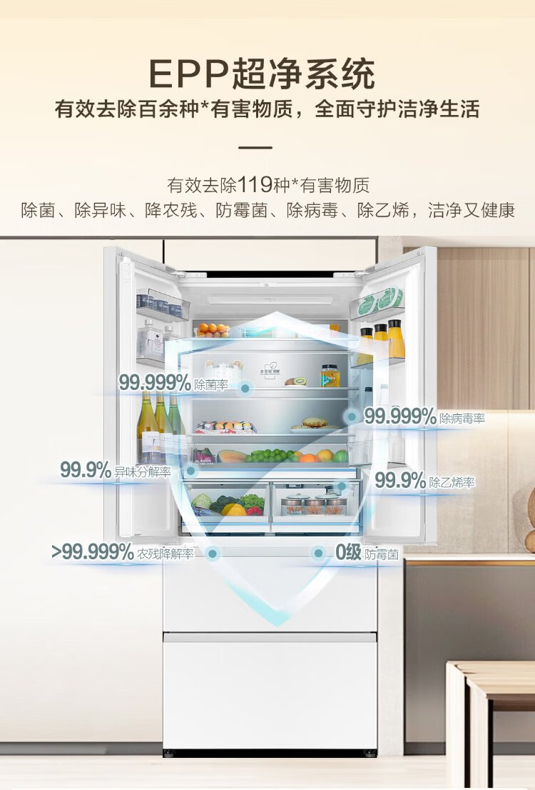 Haier Xiaohonghua series 503L French-style multi-door refrigerator full-space fresh-keeping zero-embedded first-level energy efficiency air-cooled BCD-503WGHFD14GYU1 (white) national subsidy