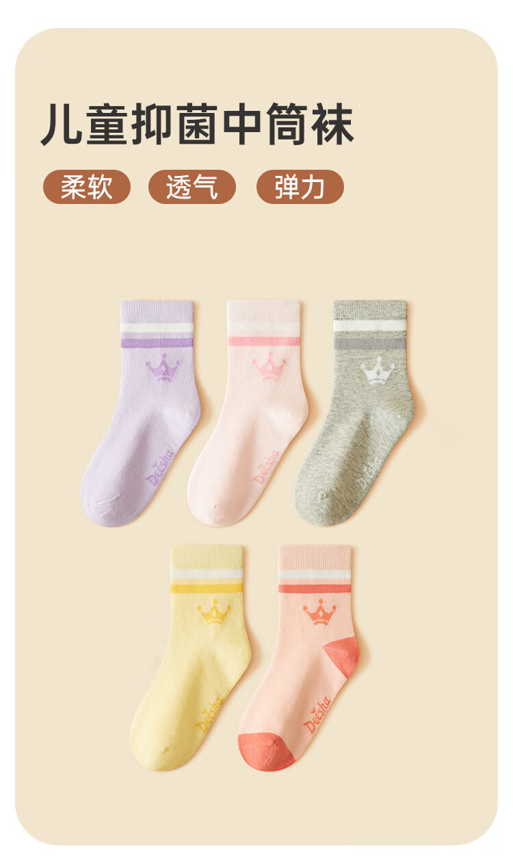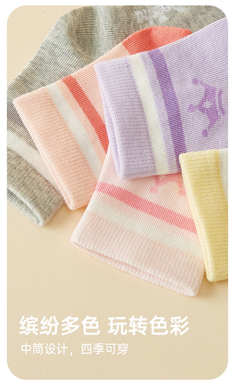 DEESHA 7A Antibacterial Five Pairs Girls' Cotton Socks All Seasons Boneless and Feet-Free Baby Cotton Socks Soft, Breathable and Anti-pilling