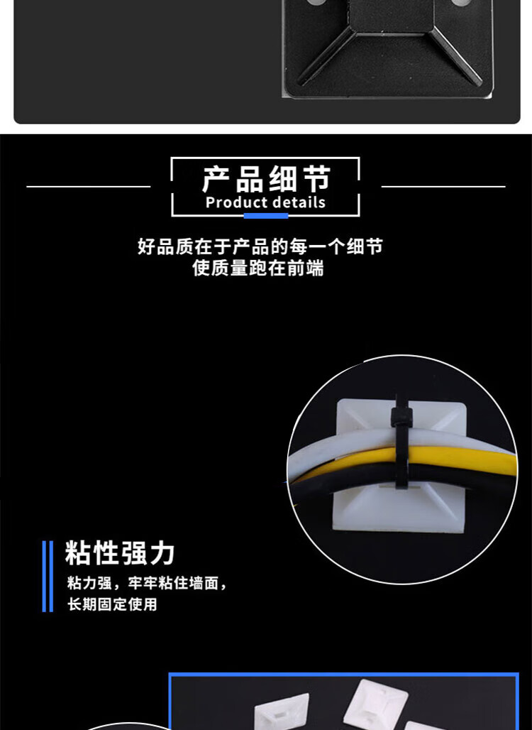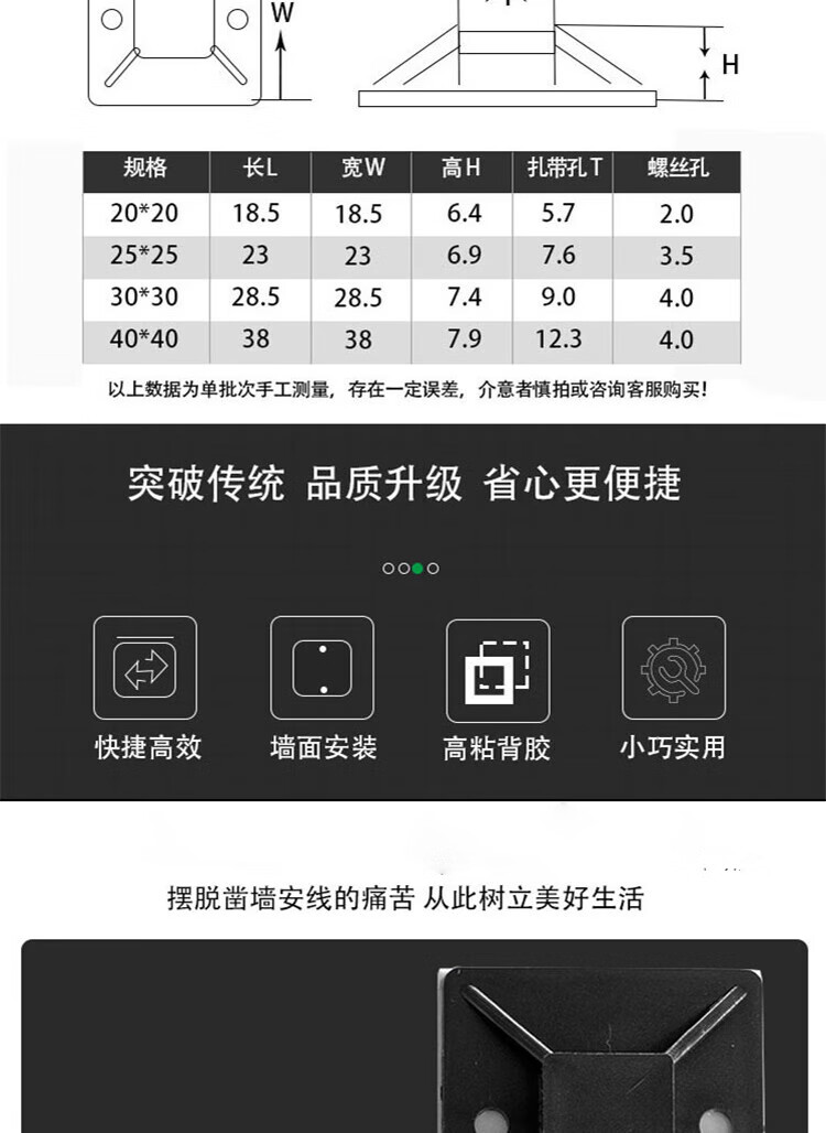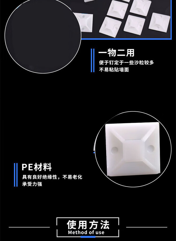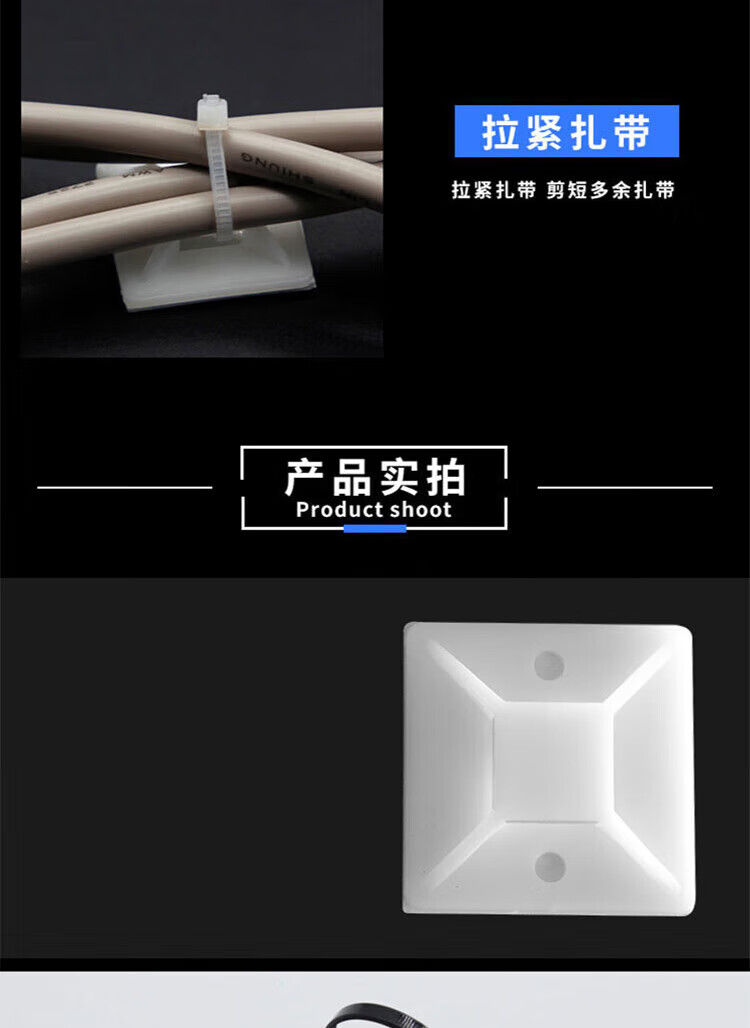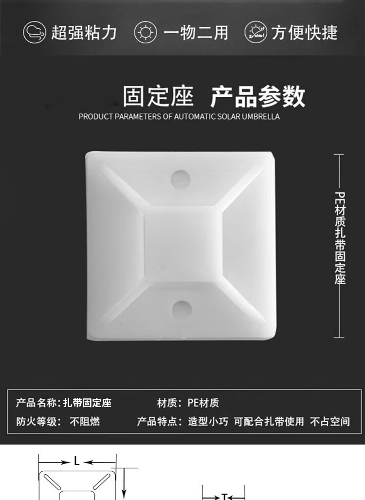 玛仕福 粘贴式吸盘固定座 扎带定位贴 电线固定器 塑料卡扣定位片 白色100个/包 20*20mm