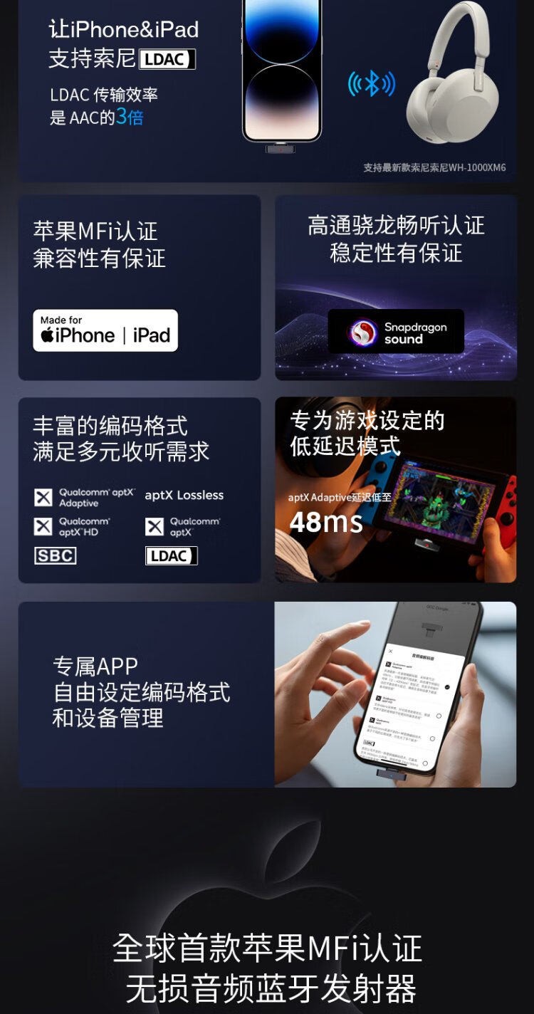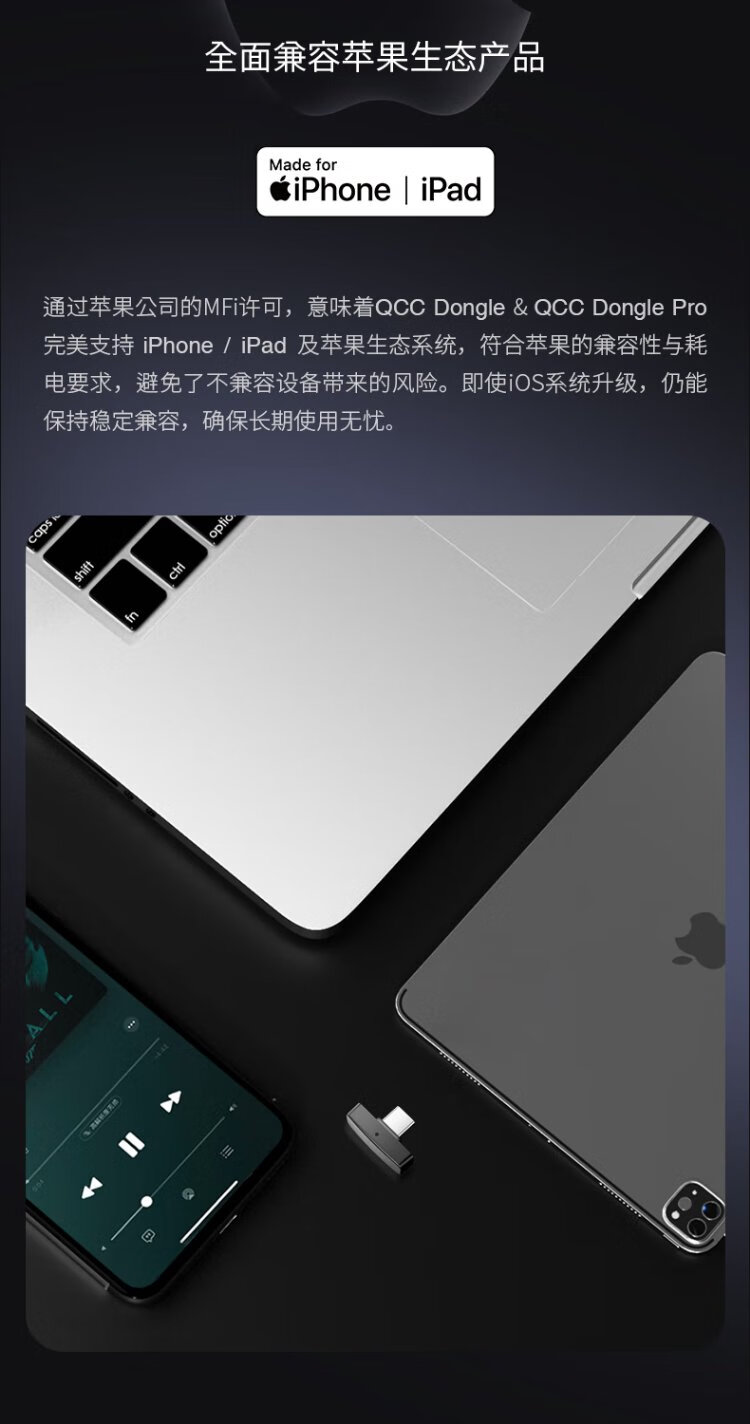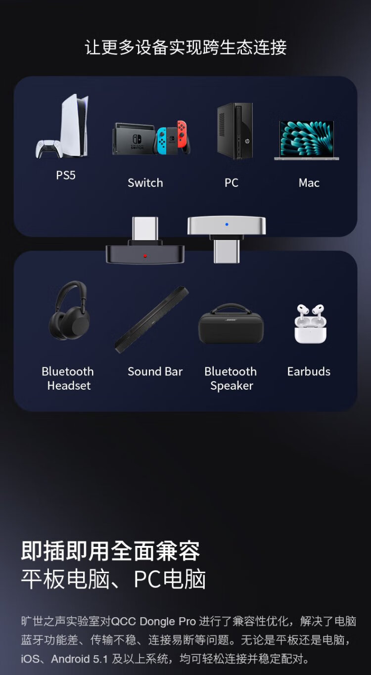 Questyle QCCDonglePro lossless LDAC Bluetooth transmitter HiFi wireless Bluetooth adapter MFI supports Apple mobile phone PS5 computer Switch