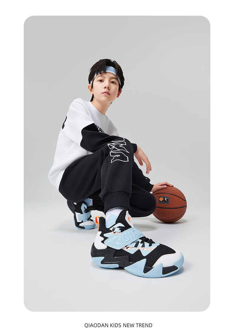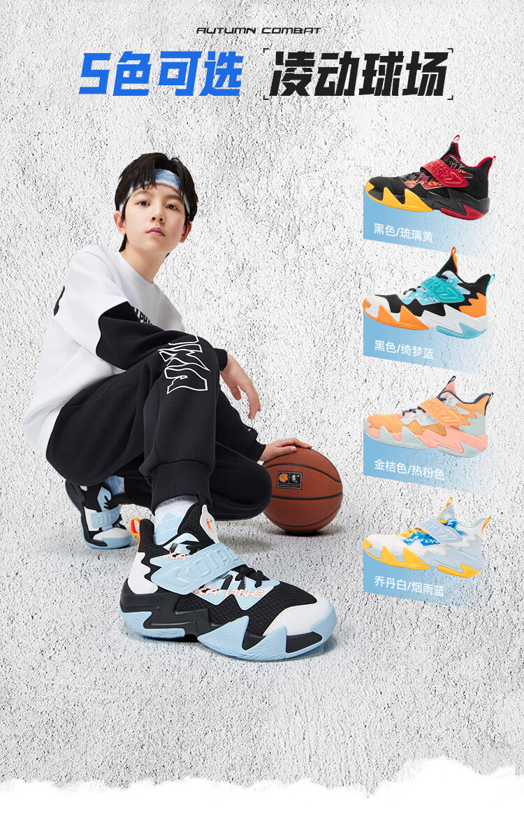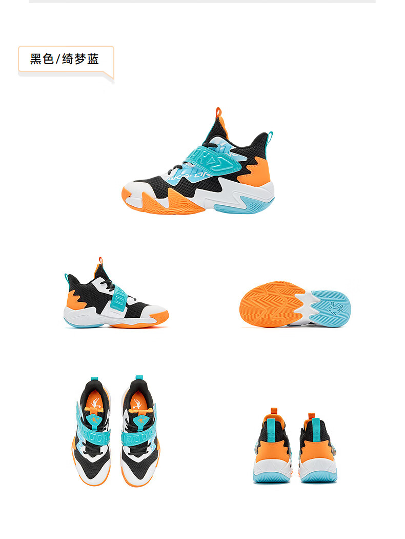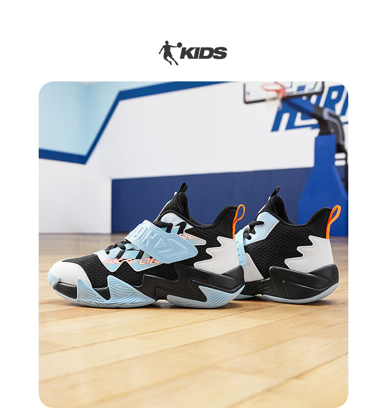 Jordan children's basketball shoes, older children's spring and autumn buckle sports shoes, boys' comprehensive training shoes, black/Qimeng blue 36