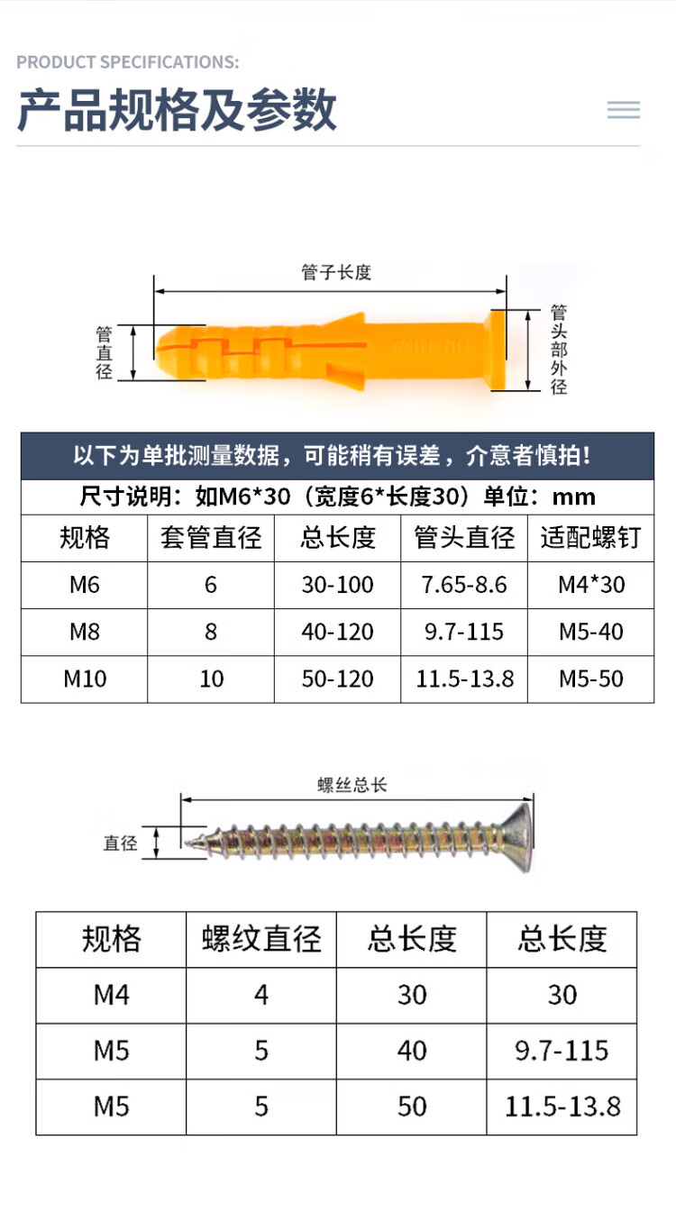 Platinum small yellow croaker expansion tube expansion screw self-tapping screw expansion bolt 8*40mm (100 sets)