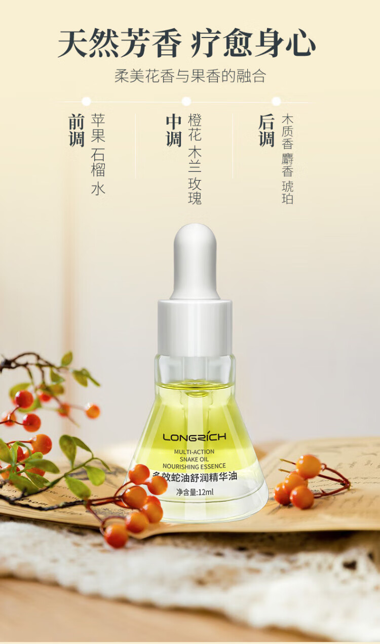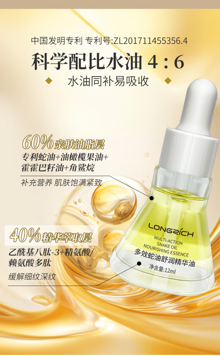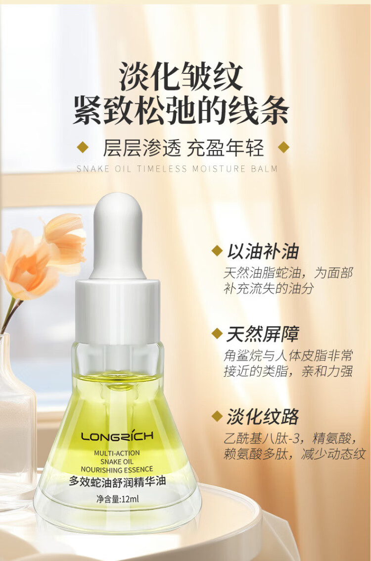 Longliqi 12ml multi-effect snake oil soothing essence oil fades fine lines, tightens and moisturizes 5 bottles