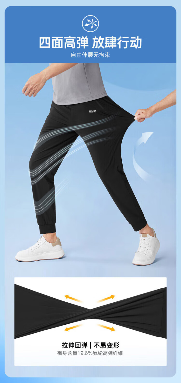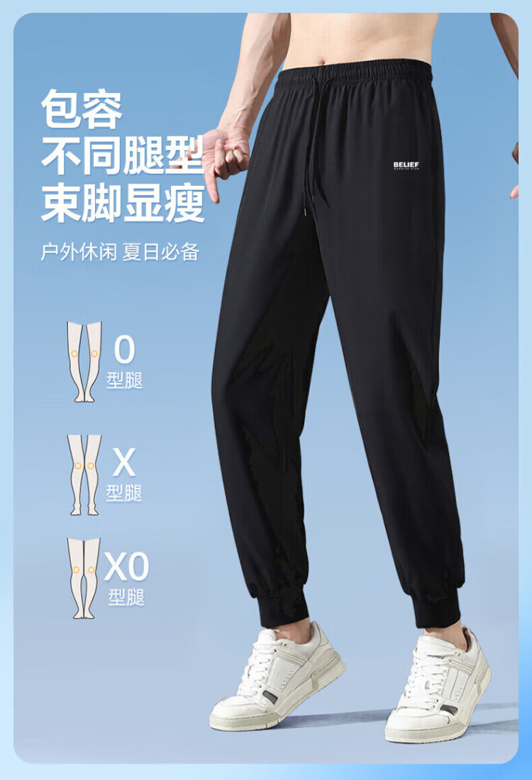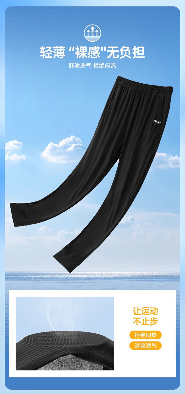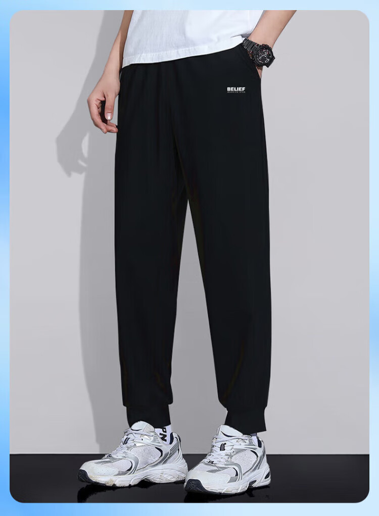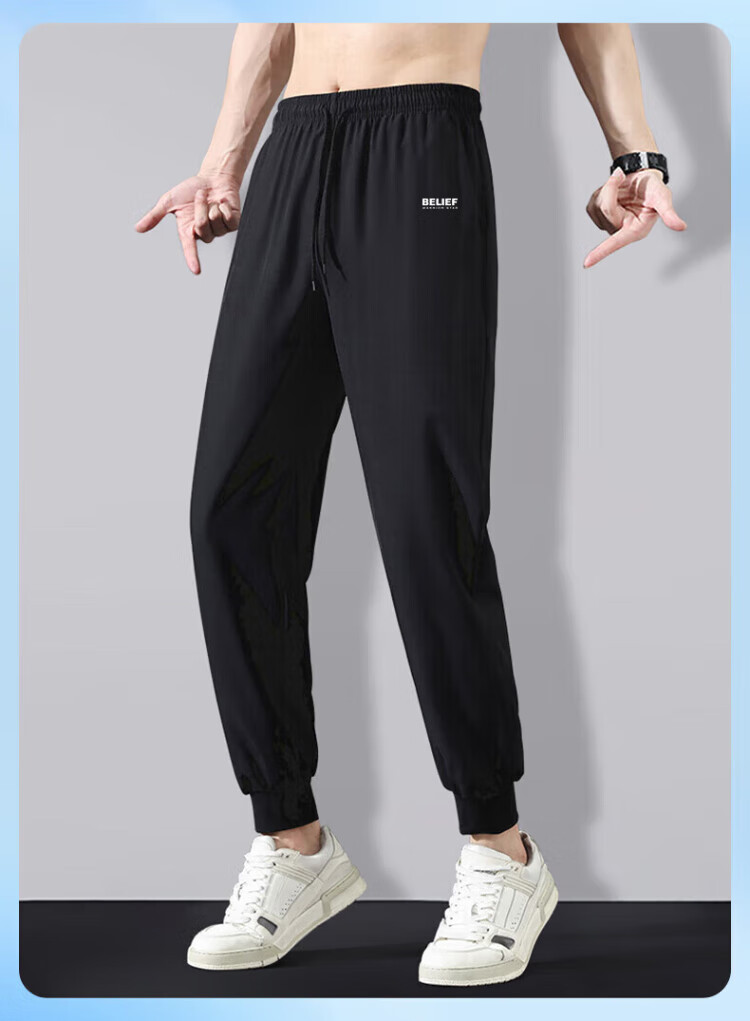 Pull back casual pants men's summer ice silk quick-drying sports pants men's loose straight wide-leg pants men's sports pants